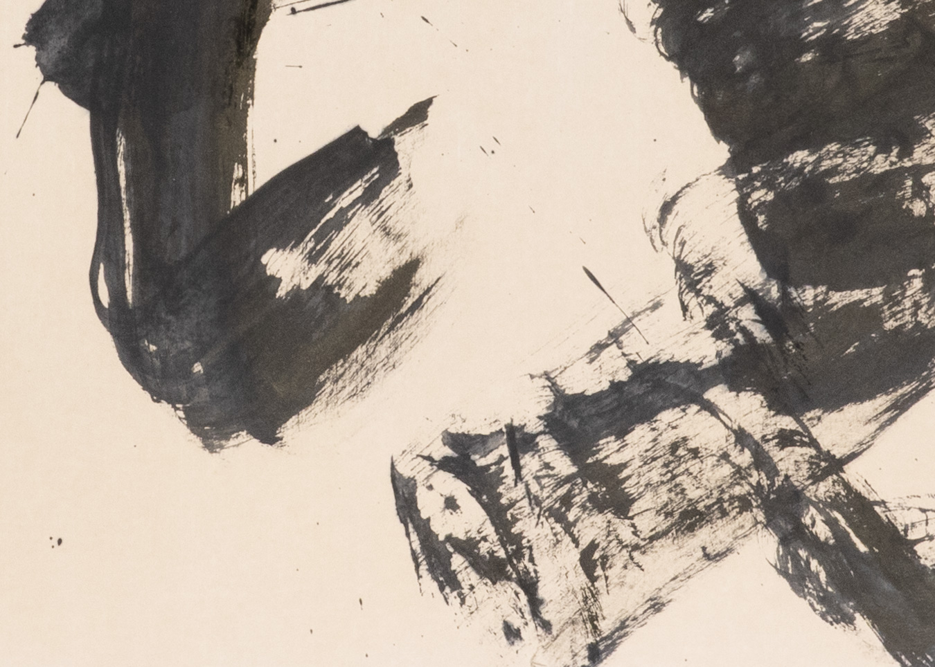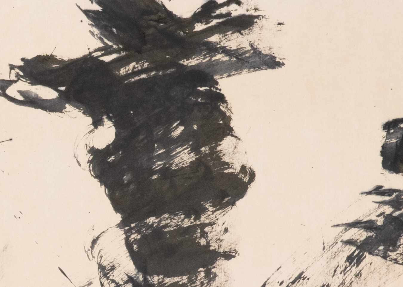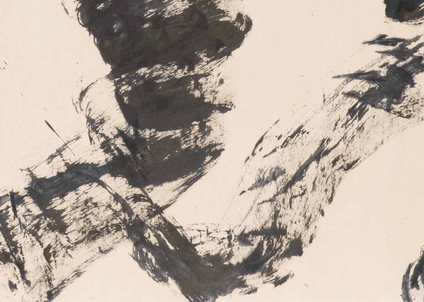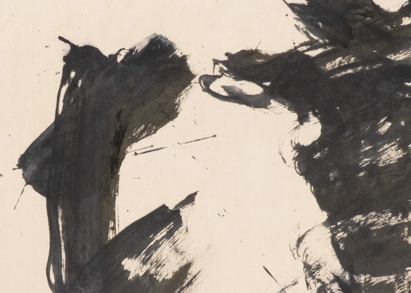 此作品用墨浓淡适宜,行笔饱满而富有弹性,质朴有富有拙趣,在空间中气质天真、淡雅、脱俗,浓淡虚实相间,予人超尘脱俗的潇洒之感。