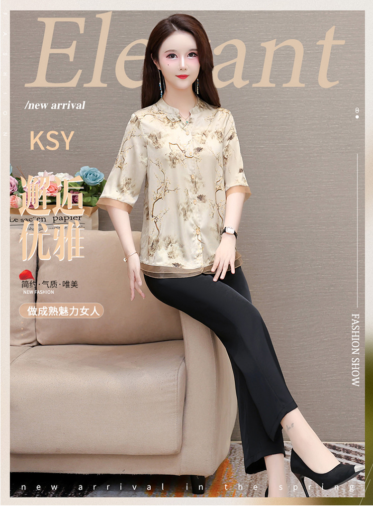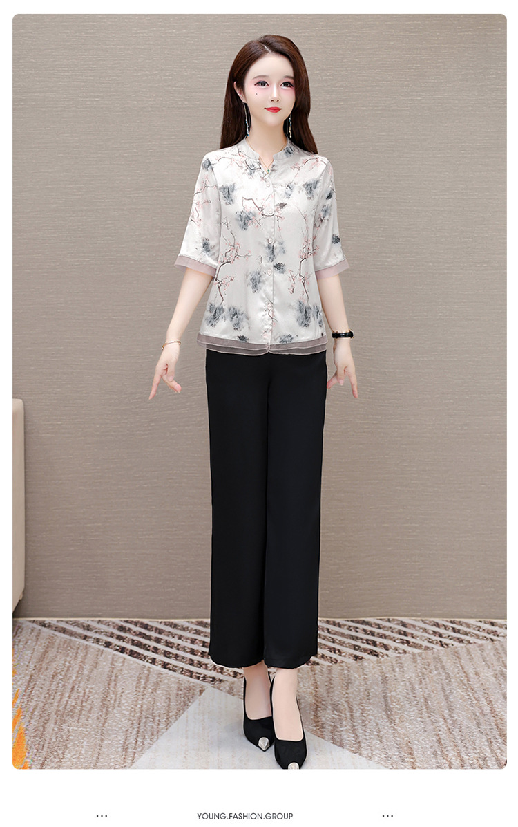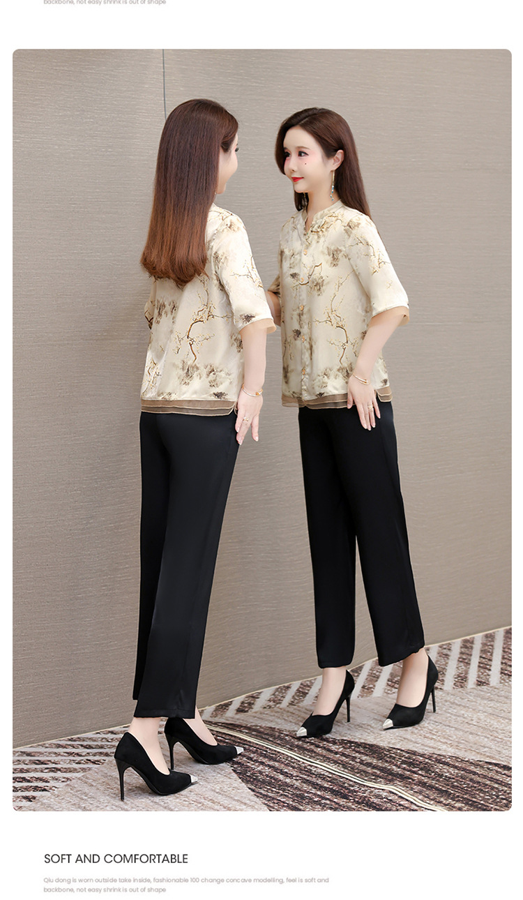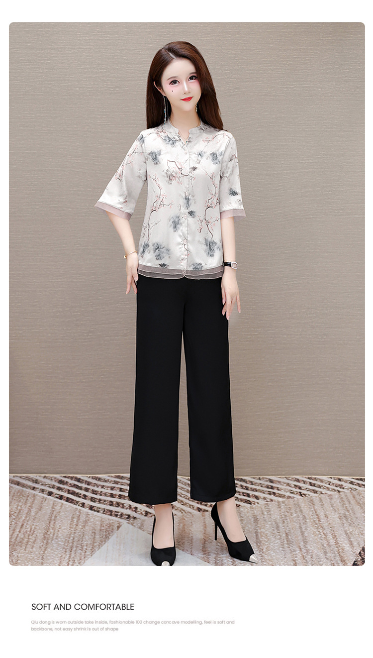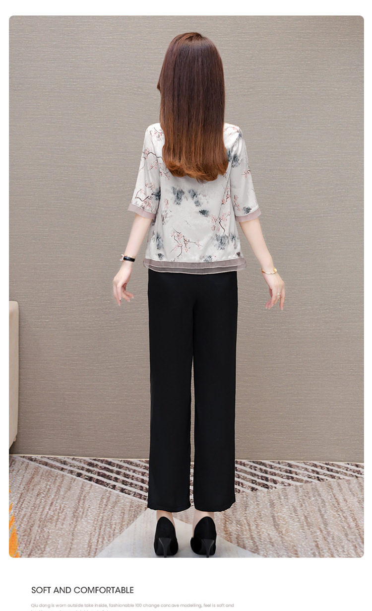 印花五分袖上衣+长款垂感阔腿裤两件套QYM-KSY-ZXA26-L