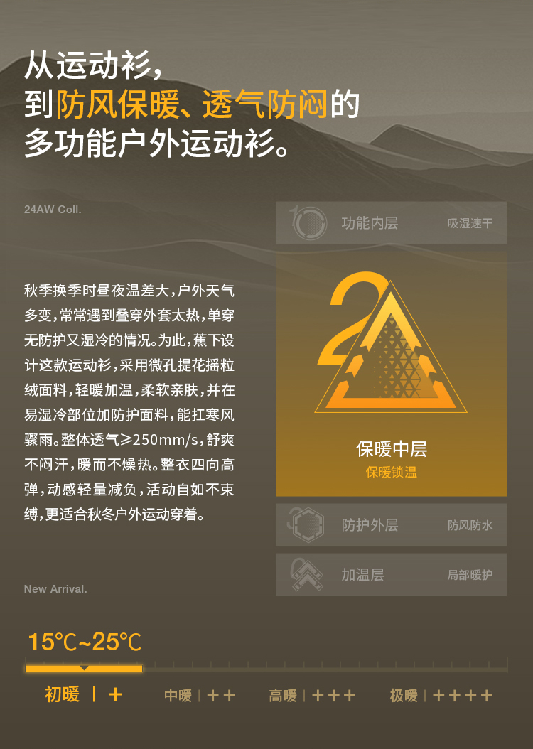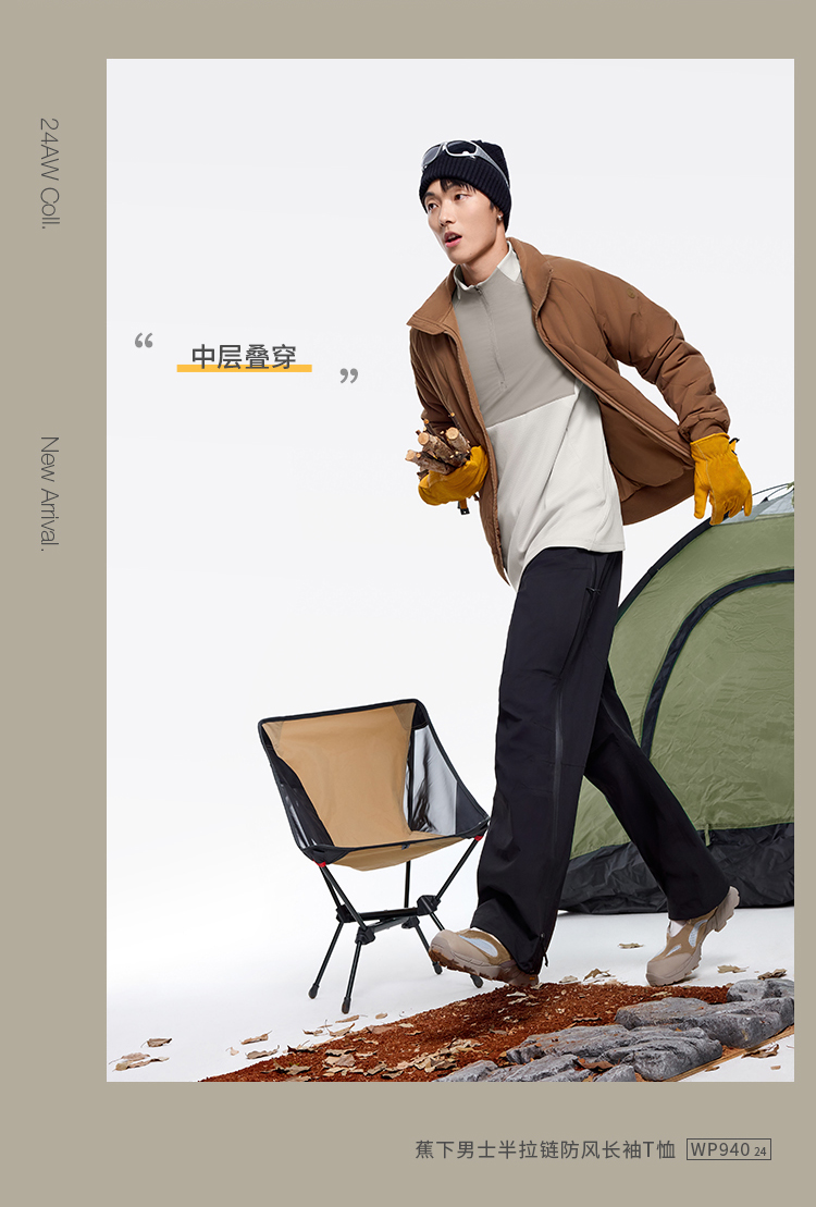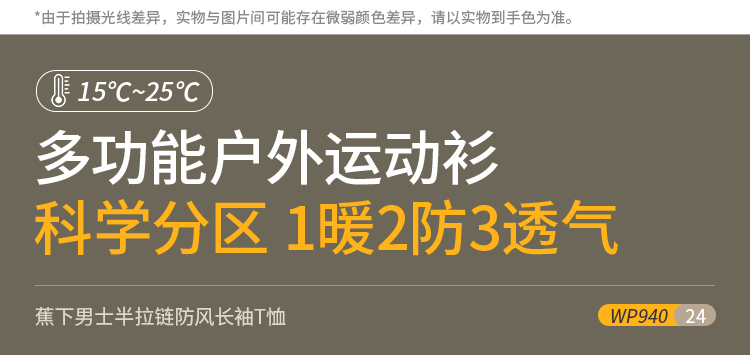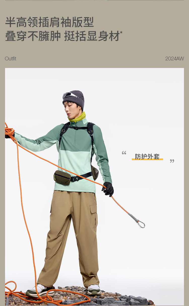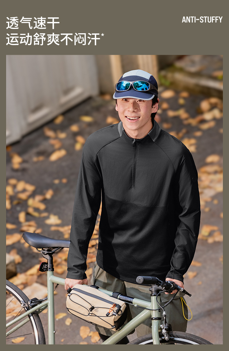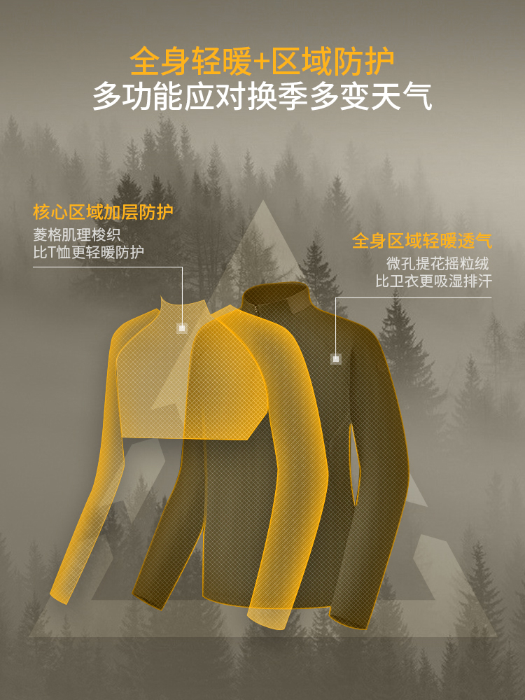 蕉下半拉链摇粒绒打底衫运动长袖T恤跑步速干防风保暖抓绒卫衣男WP94024