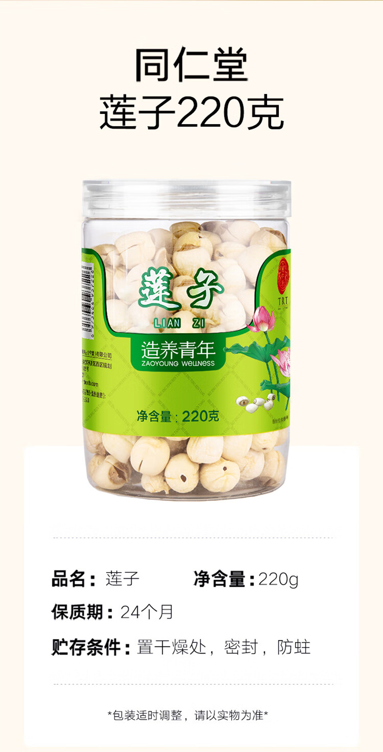 【正宗同仁堂品牌】北京同仁堂 莲子220g 干货去芯 洁白圆润 口感清甜SY