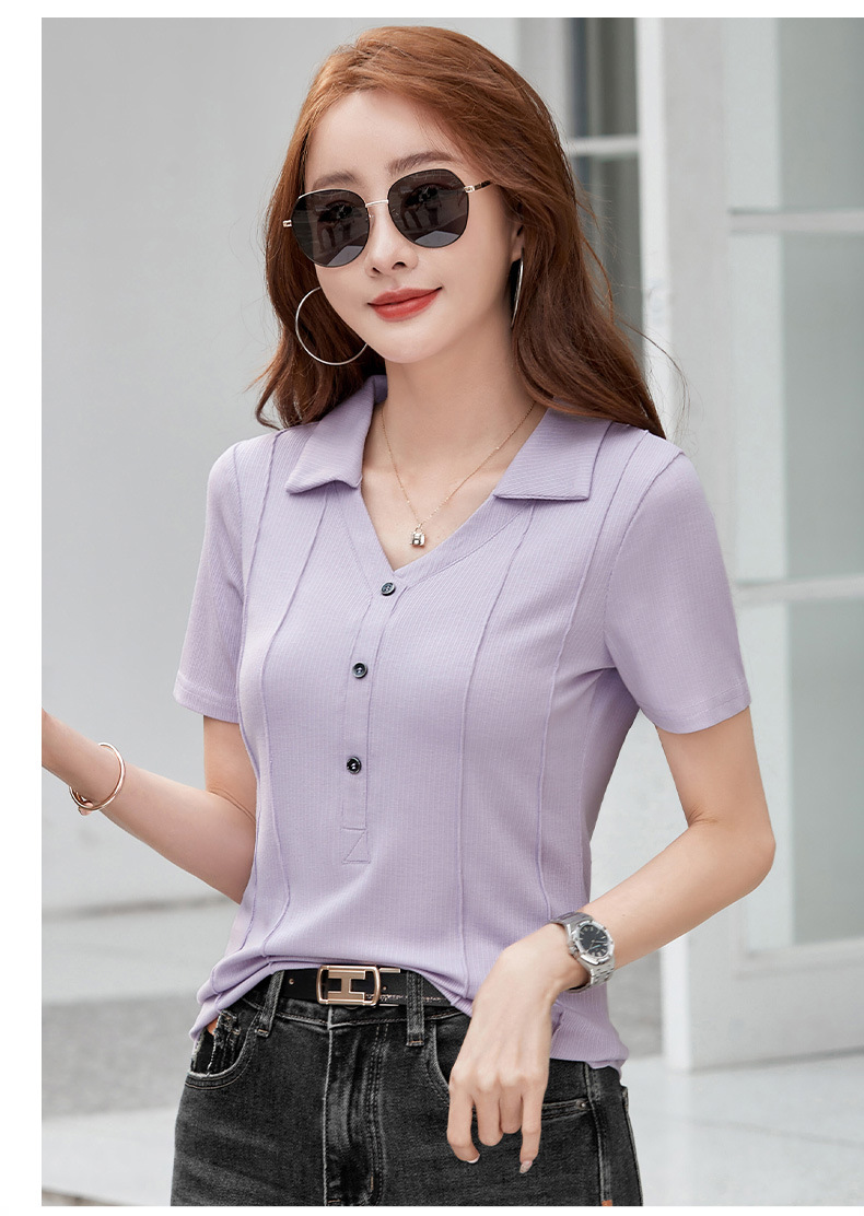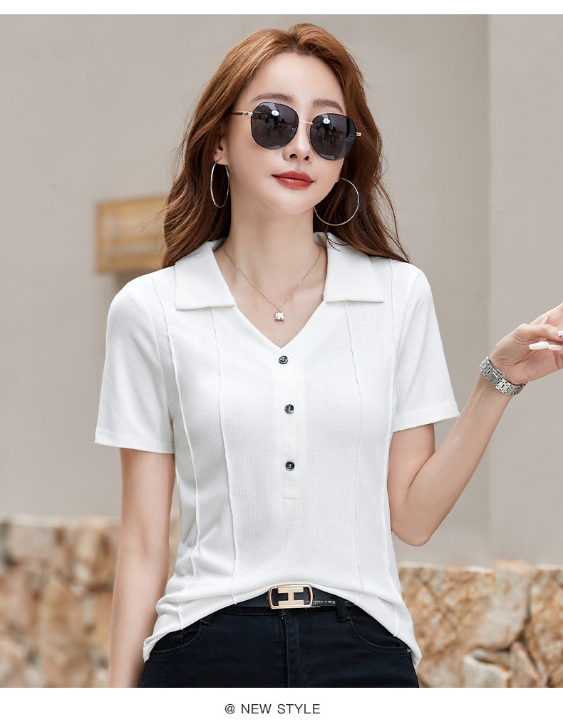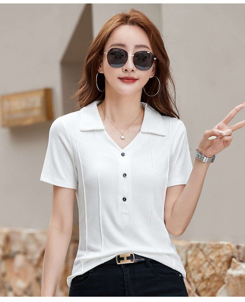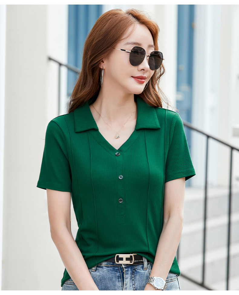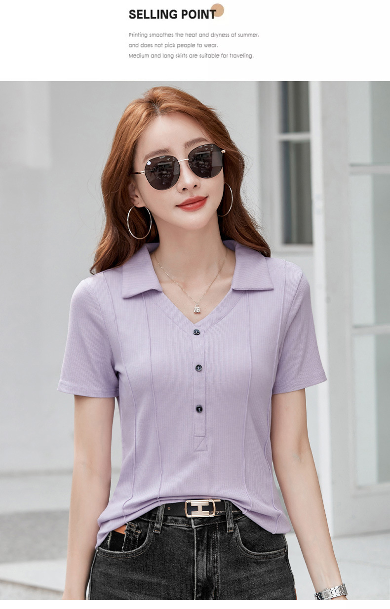 雀说翻领短袖中老年装洋气修身纯色大码薄衬衫上衣女士t恤AL489