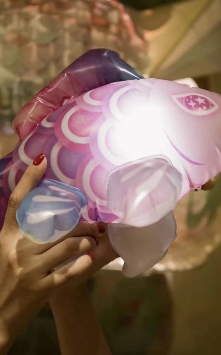 四肢可以活动,打开开关发光后能观察到身体内部的星星。
