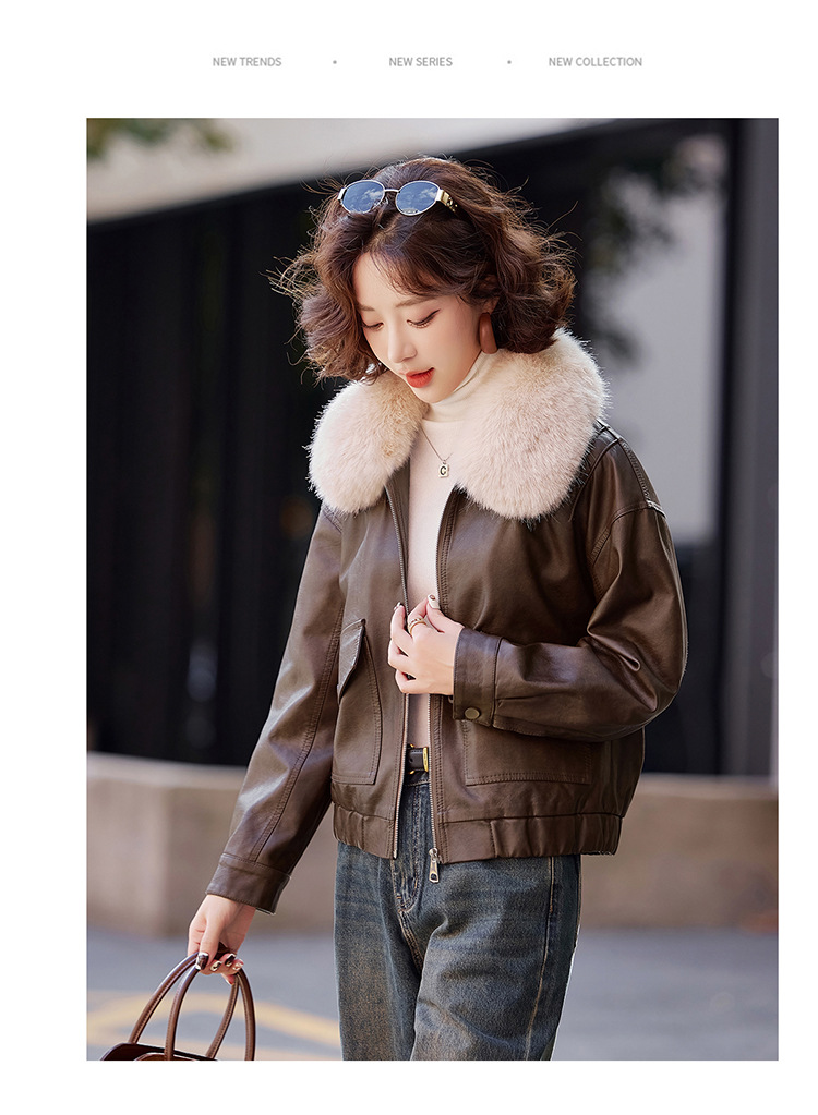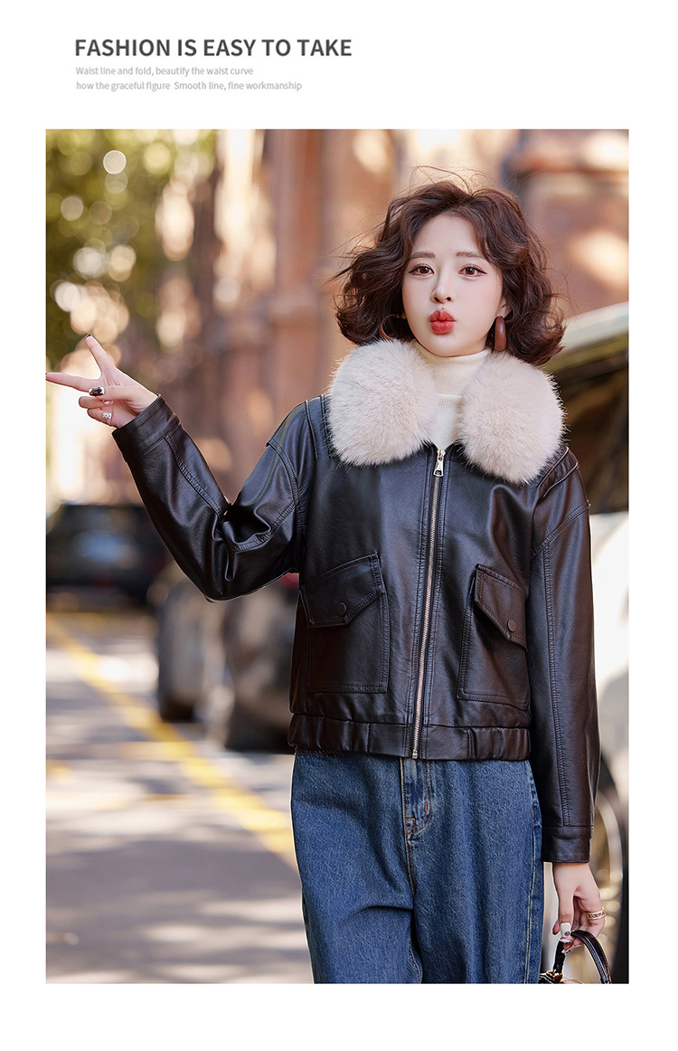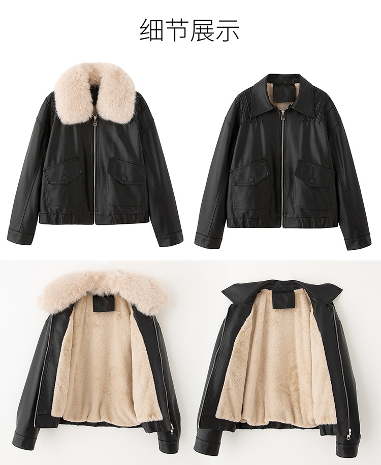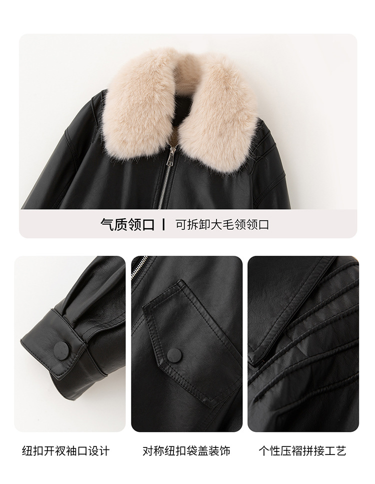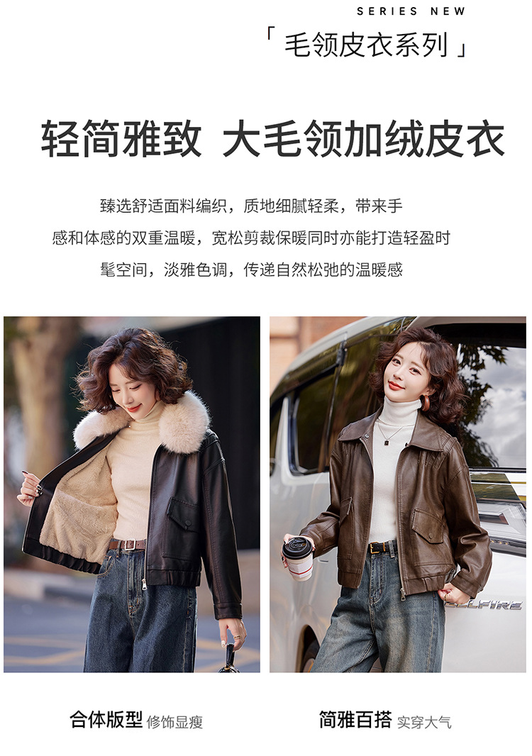 时尚休闲复古可脱卸毛领,加绒皮衣皮棉外套YYG82925
