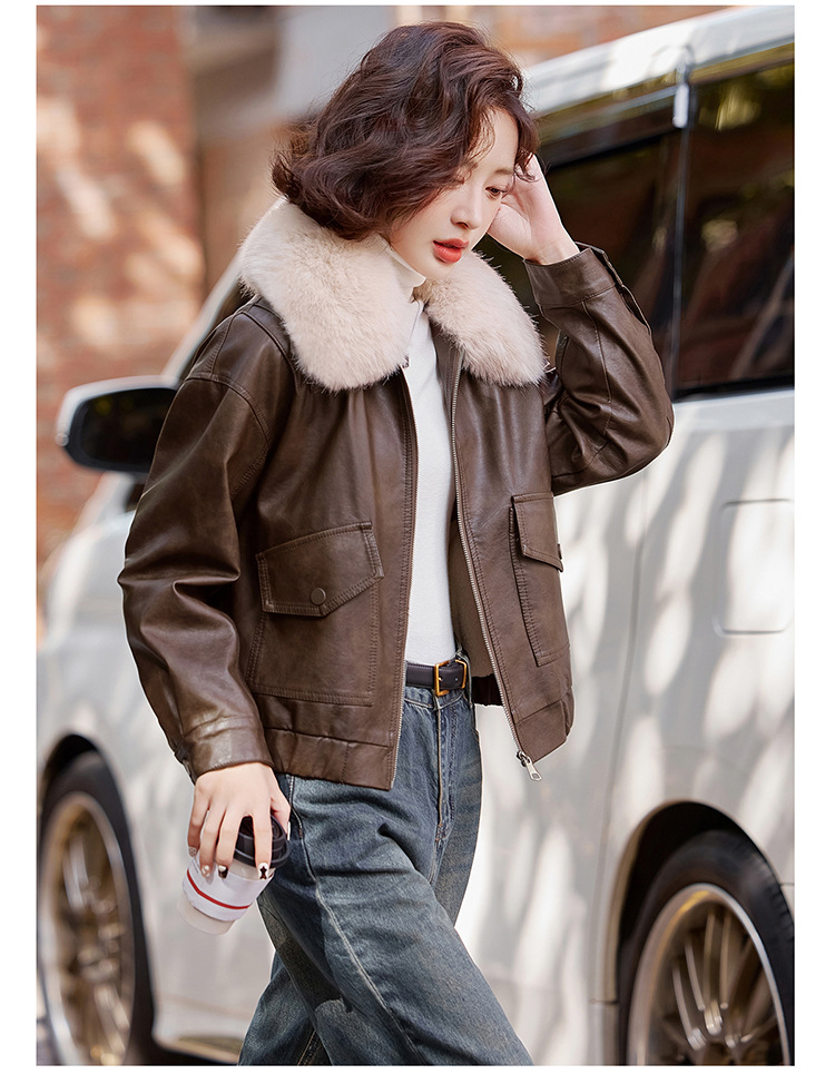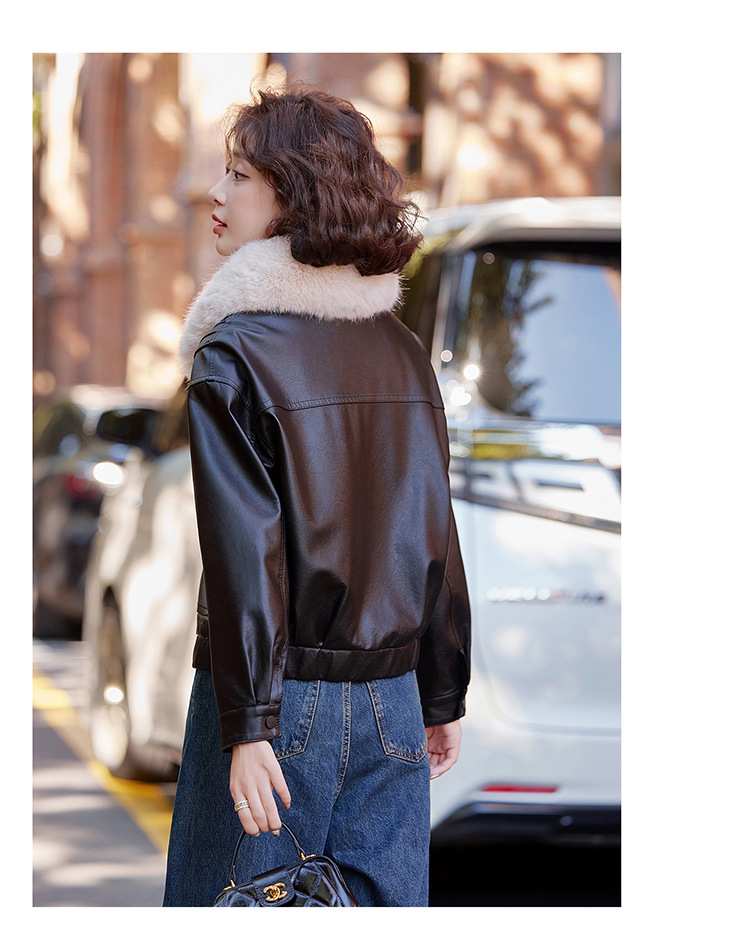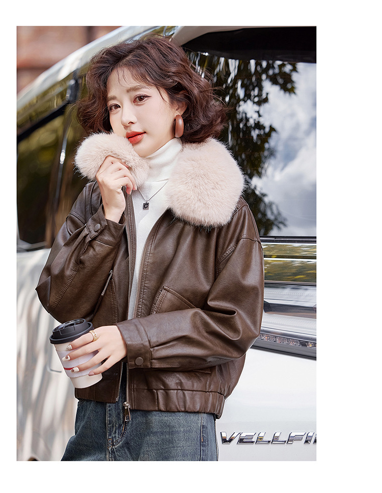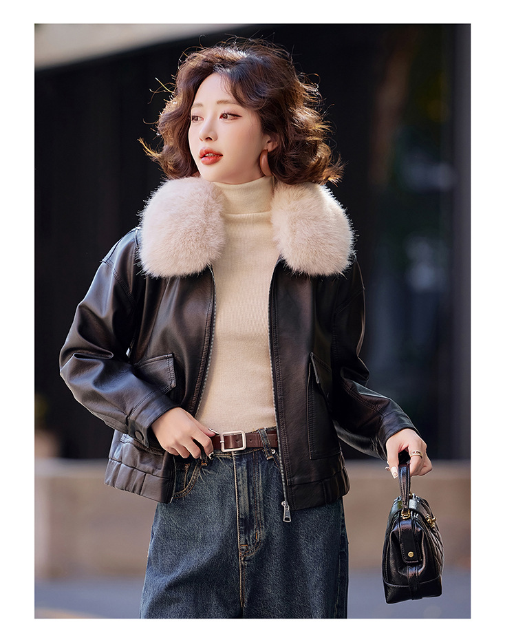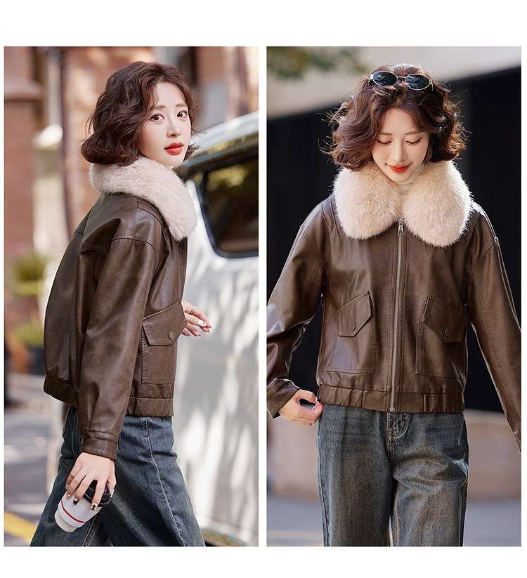 时尚休闲复古可脱卸毛领,加绒皮衣皮棉外套YYG82925