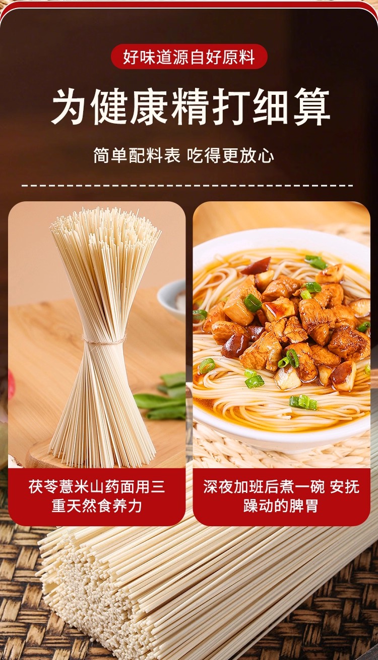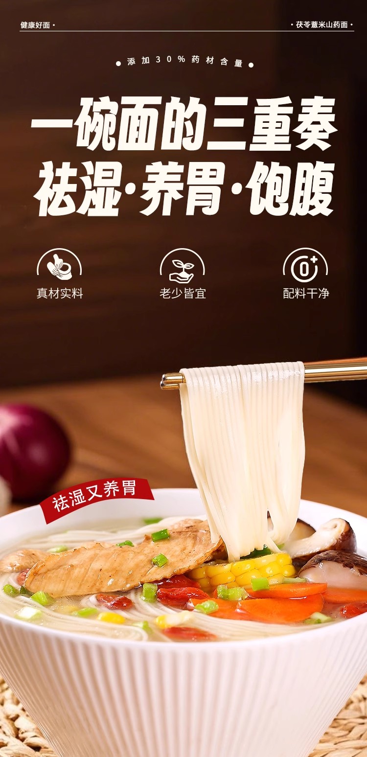 茯苓薏米山药龙须面500g 三重温和食材 非油炸 口感劲道爽滑