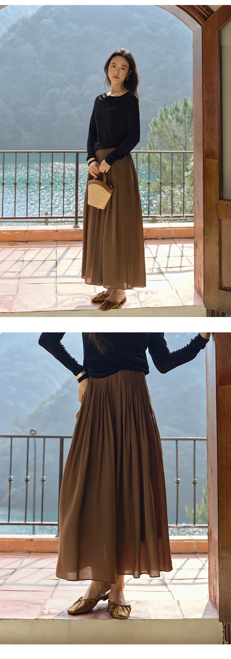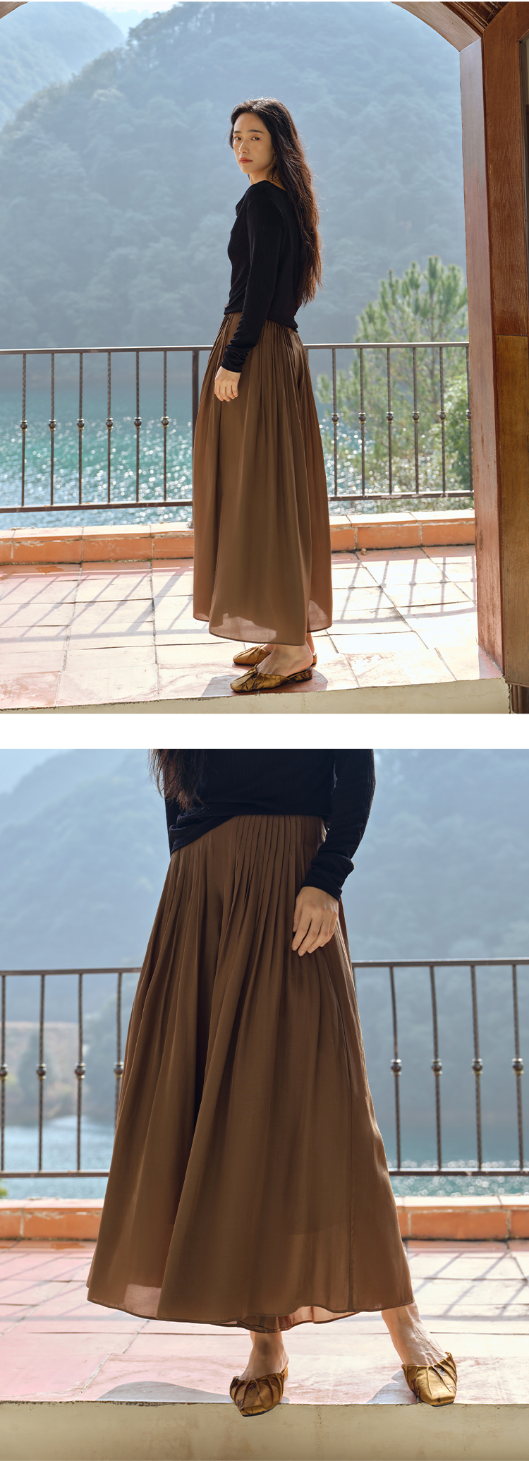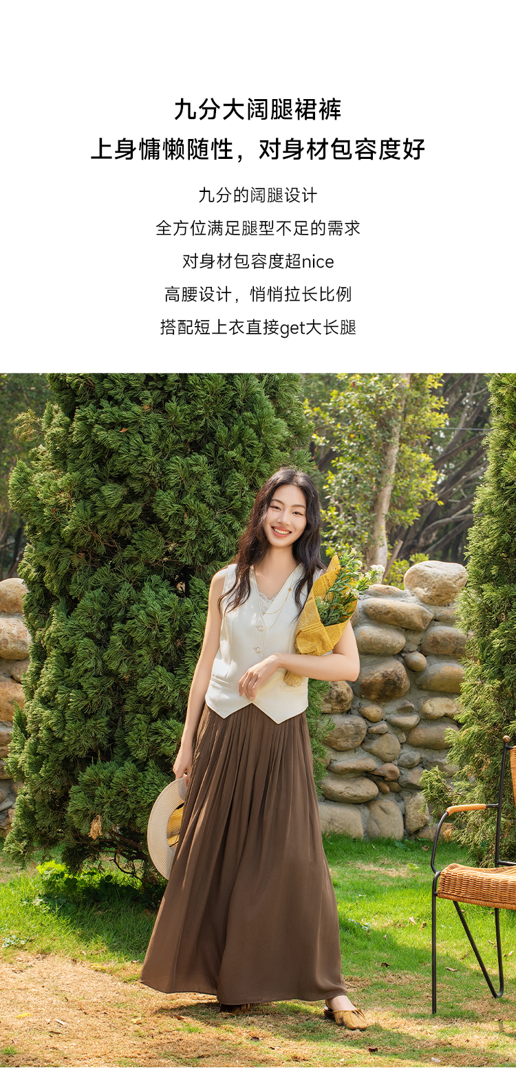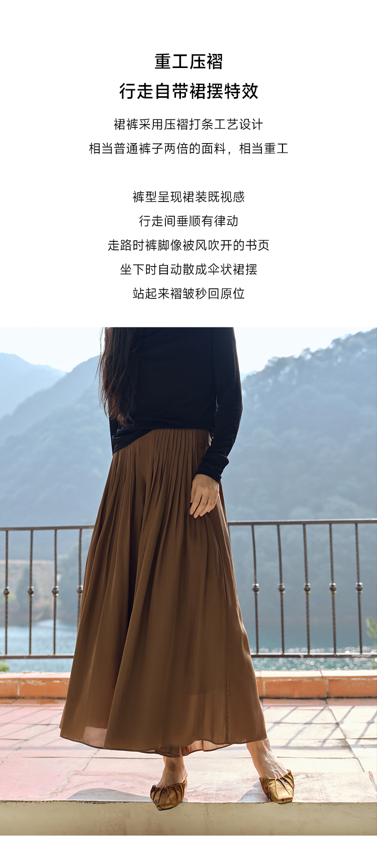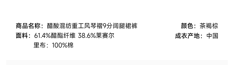 醋酸混纺重工风琴褶9分阔腿裙裤FCF1PAT008