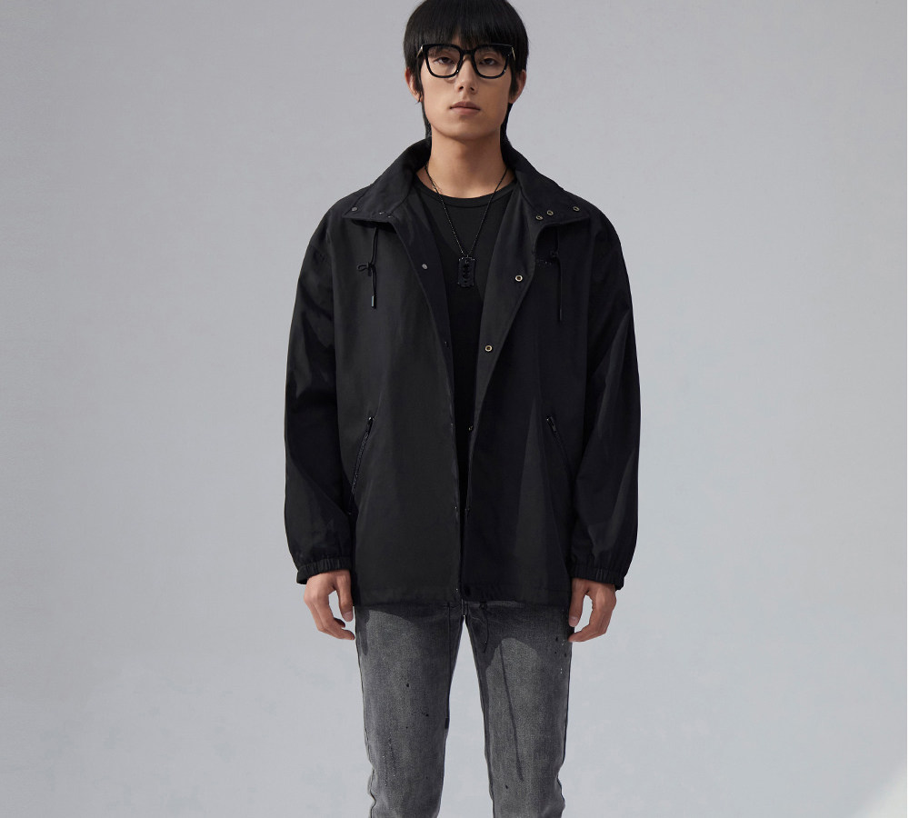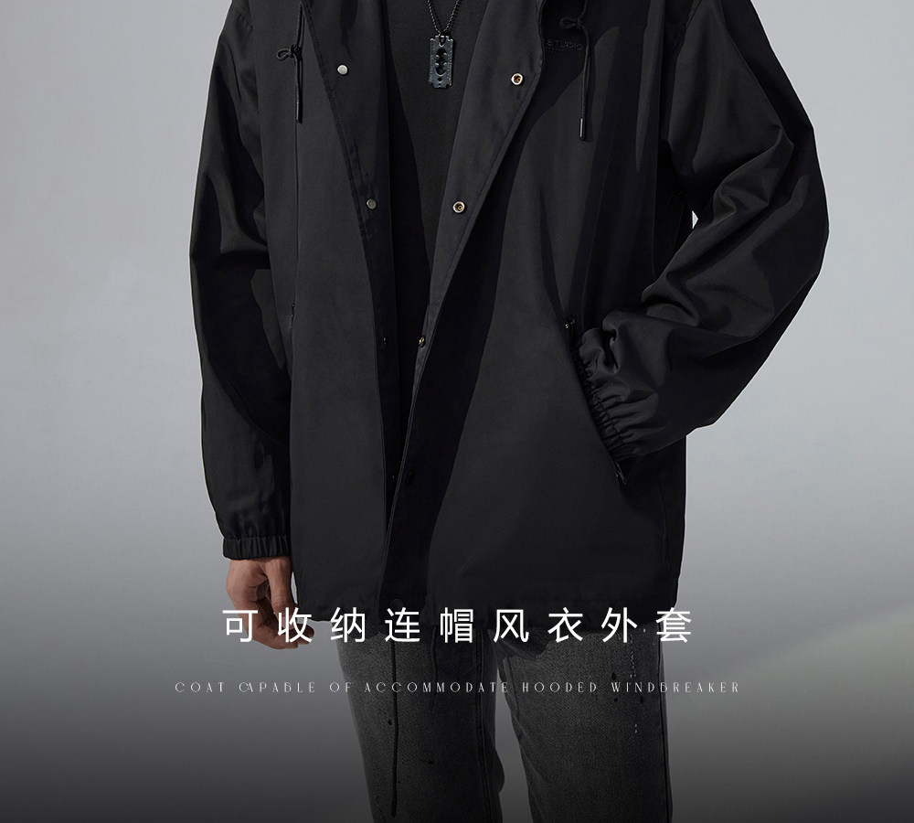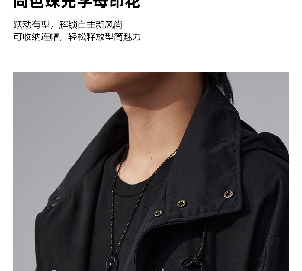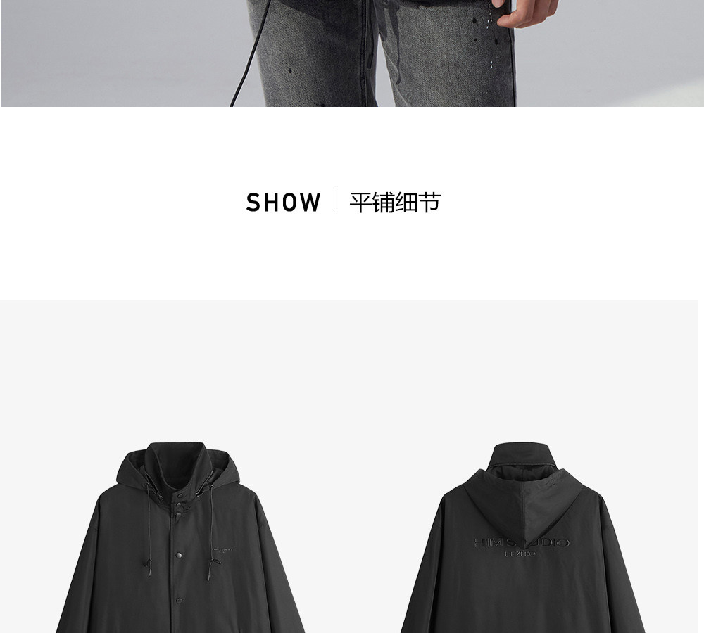 HIM漢崇 可收纳连帽夹克男后背定制印花轻薄风衣休闲外套2025秋季