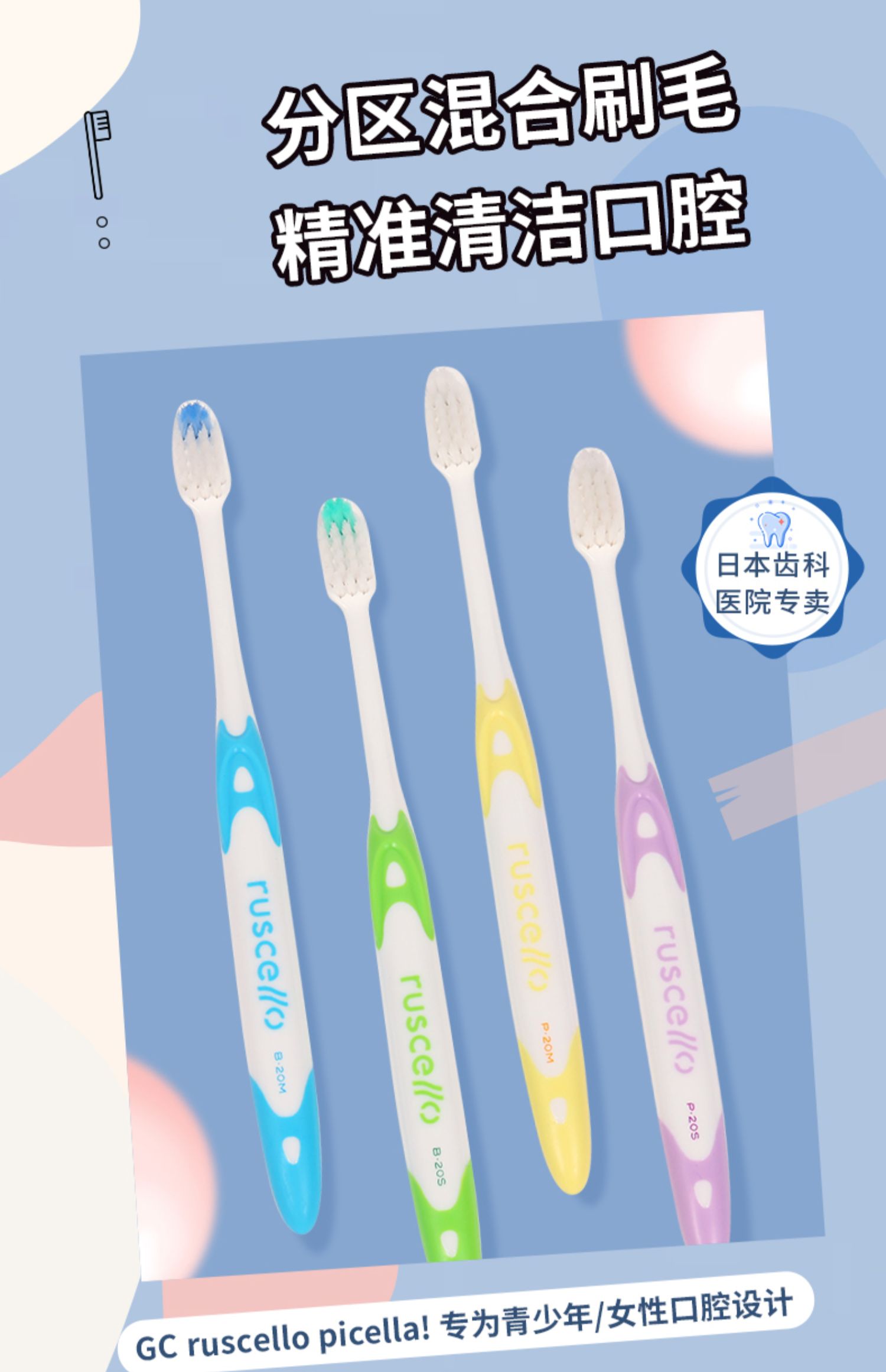 【品牌直发】包邮!日本进口GC牙刷青少年/女士成人用小头中软毛清洁护龈