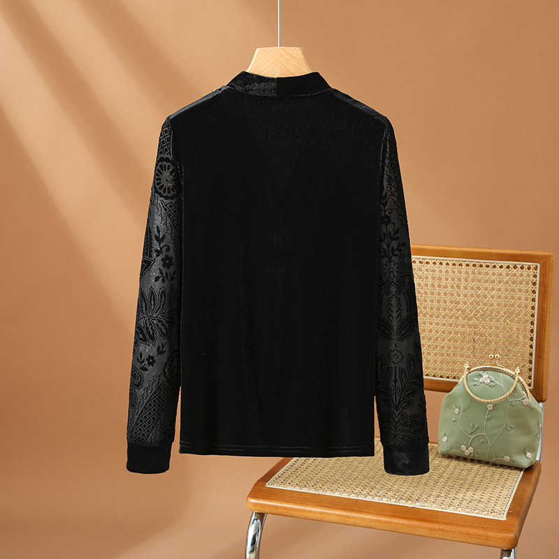 AHM jxxzs6091国风金丝绒衬衫复古提花盘扣显瘦小衫 商品图0