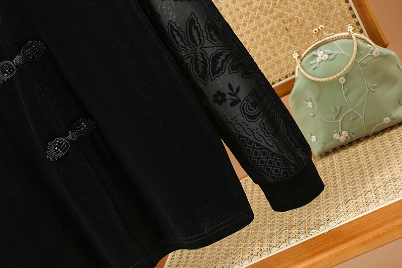 AHM jxxzs6091国风金丝绒衬衫复古提花盘扣显瘦小衫