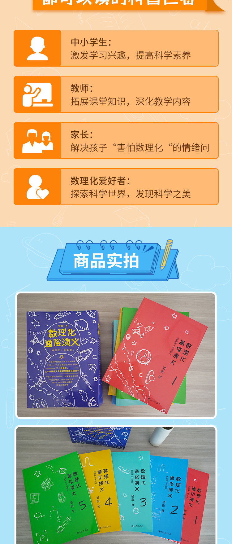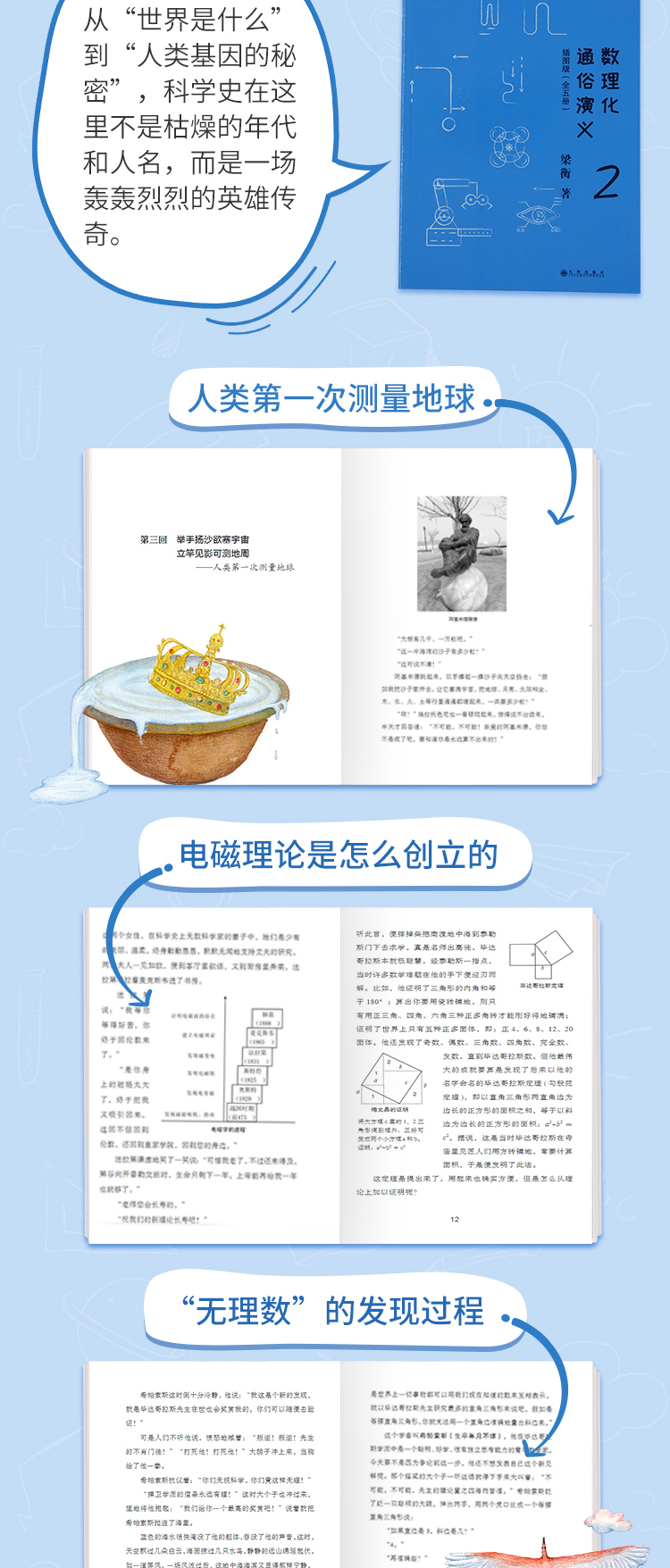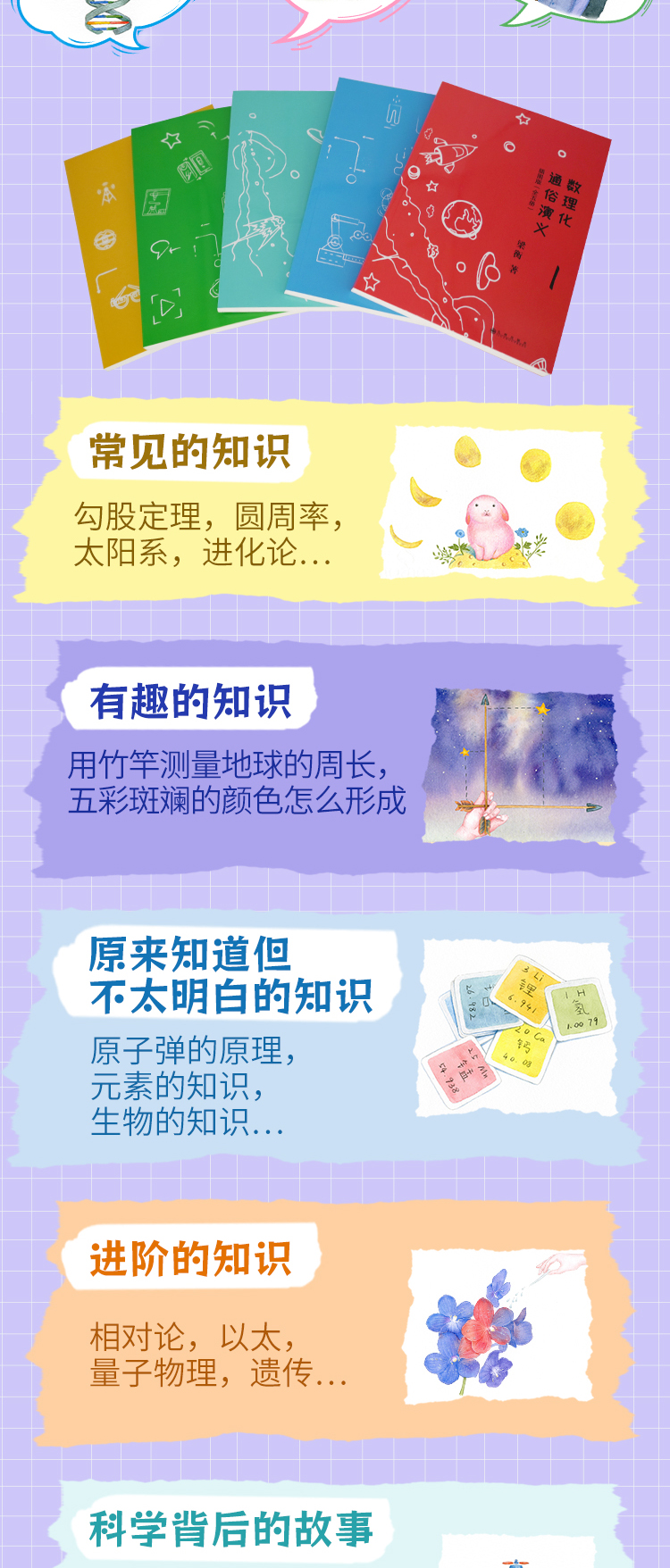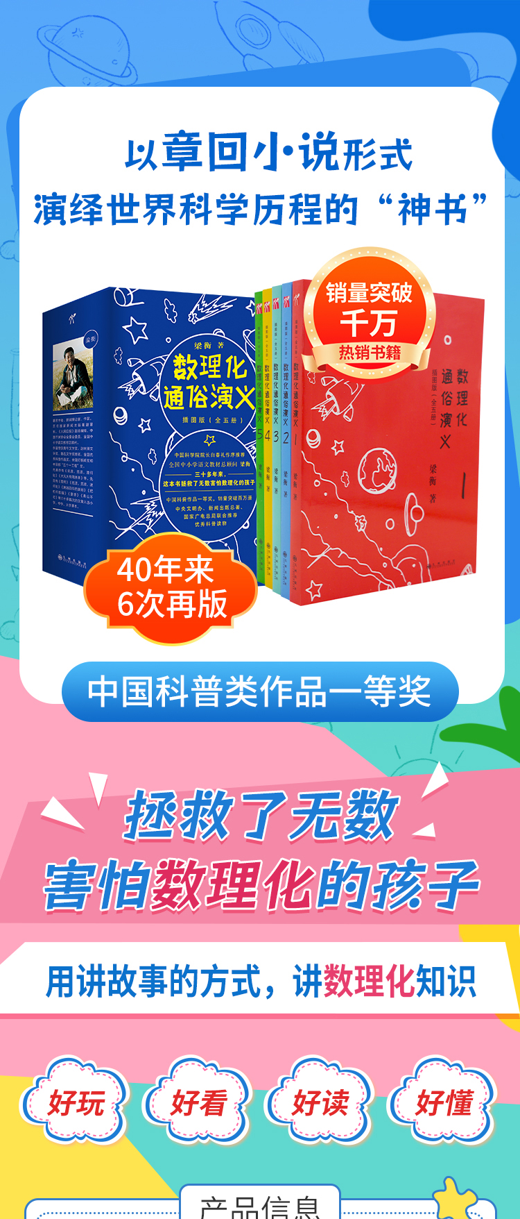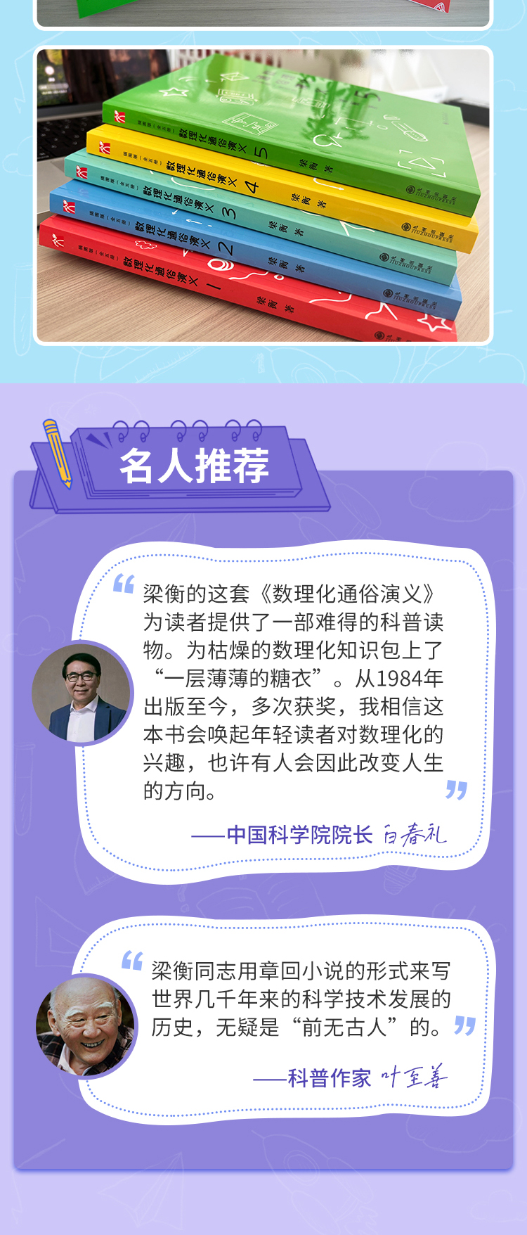 《数理化通俗演义:插图版》(全5册), 中国科学院院长白春礼、叶圣陶之子、科普作家叶至善等作序,每年寒暑假推荐图书。