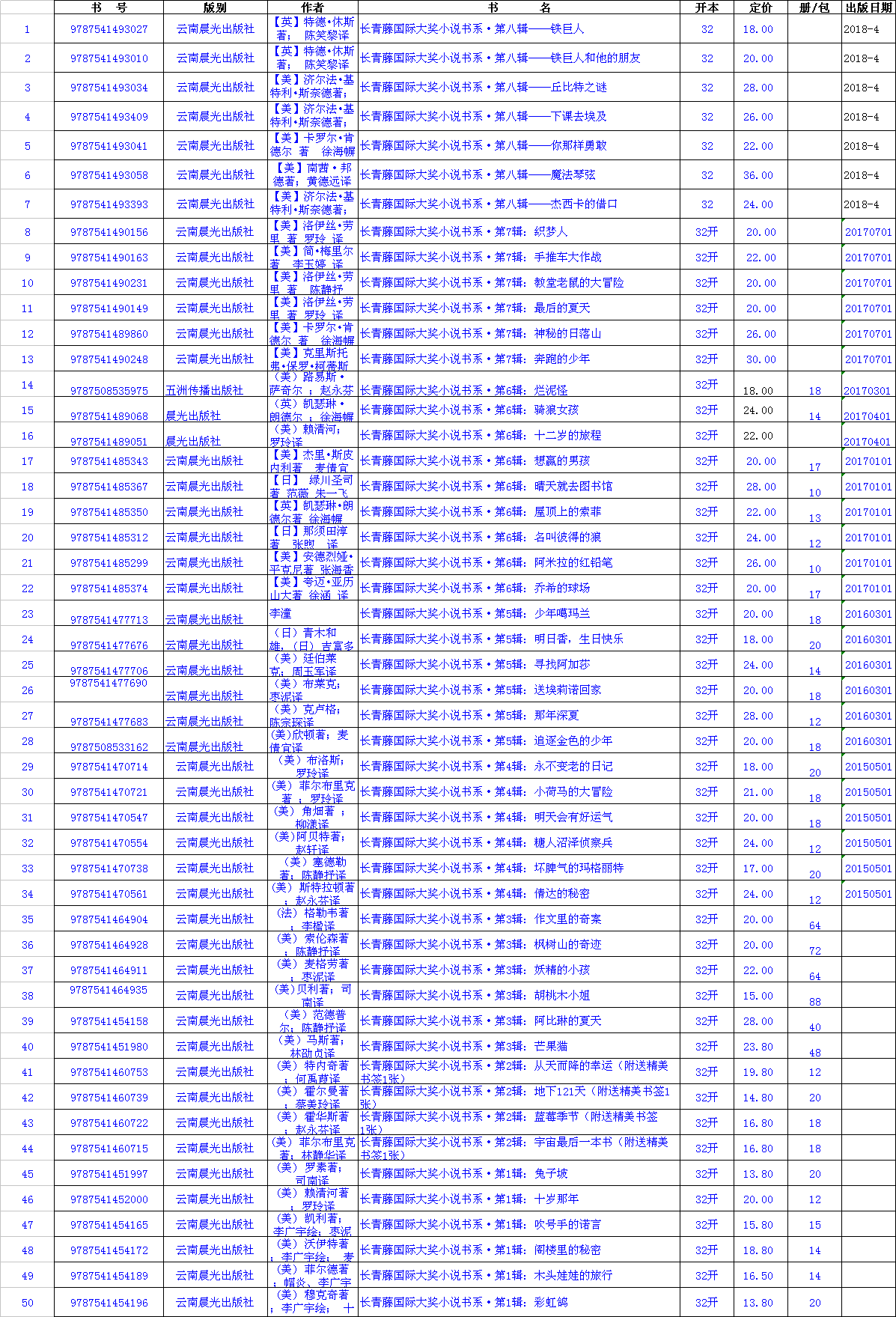 《十岁那年》、《阁楼里的秘密》、《木头娃娃的旅行》、《兔子坡》、《彩虹鸽》、《吹号手的诺言》