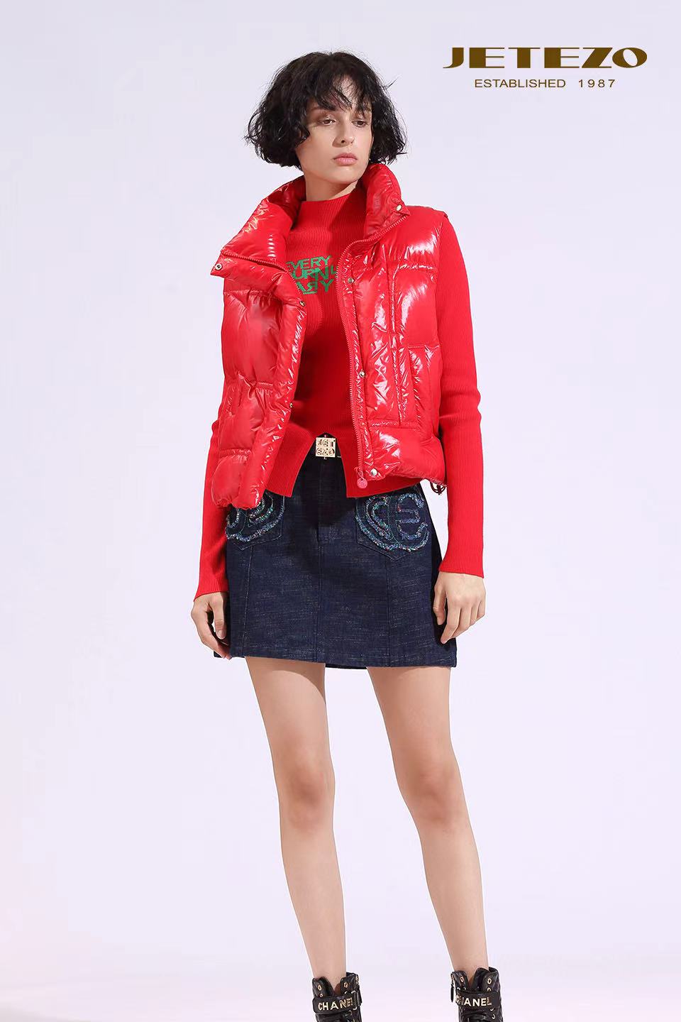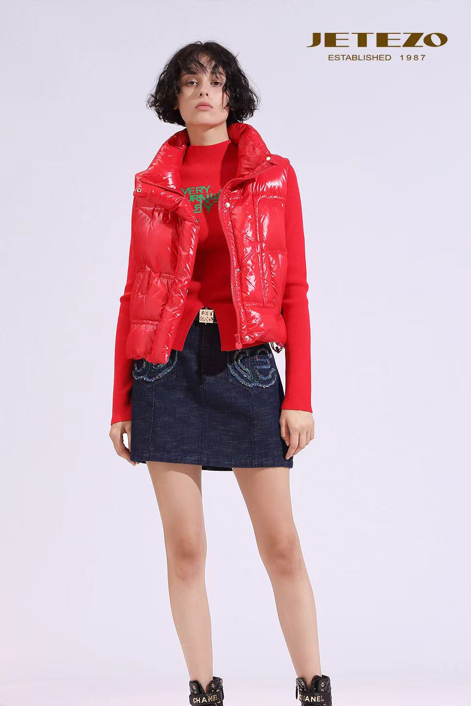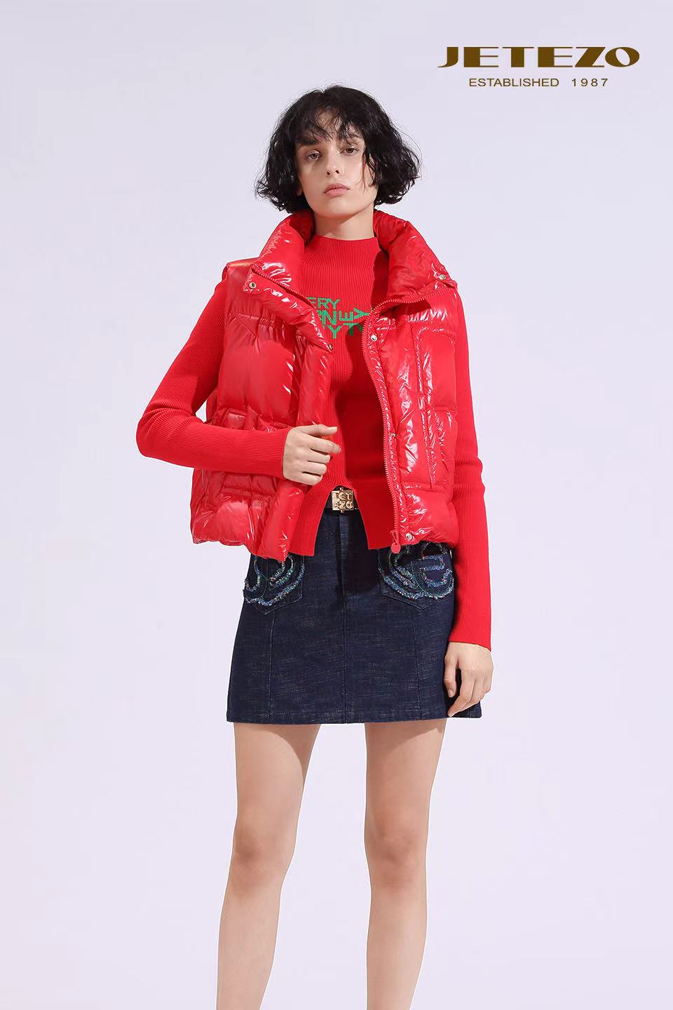 裘堤婼JETEZO红色前开设计款针织衫BE10202A1