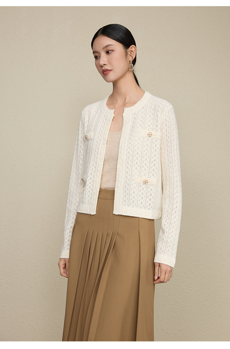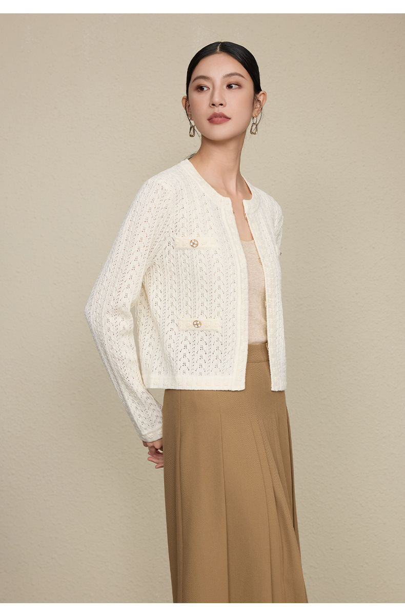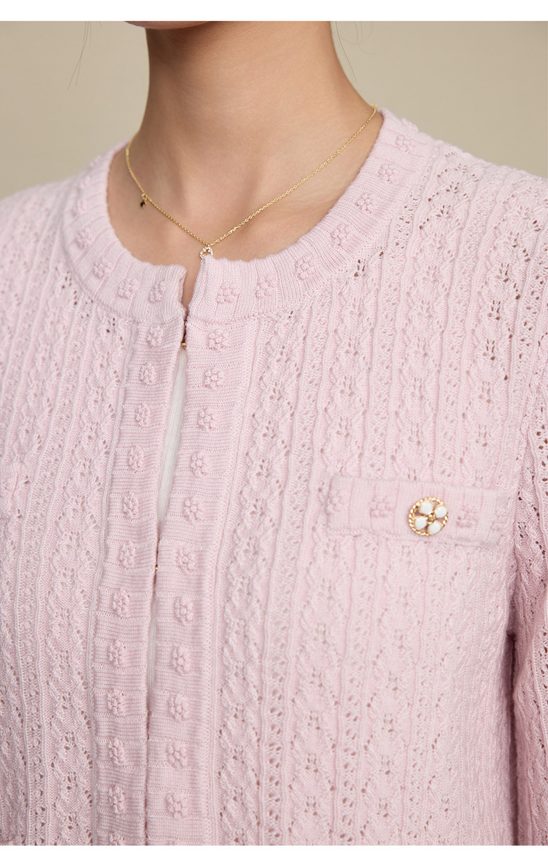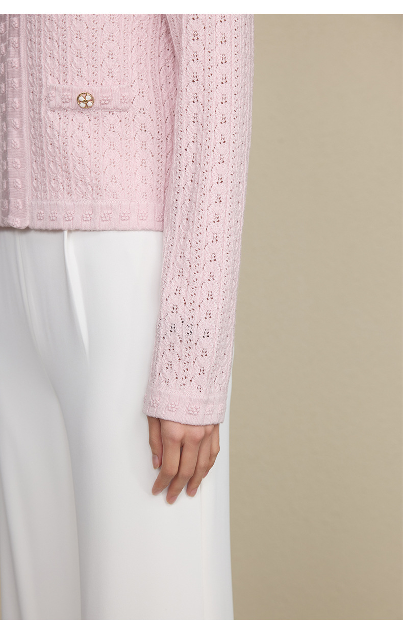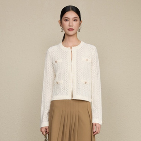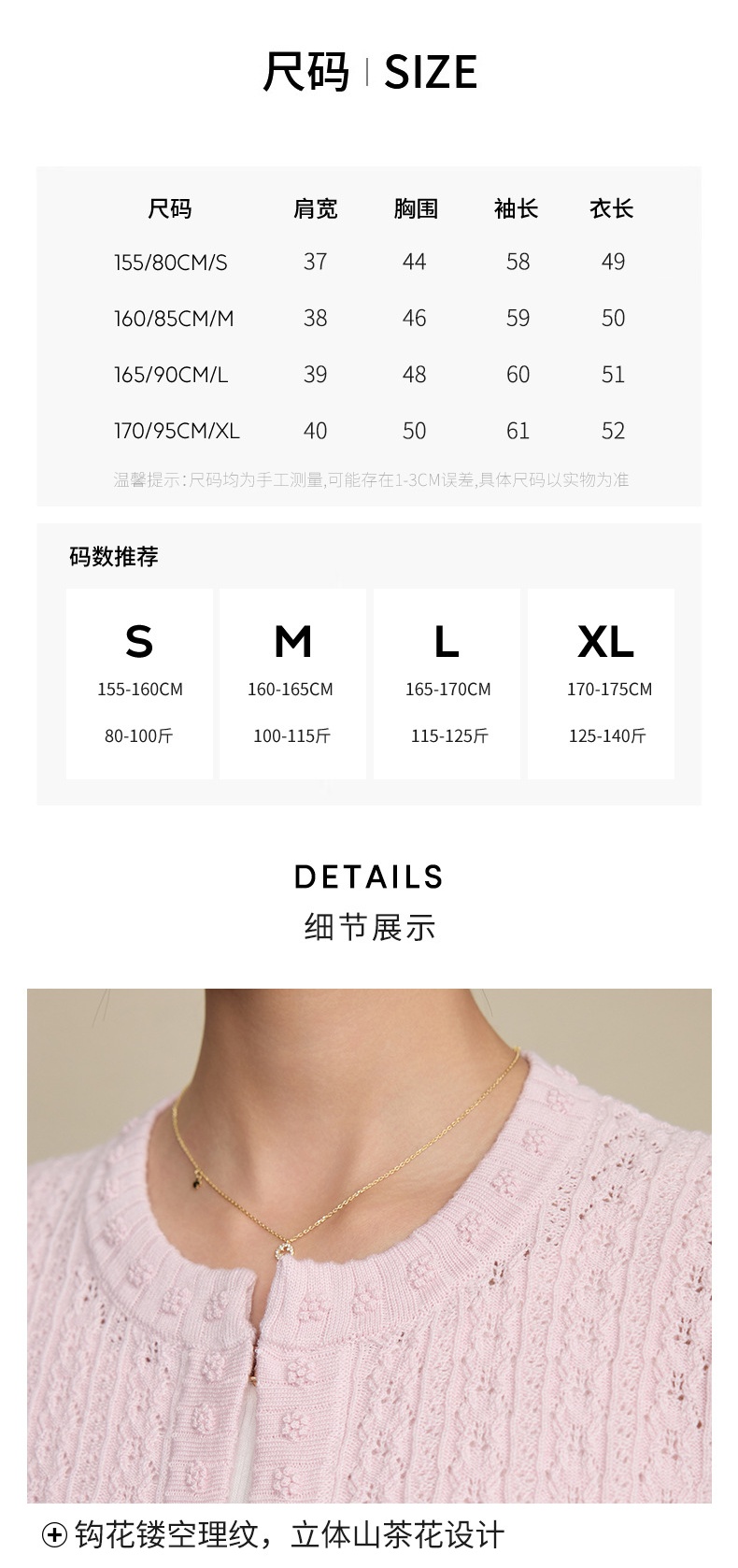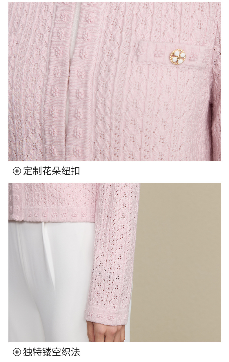 「自」全新升级【铂金会员349/天猫469/差价120】(44437)洛诗琳秋季新款法式气质小香风重工镂空山茶花型羊毛针织开衫女