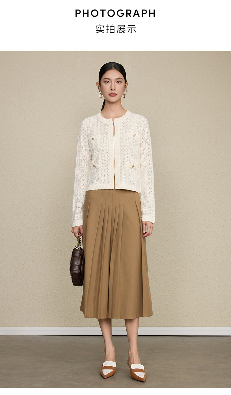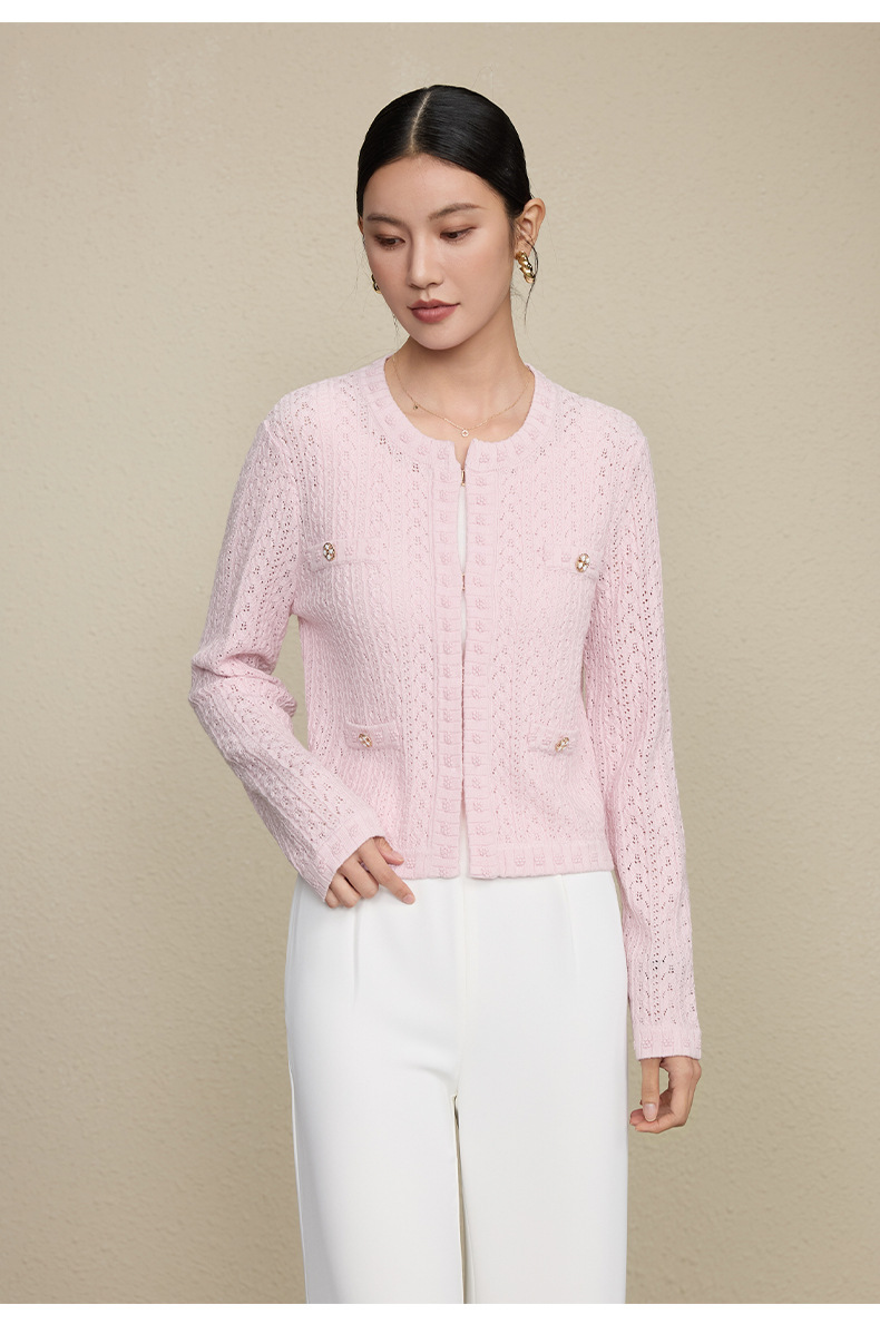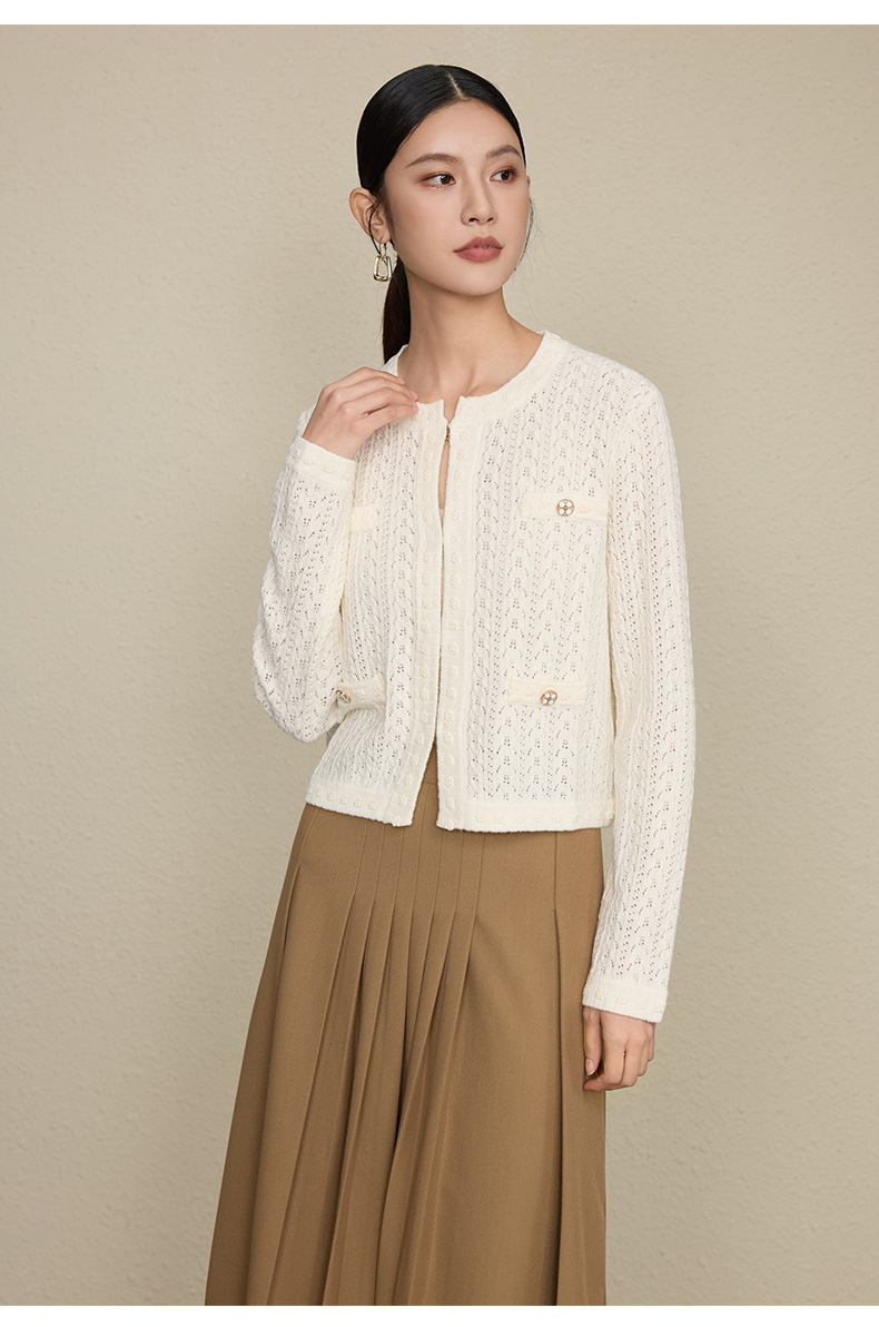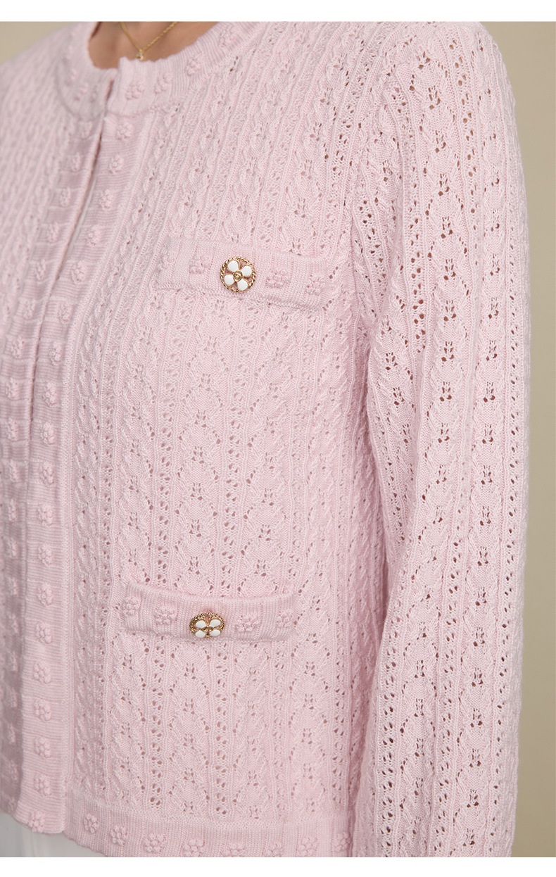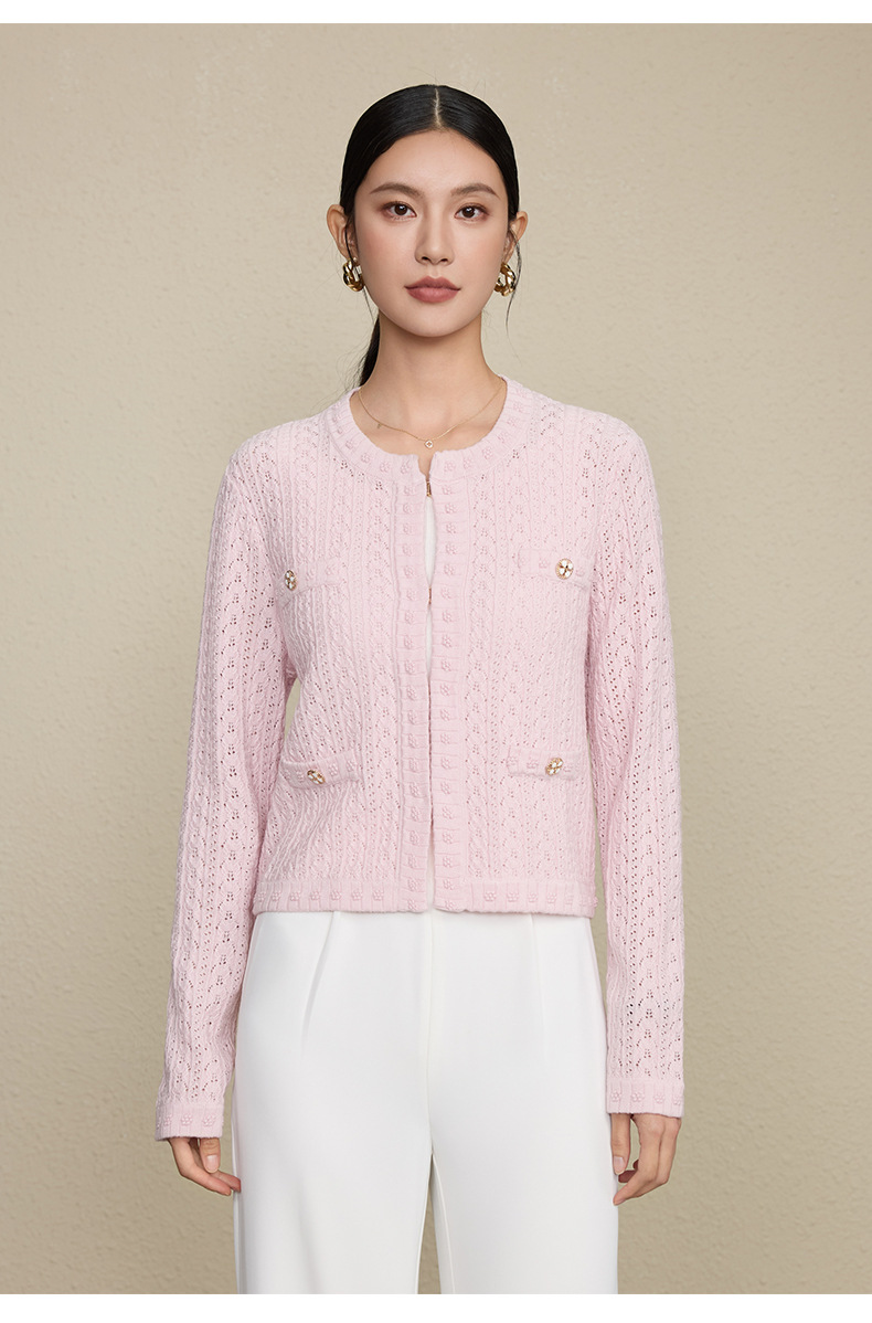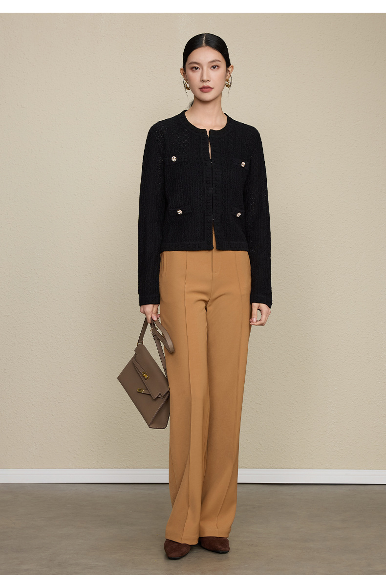 「自」全新升级【铂金会员349/天猫469/差价120】(44437)洛诗琳秋季新款法式气质小香风重工镂空山茶花型羊毛针织开衫女