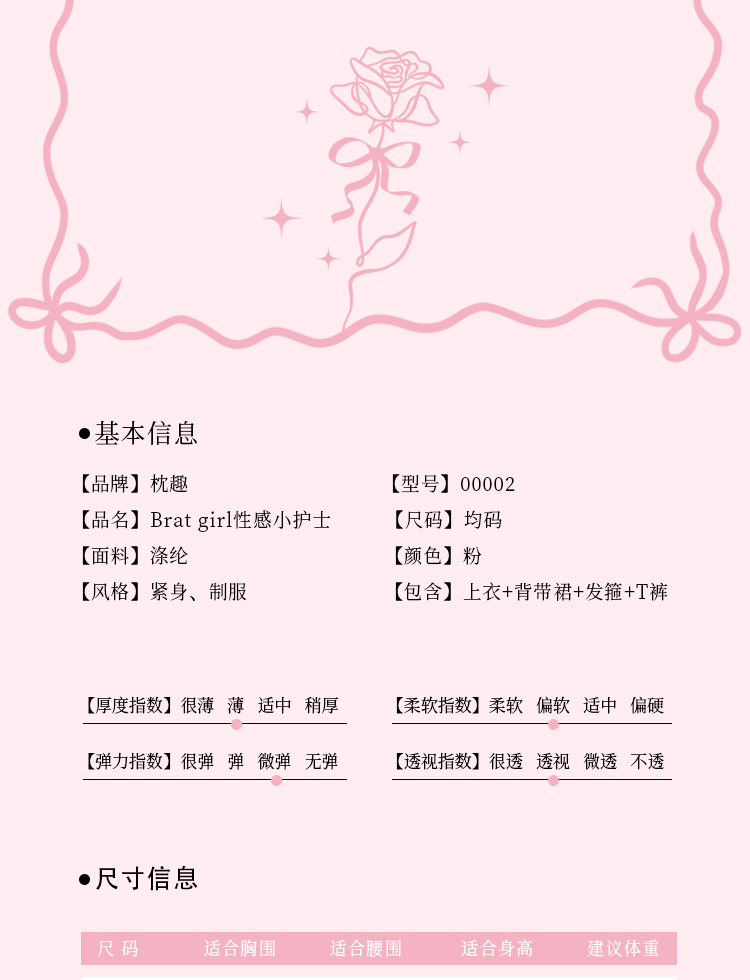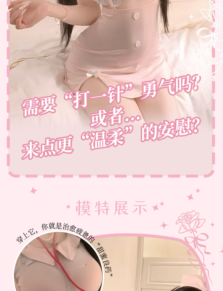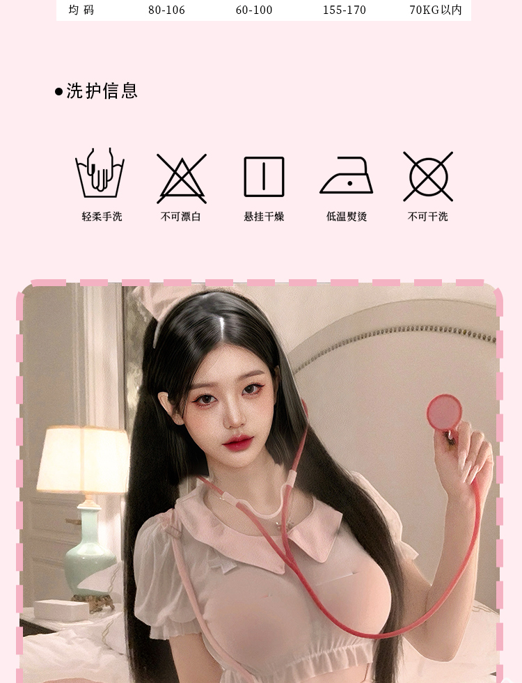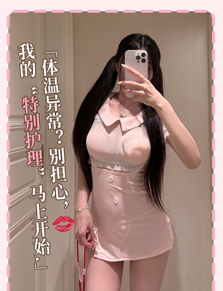 【乖乖小护士】枕趣制服诱惑可爱护士情趣内衣(上衣+背带裙+发箍+T裤)