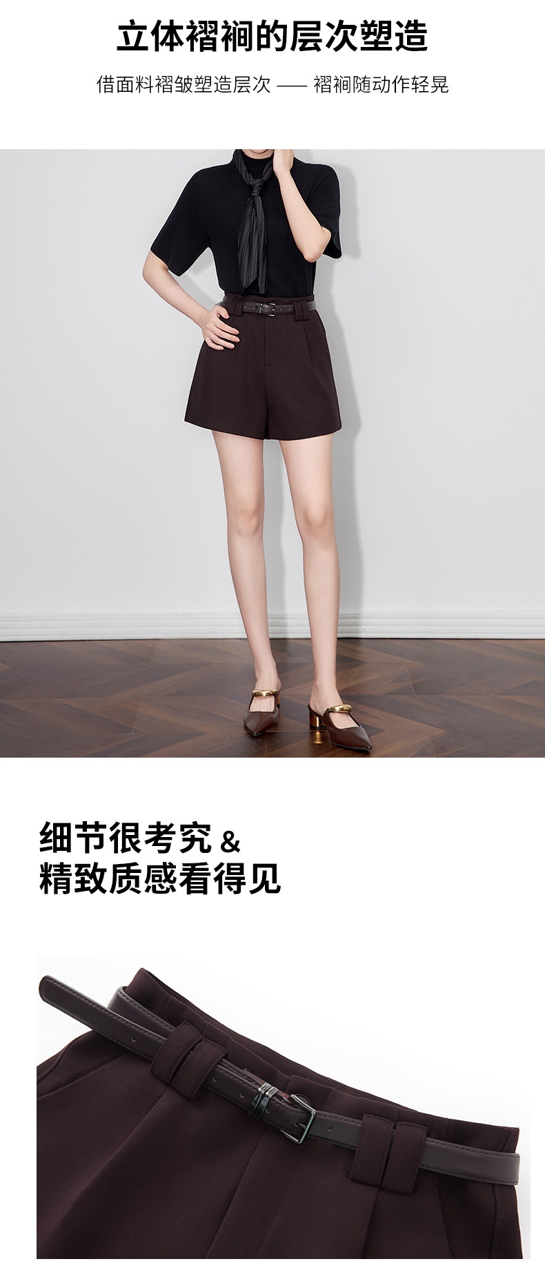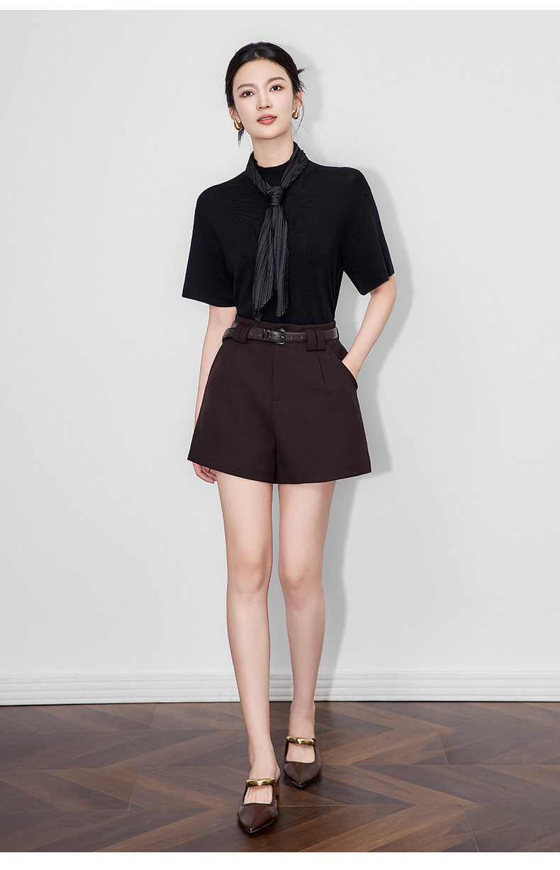 「高货wl」全新升级【铂金会员220/天猫299/差价79】(12213)洛诗琳气质天丝混纺西装短裤2025早秋通勤休闲A字阔腿短裤