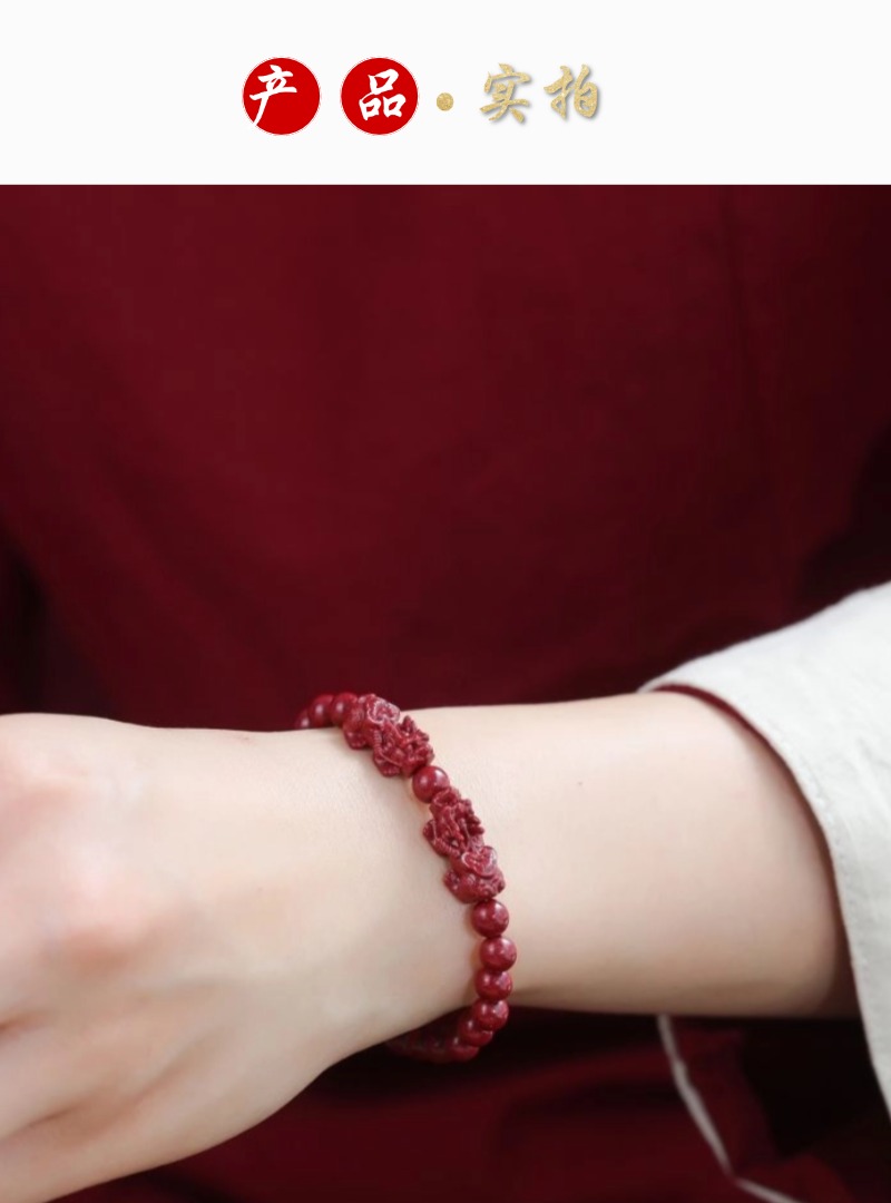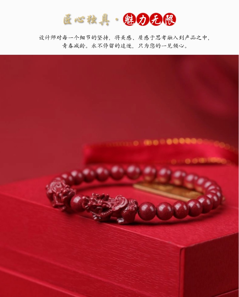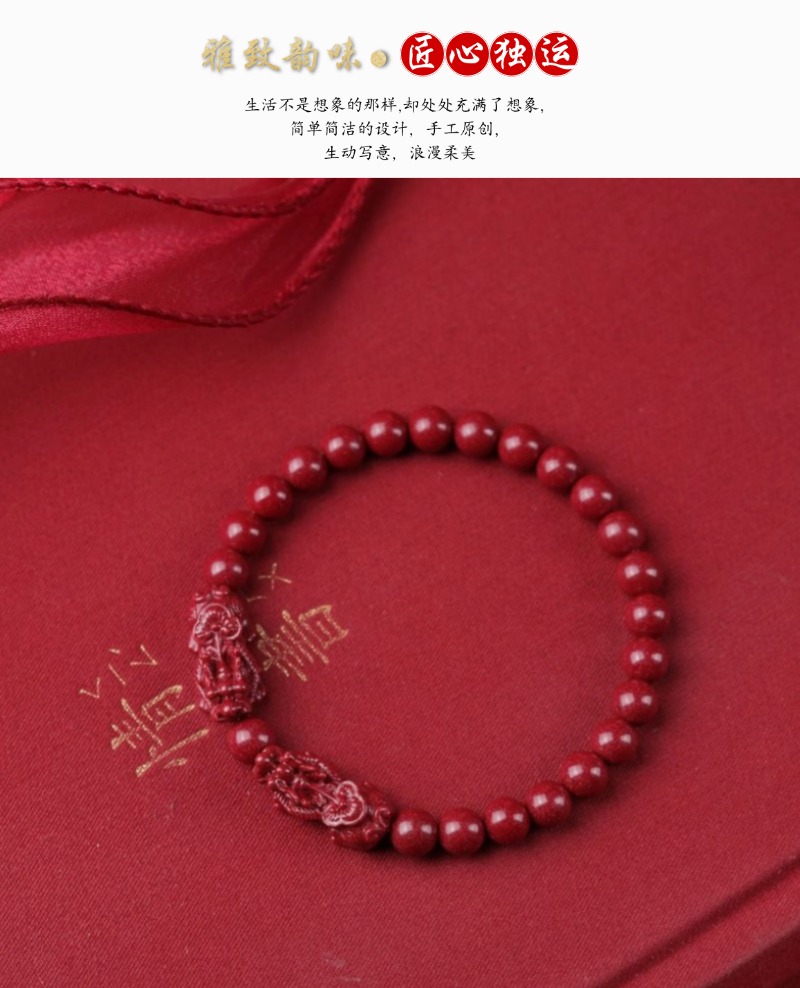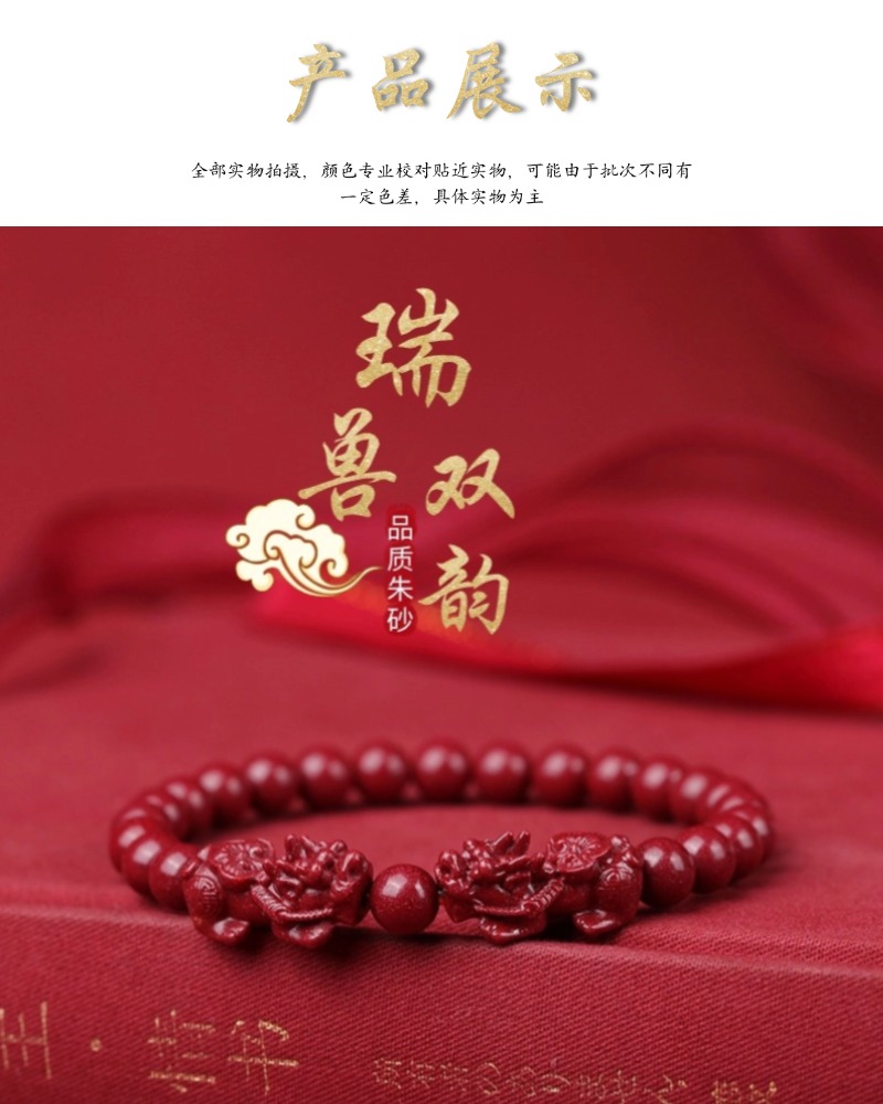 珩钻 国潮系列瑞兽双韵手串高质朱砂手链6mm