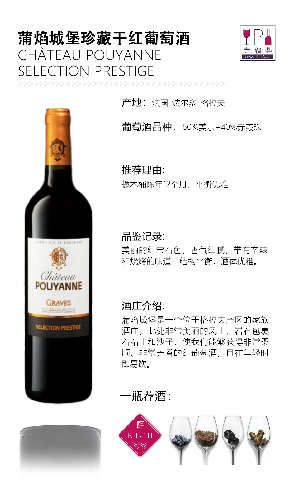 【精品推荐】法国 蒲焰城堡珍藏干红 2019 格拉夫