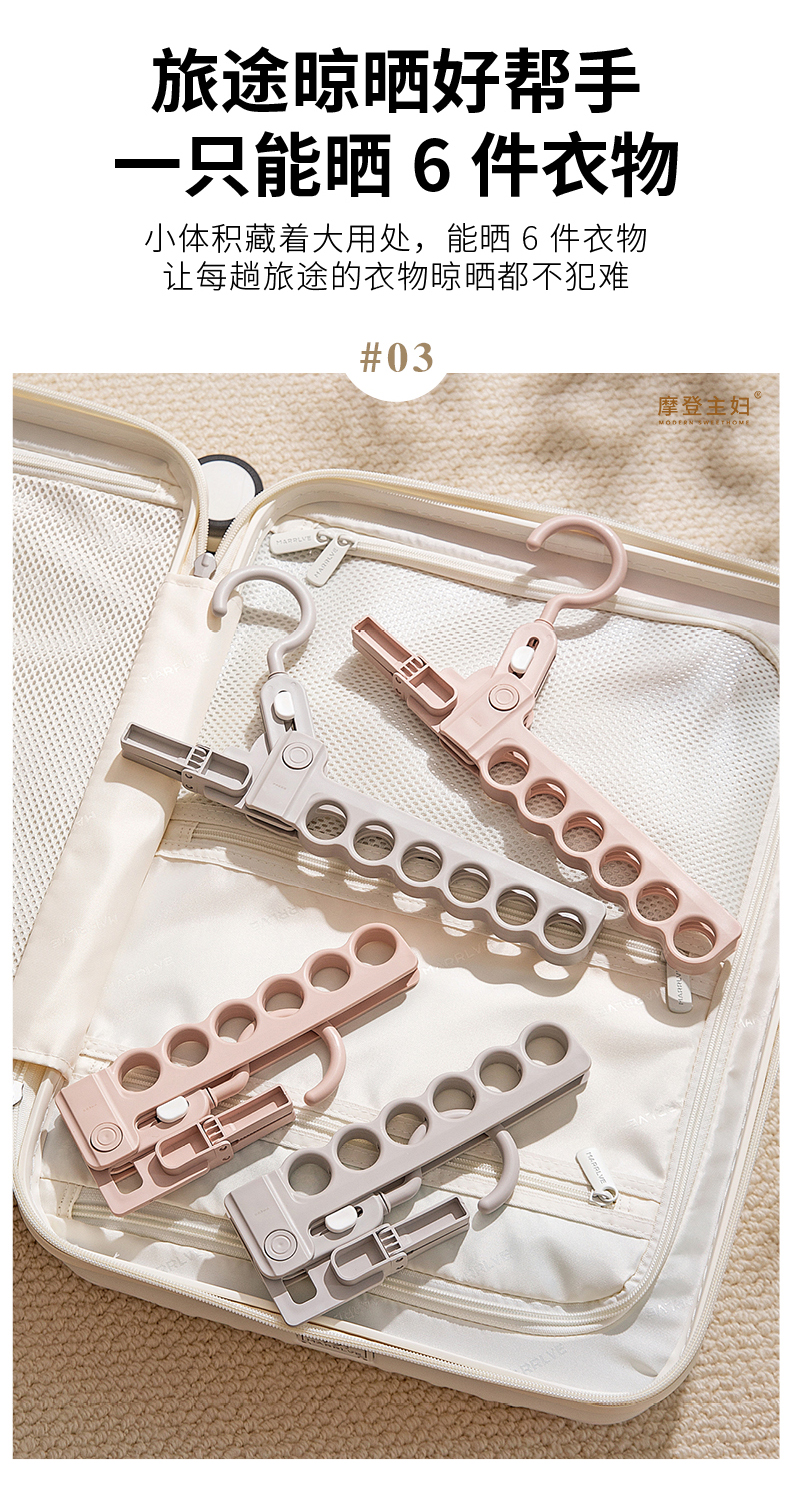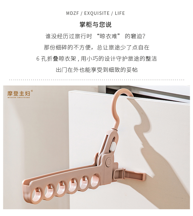 摩登主妇旅行可折叠晾衣架便携式酒店出行旅游用品出差晒衣服神器
