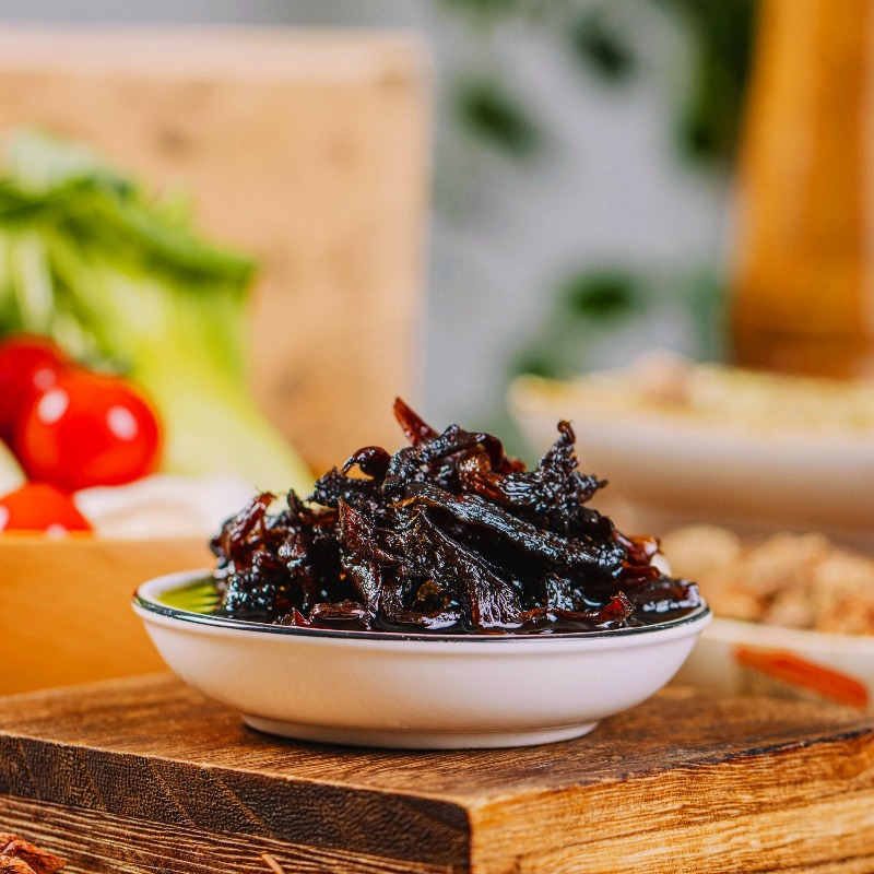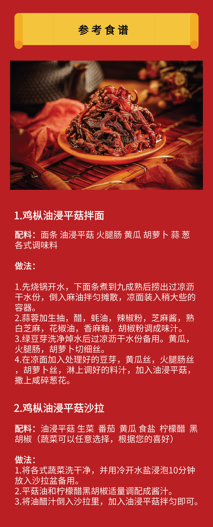 温馨提示:本品仅在口味上接近油浸鸡枞,但在营养价值和口感上并不能替代油浸鸡枞