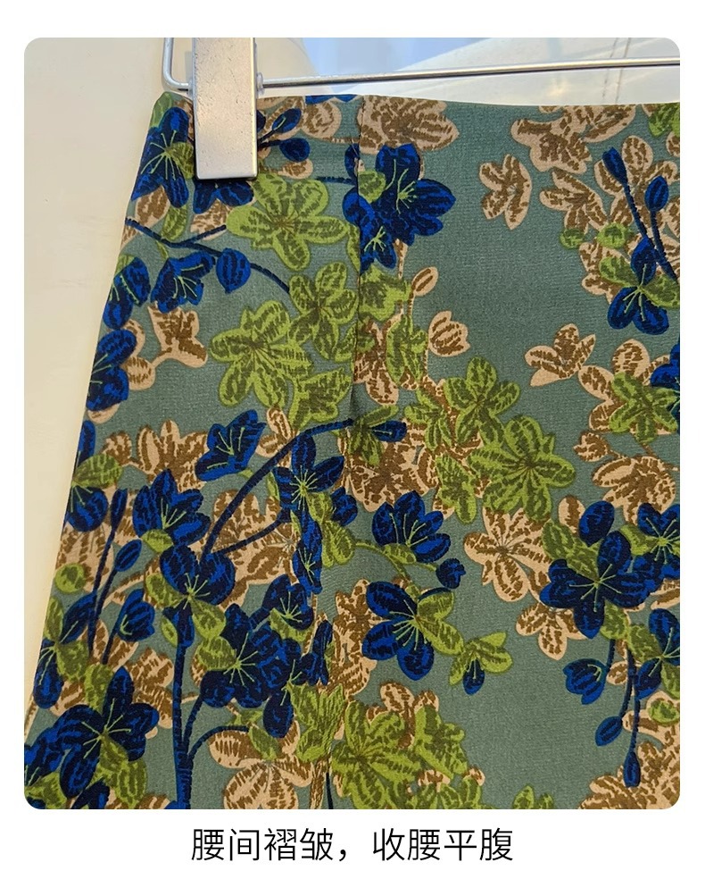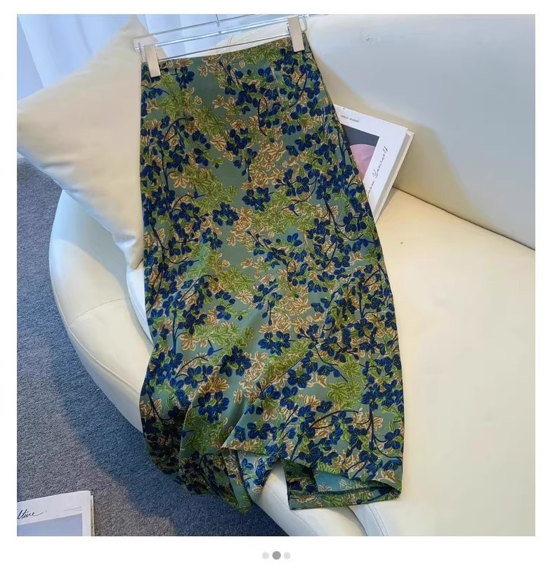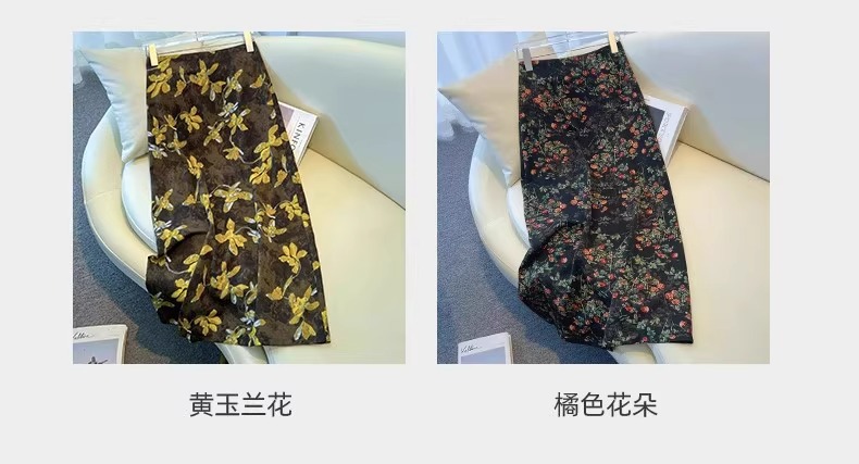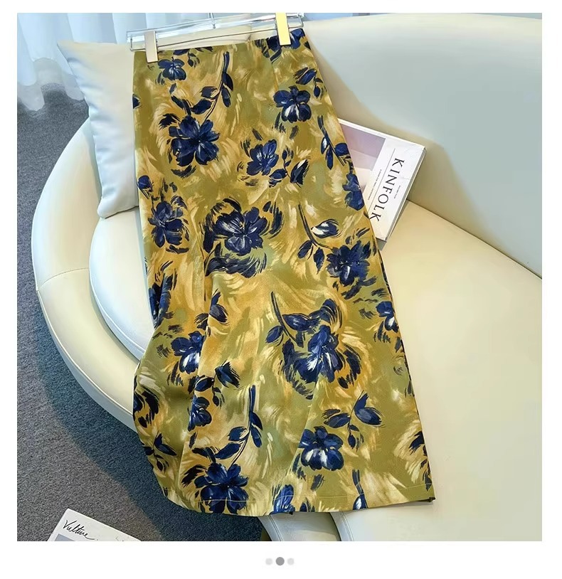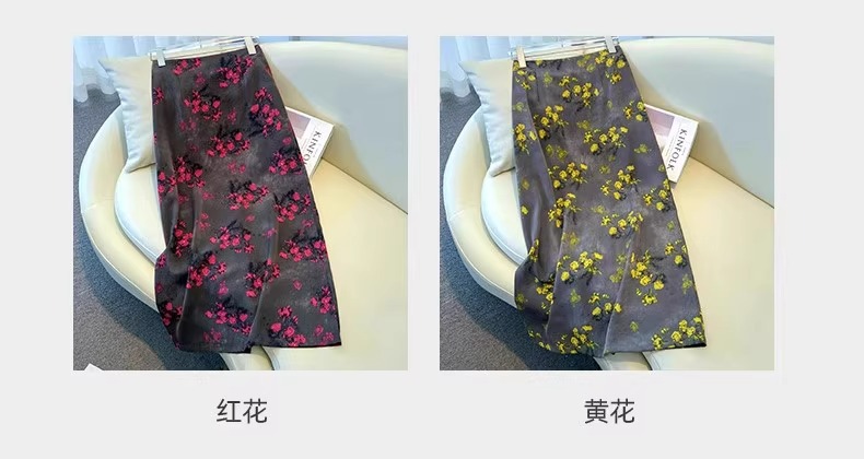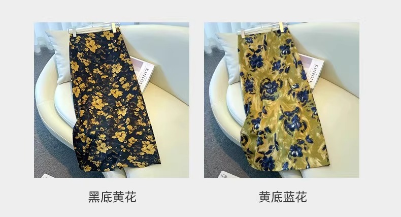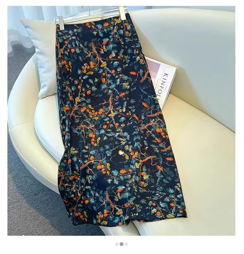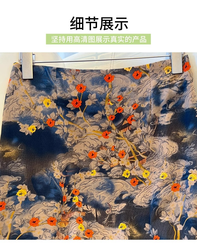 丁摩 高端醋酸碎花半身裙中长款女夏季印花垂坠感a字包臀裙子5ZF-5051