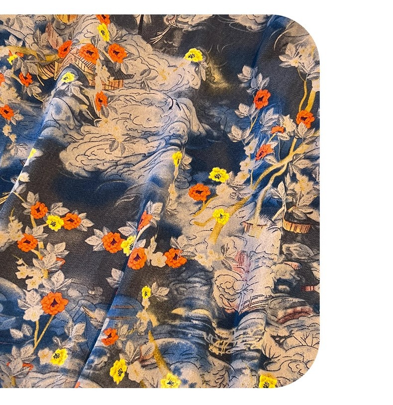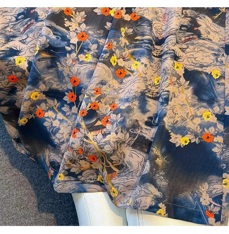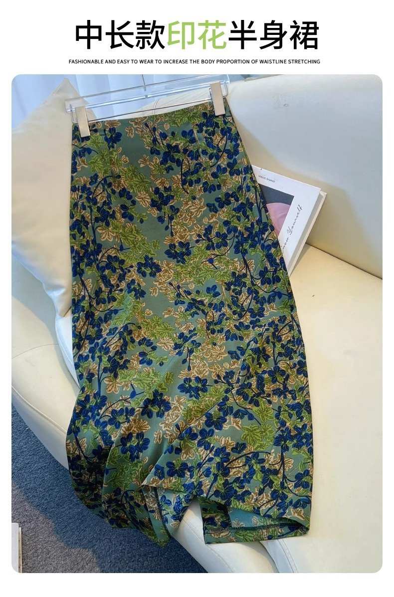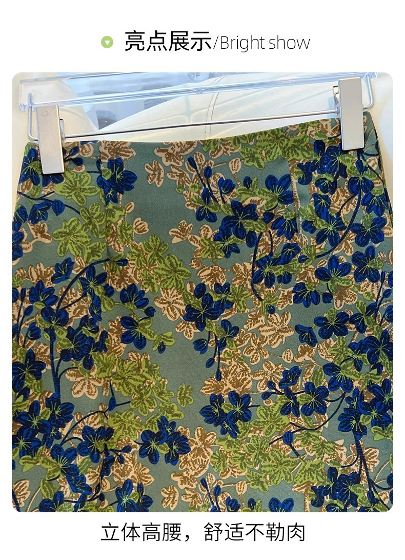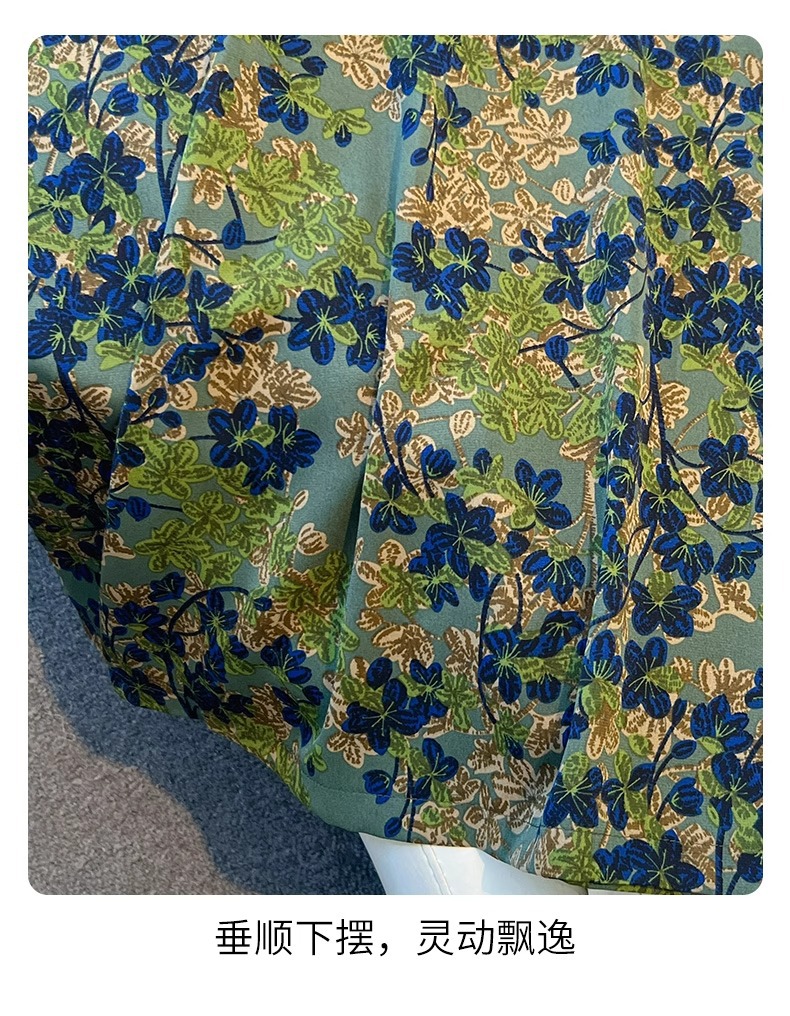 丁摩 高端醋酸碎花半身裙中长款女夏季印花垂坠感a字包臀裙子5ZF-5051