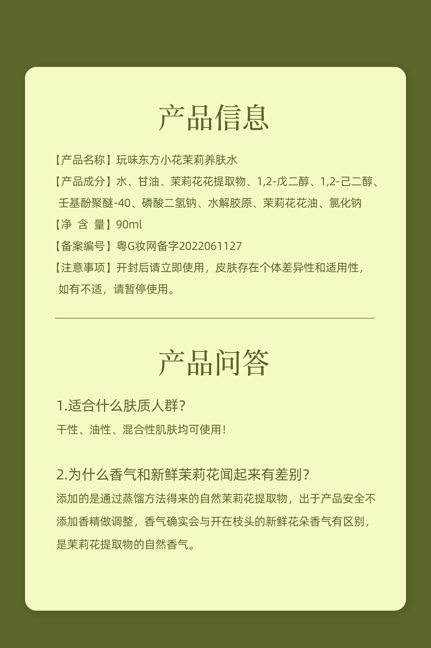 玩味東方·小花茉莉养肤水90ml 补水喷雾 春天的芬芳