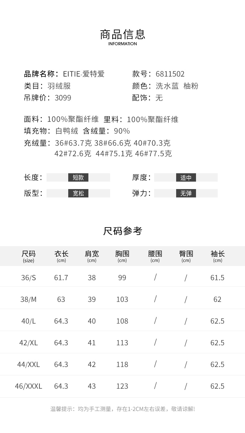爱特爱冬季新款时尚白鸭绒短款羽绒服6811502