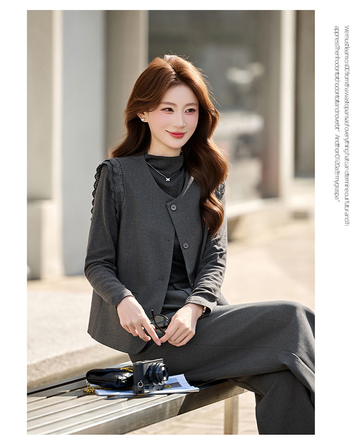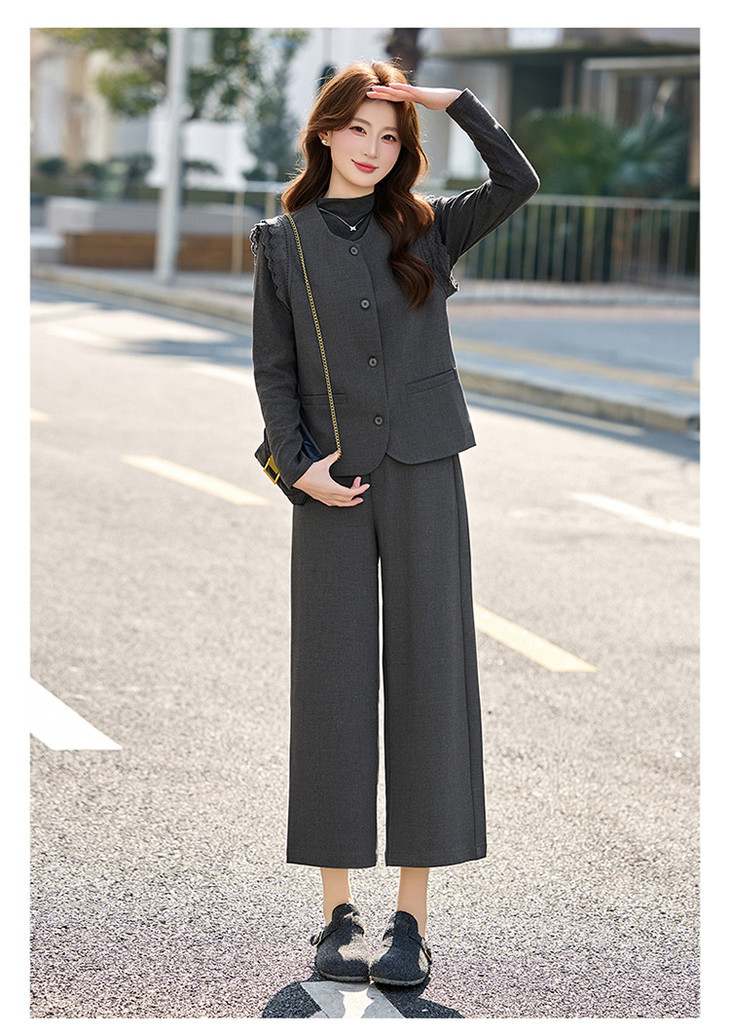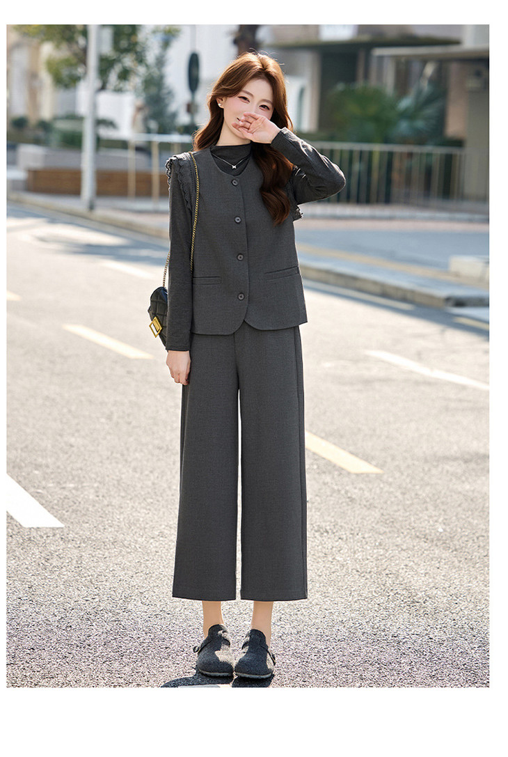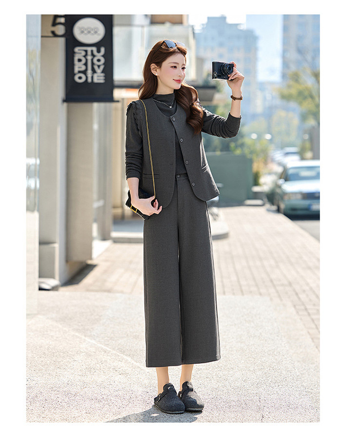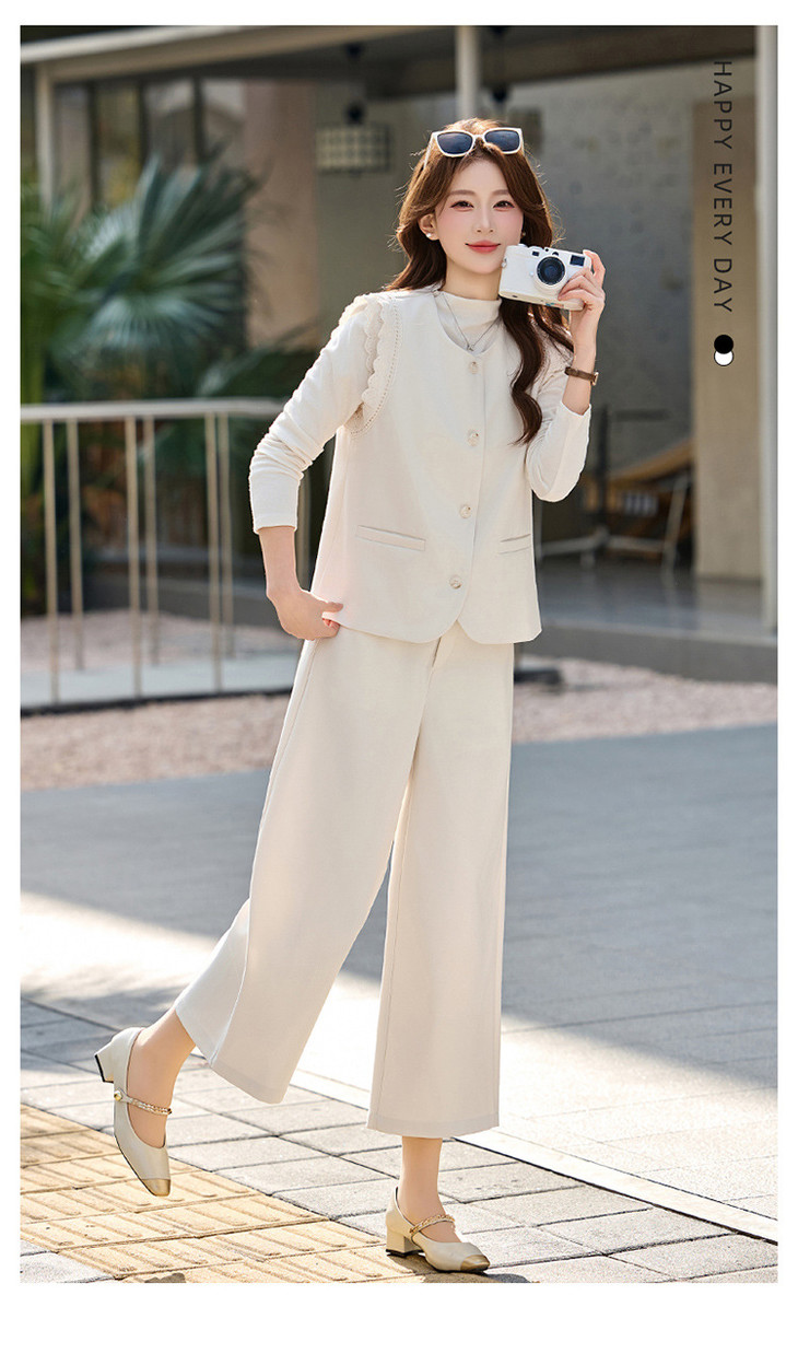 OL通勤风套装女装小个子春季新款气质马甲T恤七分裤三件套SNX3251 商品图2