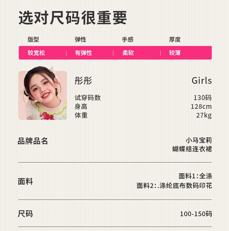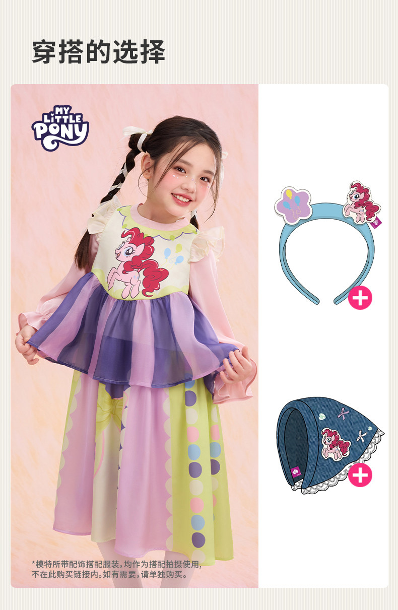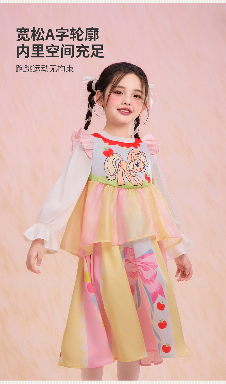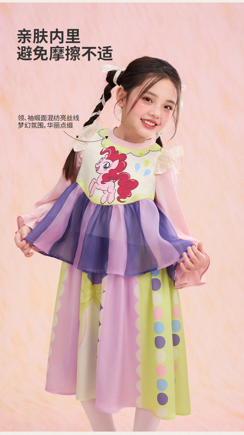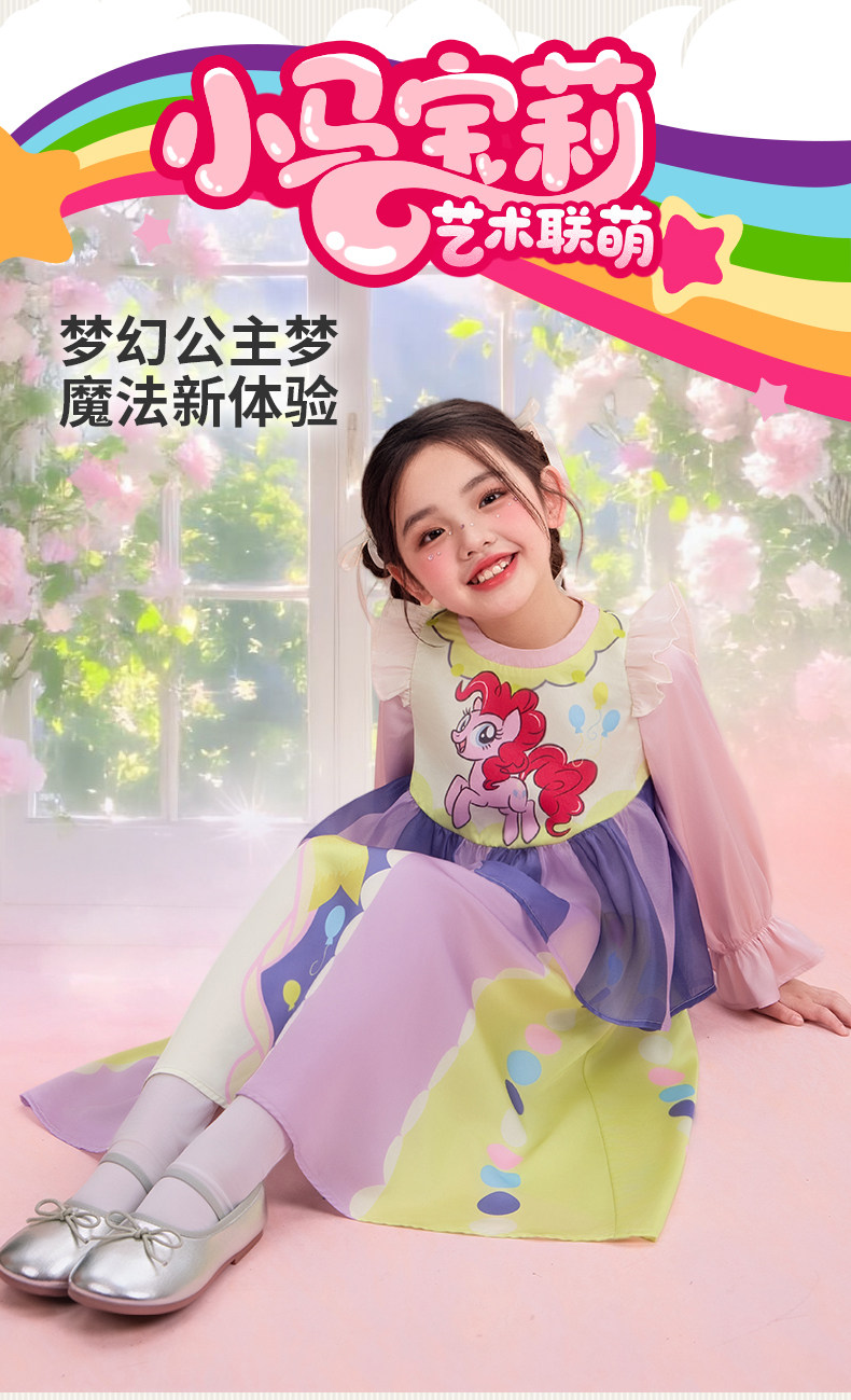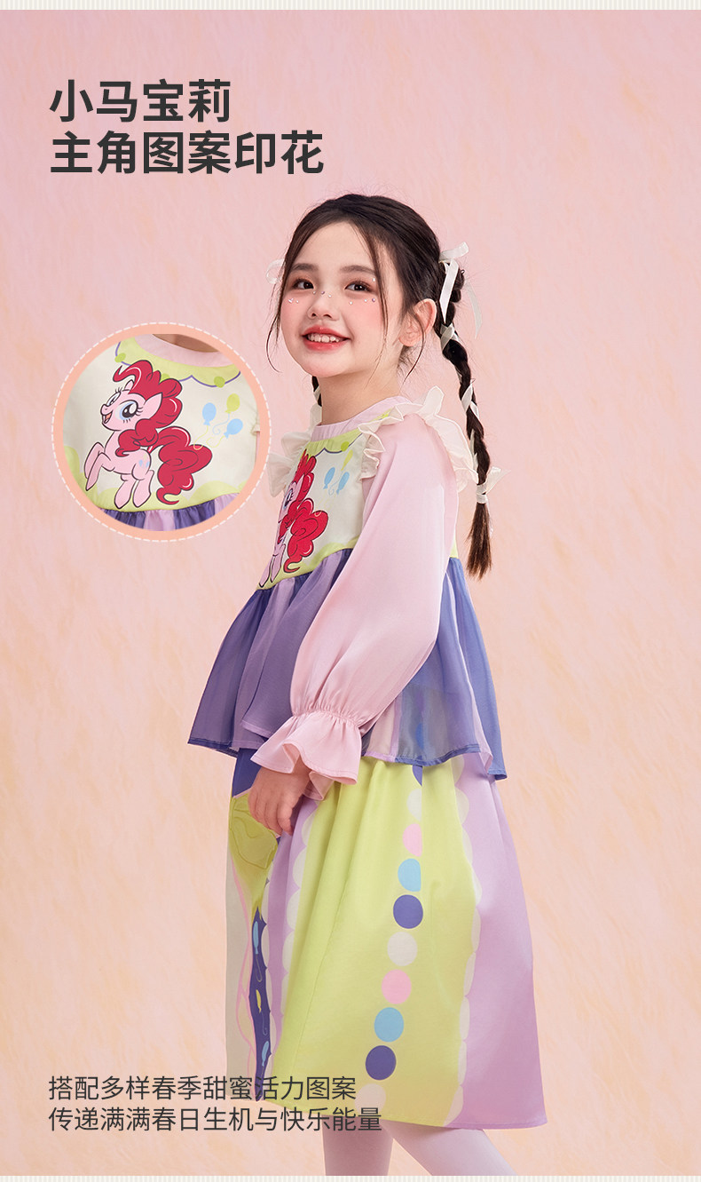 小马宝莉联名年衣童装长袖连衣裙春新款女童小马宝莉蝴蝶结连衣裙N1261024C02