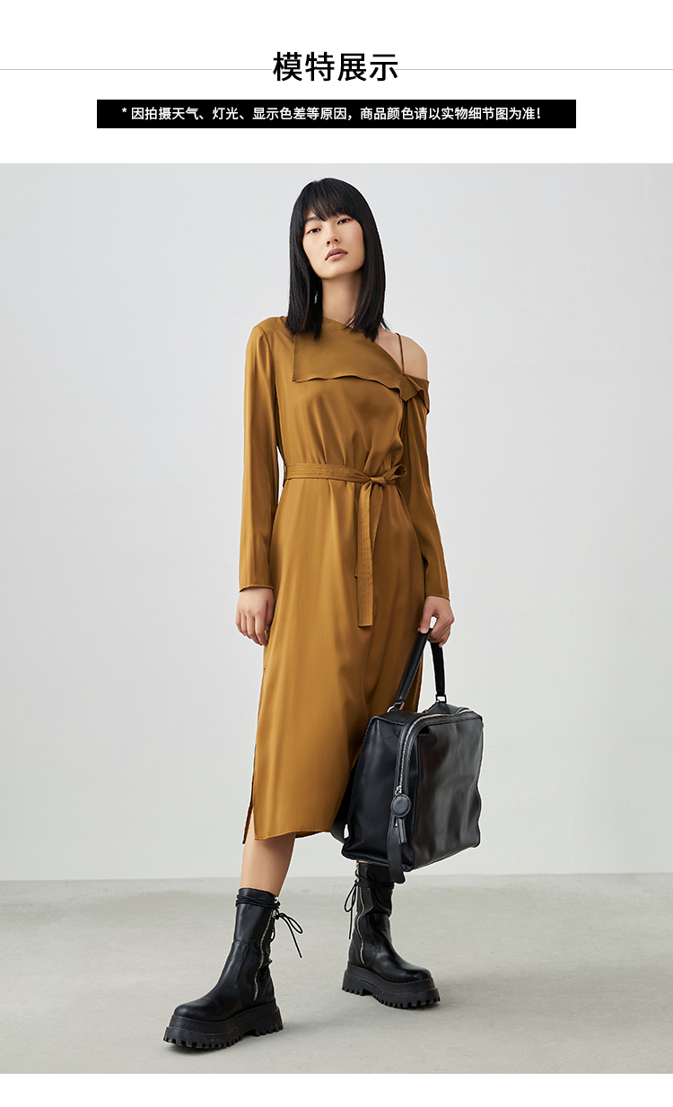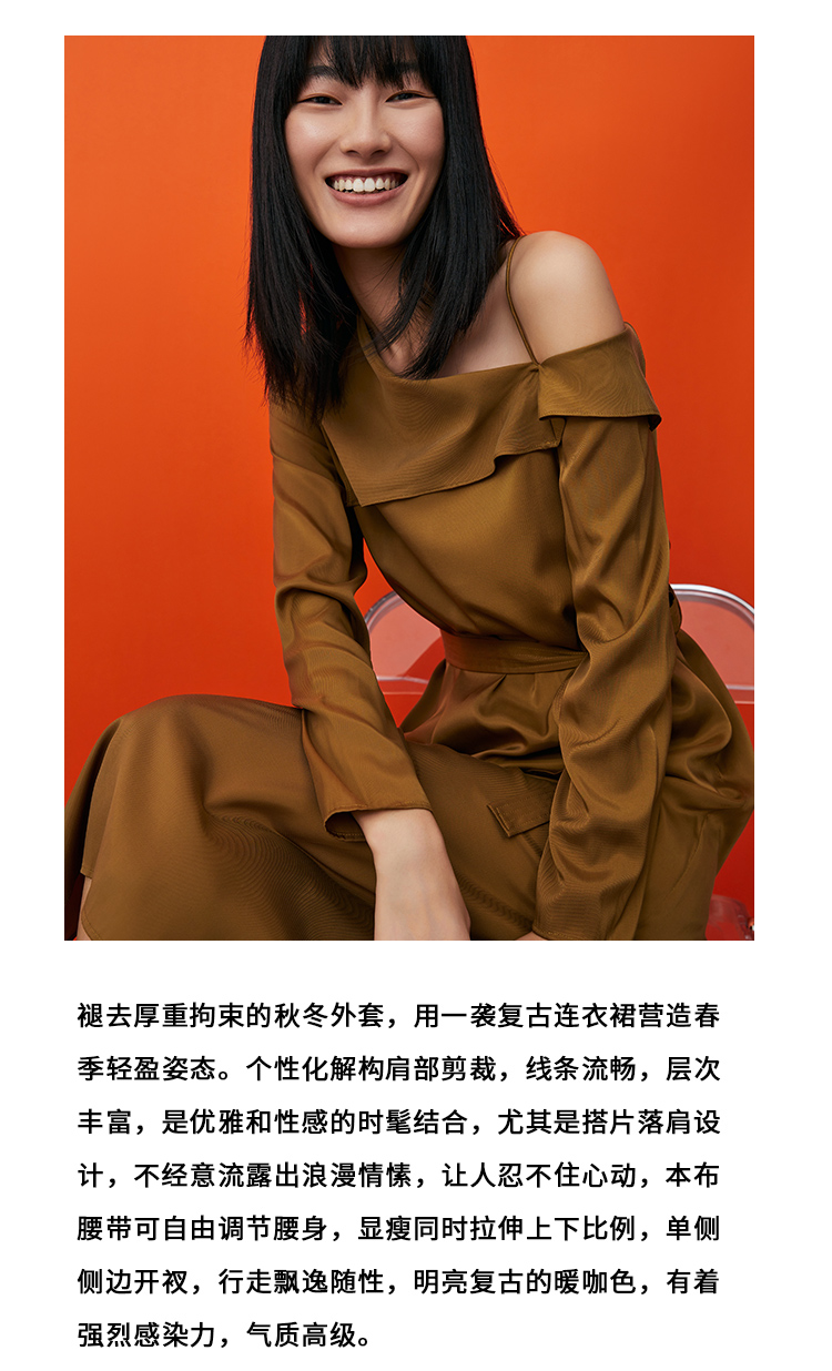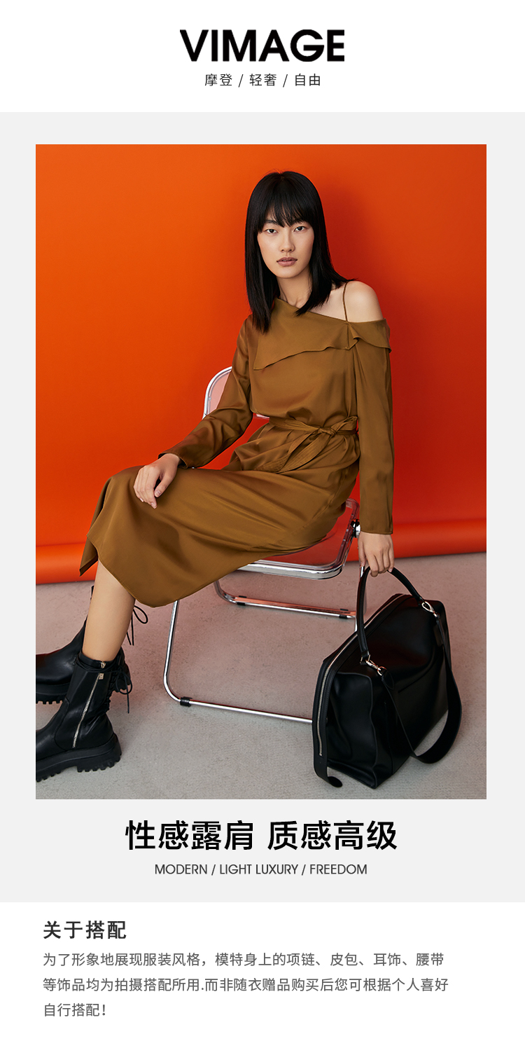 VIMAGE纬漫纪春季新款时尚侧露肩吊带洋气连衣裙V1707309