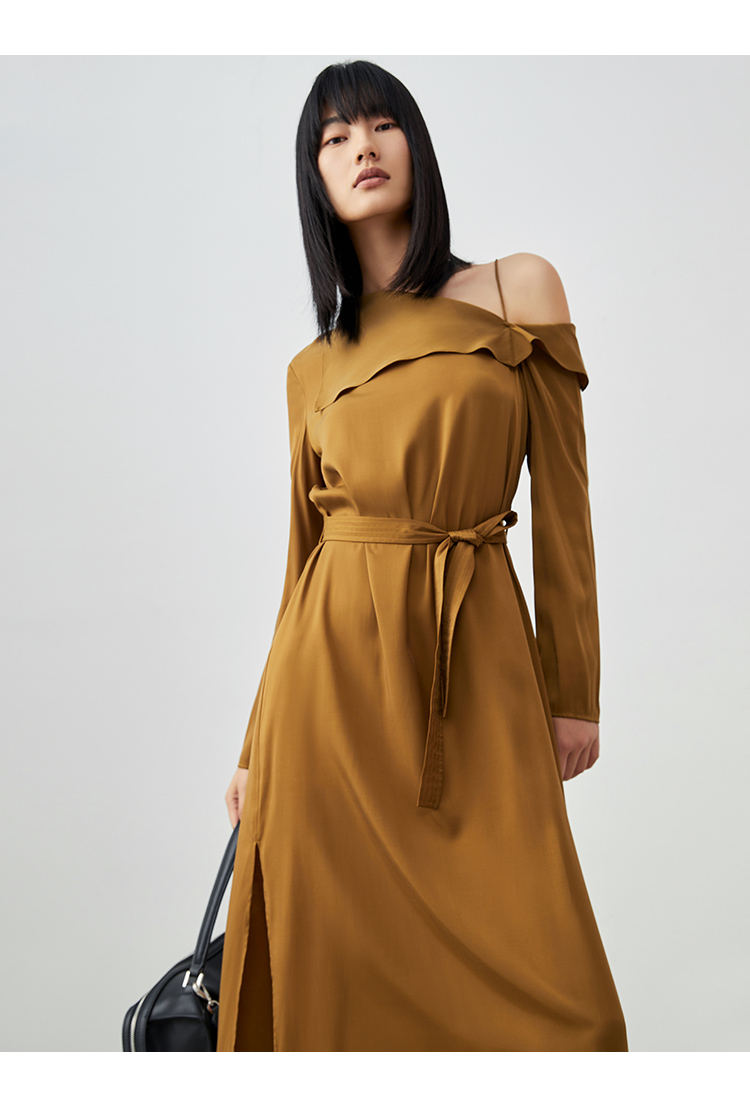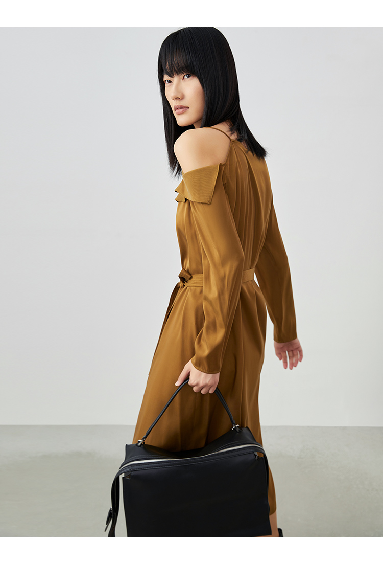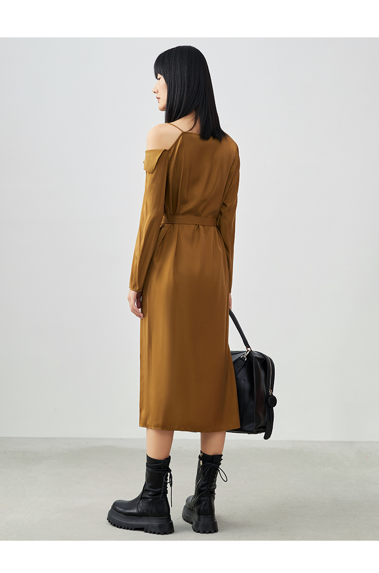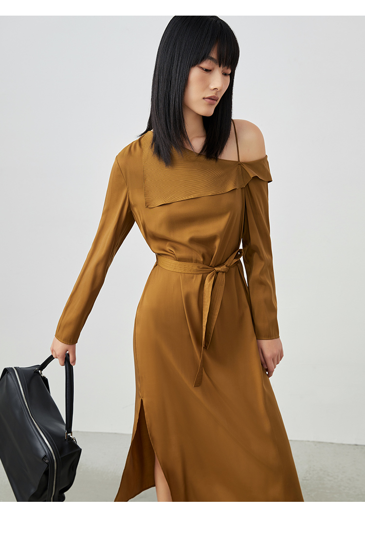VIMAGE纬漫纪春季新款时尚侧露肩吊带洋气连衣裙V1707309