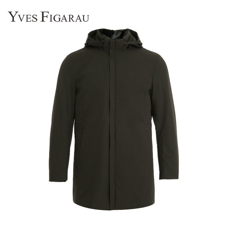 YvesFigarau伊夫·费嘉罗冬季厚款商务休闲时尚保暖连帽中长款毛领羽绒服884201