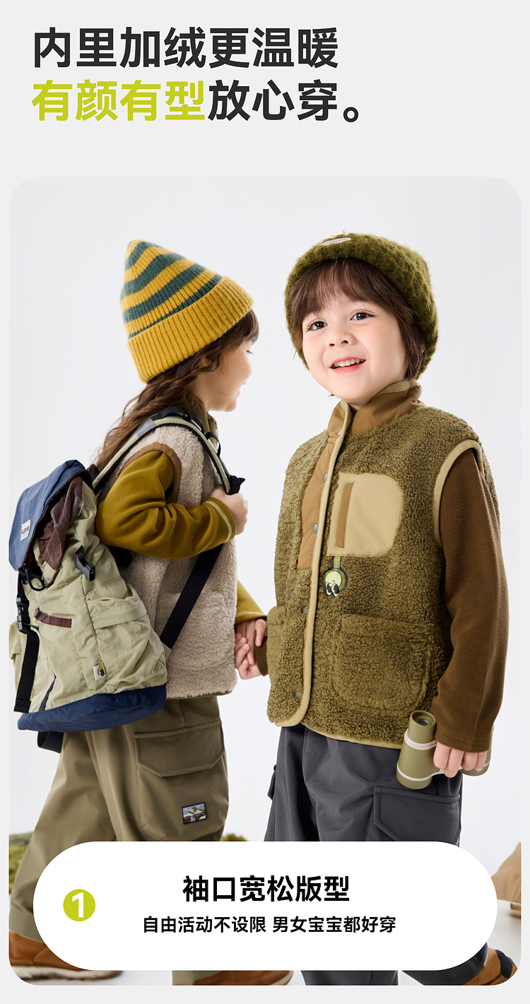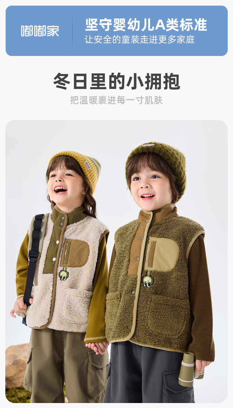 嘟嘟家儿童马甲加绒秋男童坎肩保暖女童秋装加厚宝宝上衣外套秋冬