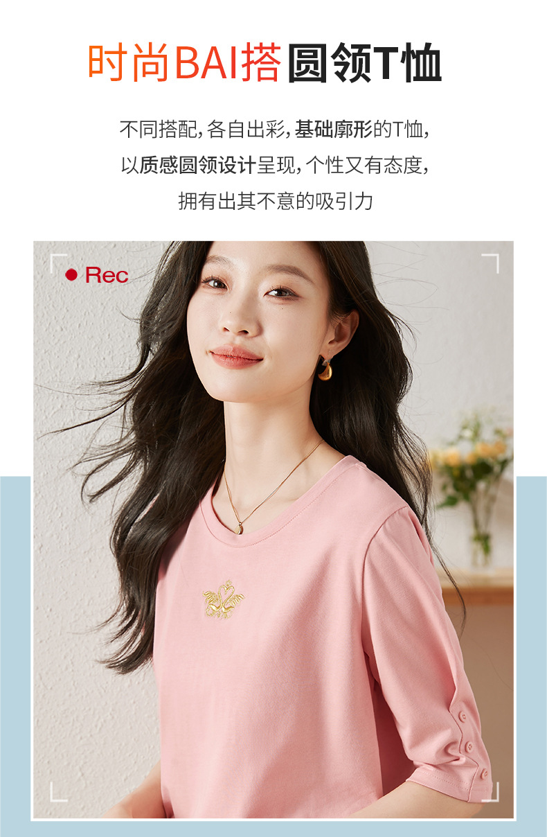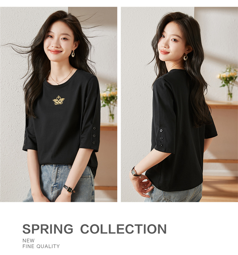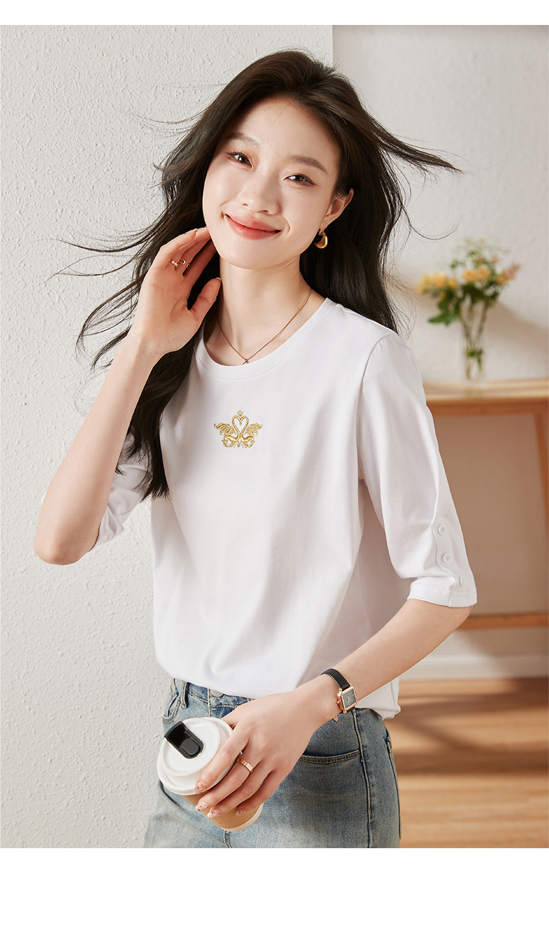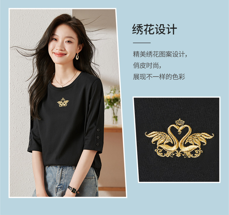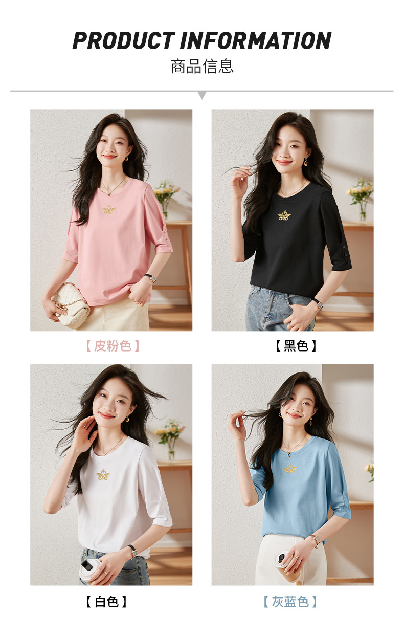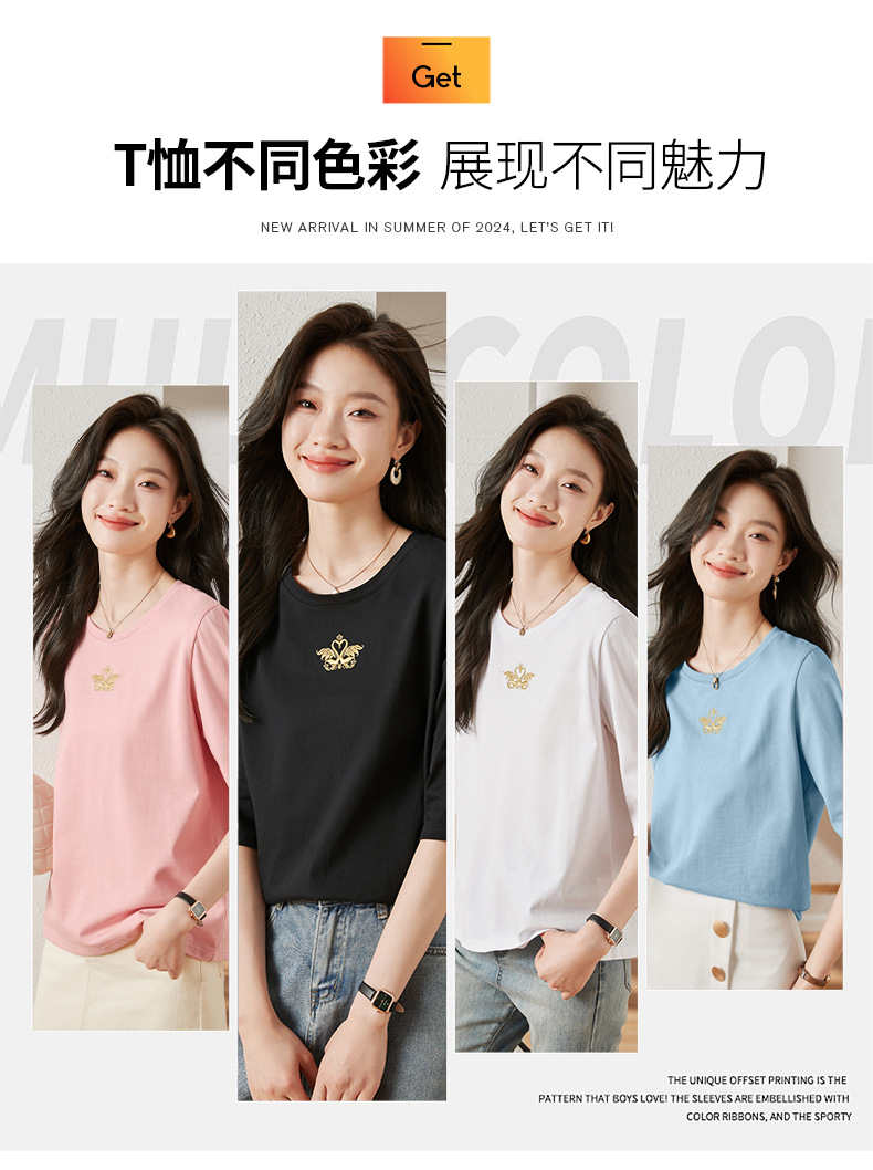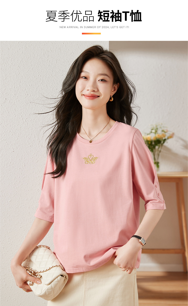 雀说宽松大码女装短袖t恤新款休闲中袖体恤设计感小众上衣AL20041