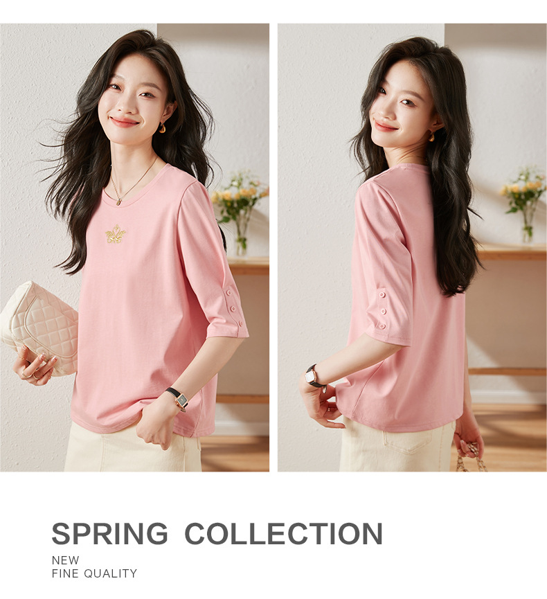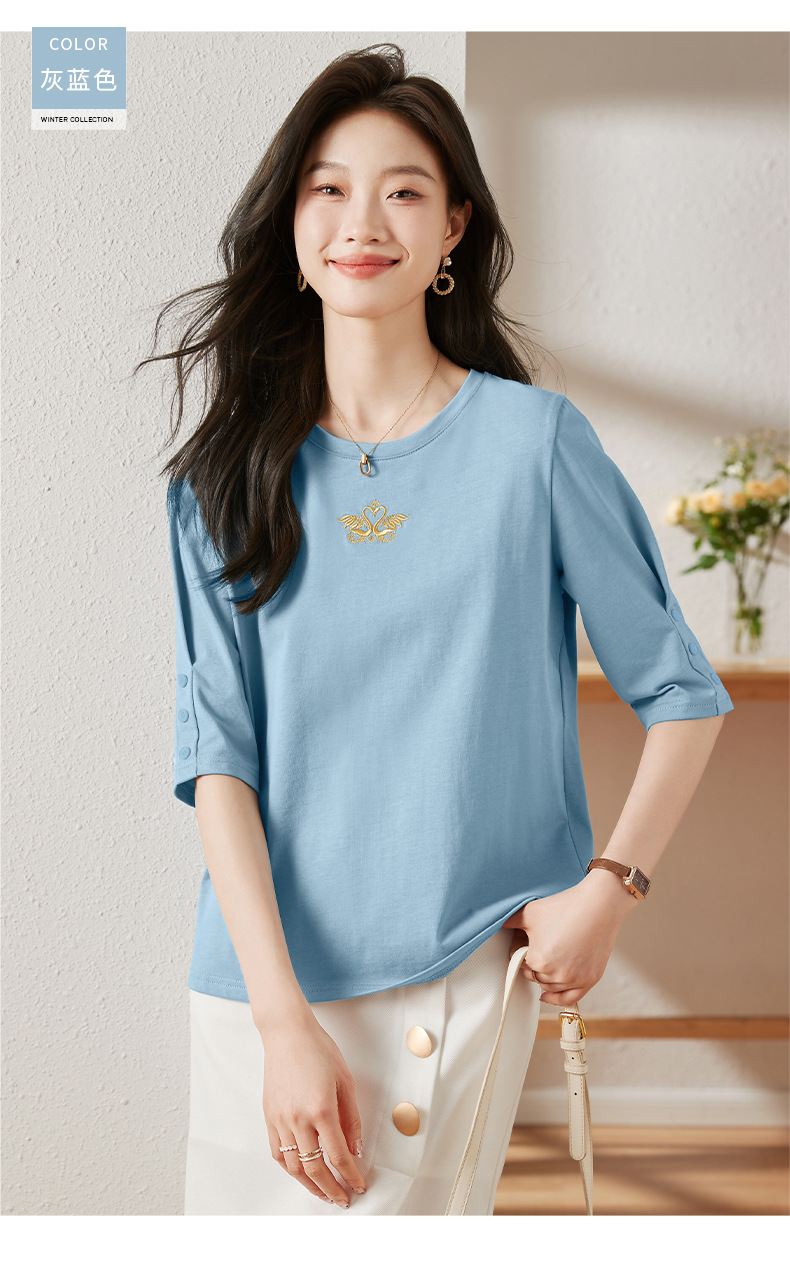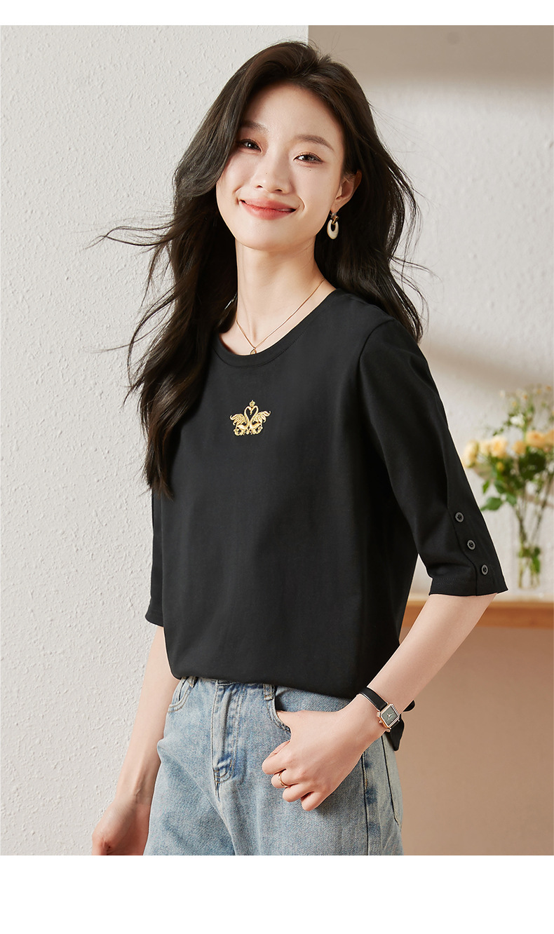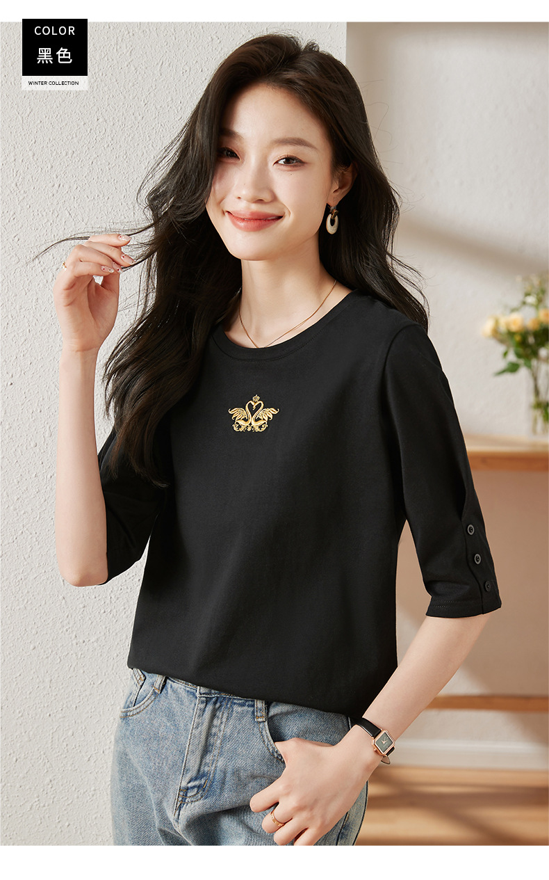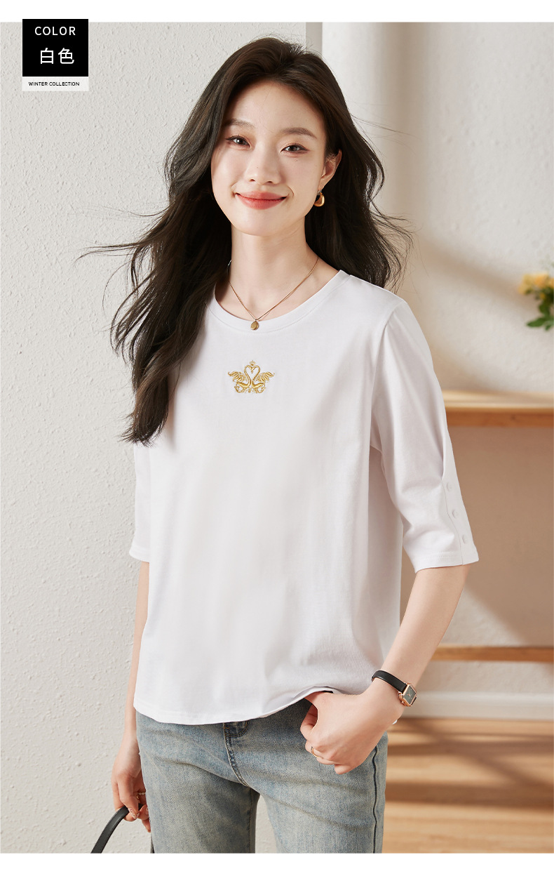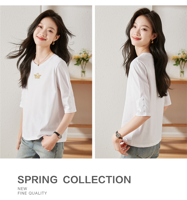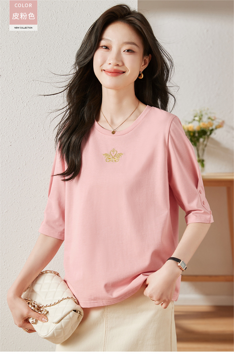 雀说宽松大码女装短袖t恤新款休闲中袖体恤设计感小众上衣AL20041