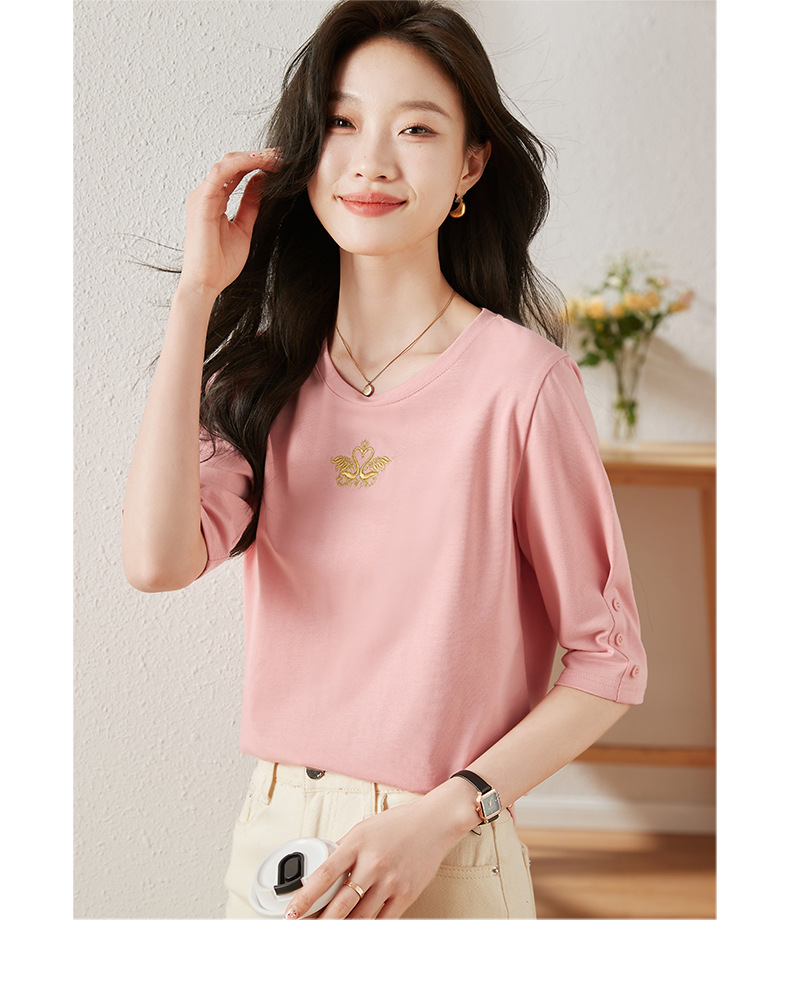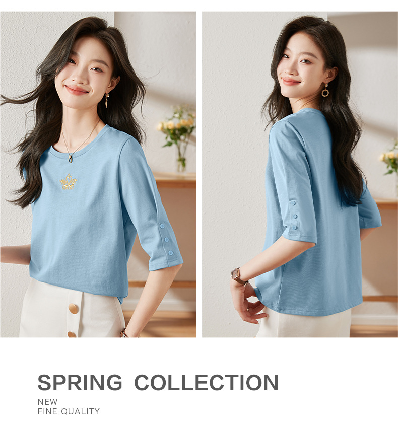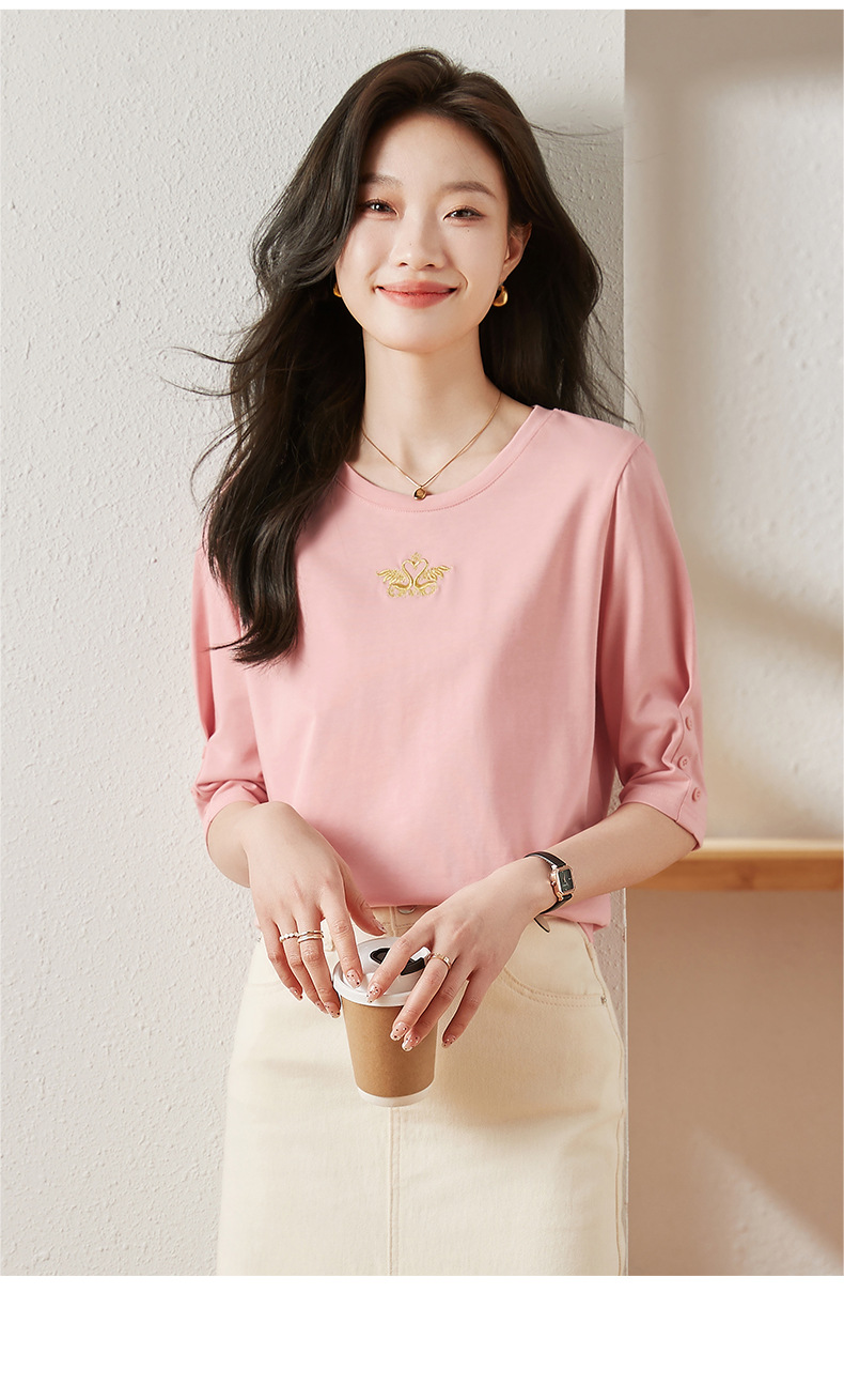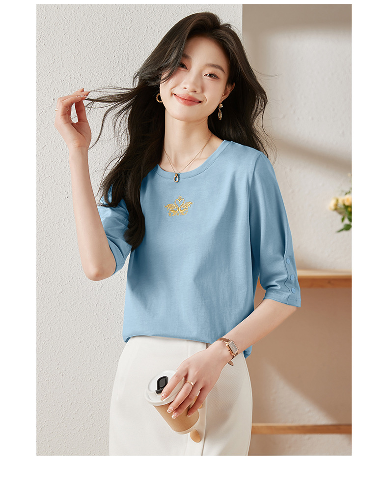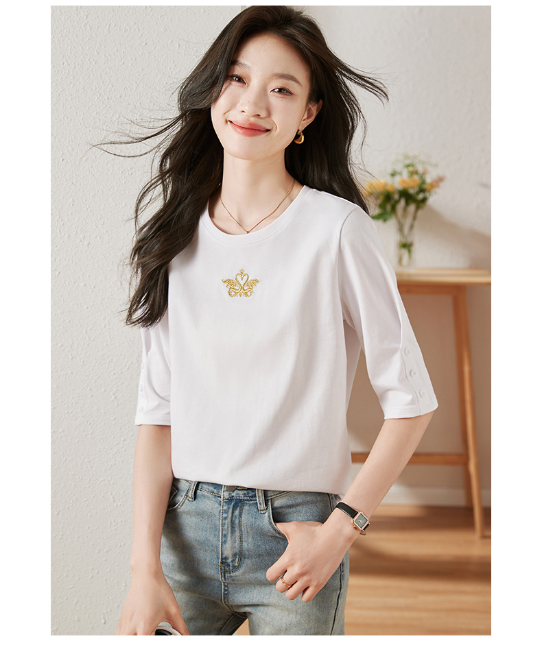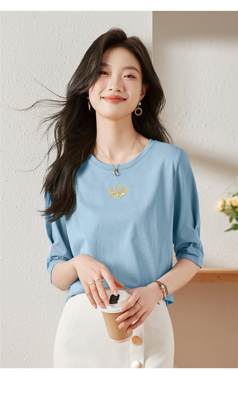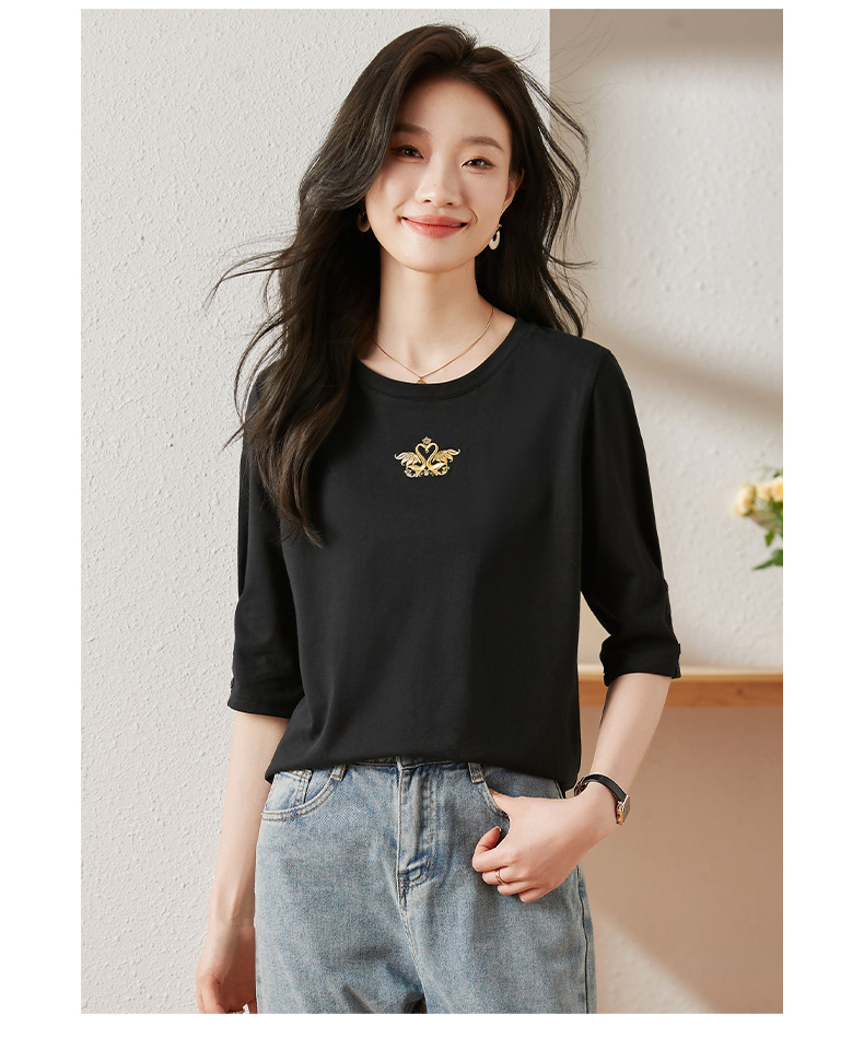 雀说宽松大码女装短袖t恤新款休闲中袖体恤设计感小众上衣AL20041