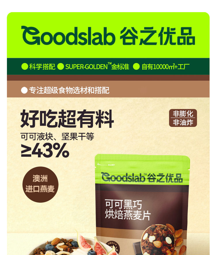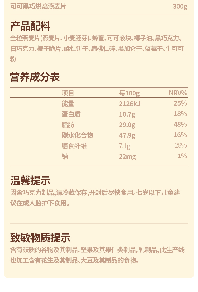 谷之优品可可黑巧烘焙麦片即食酥脆烘焙燕麦