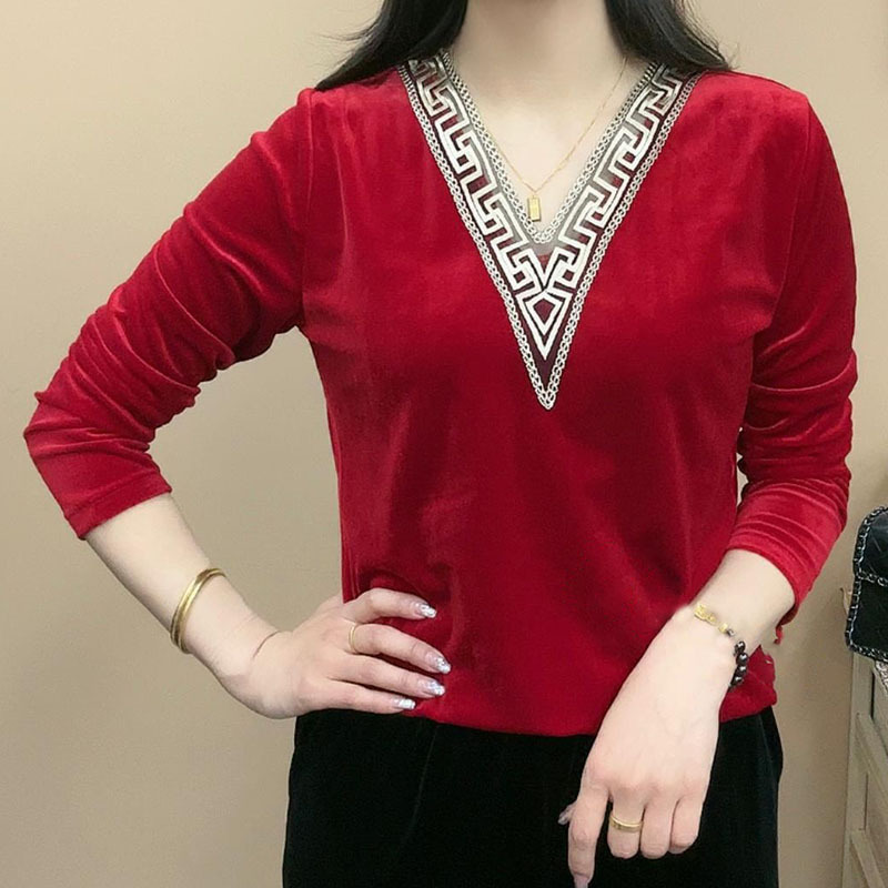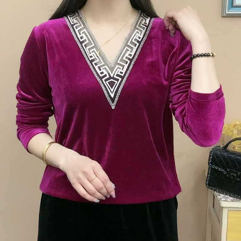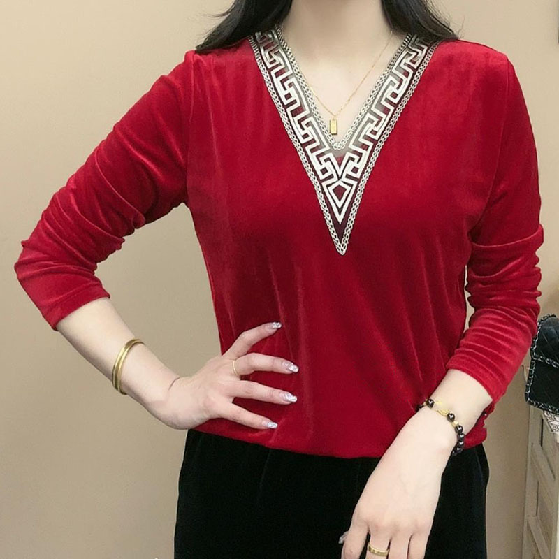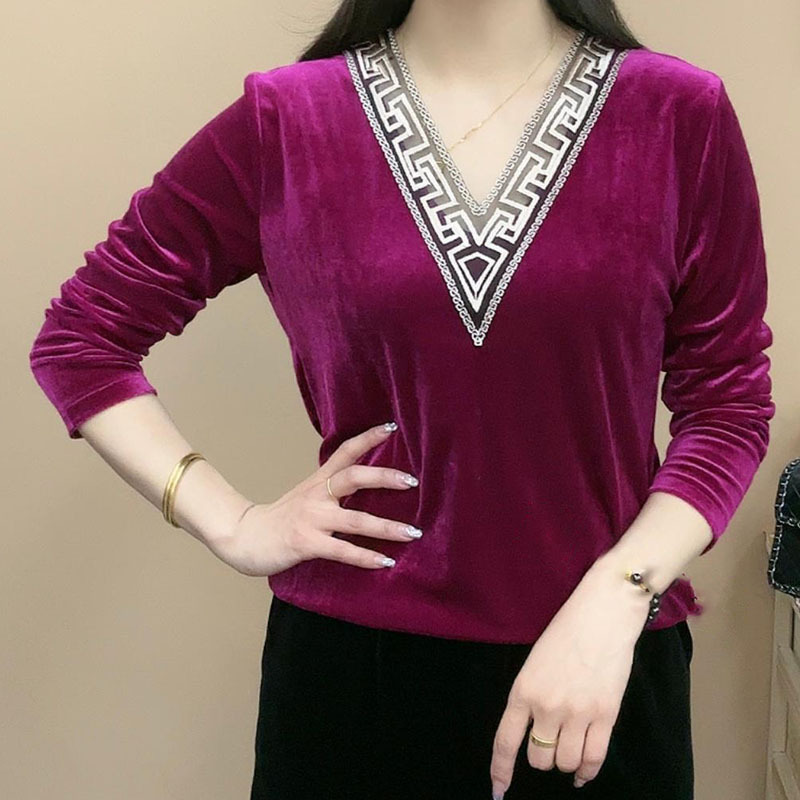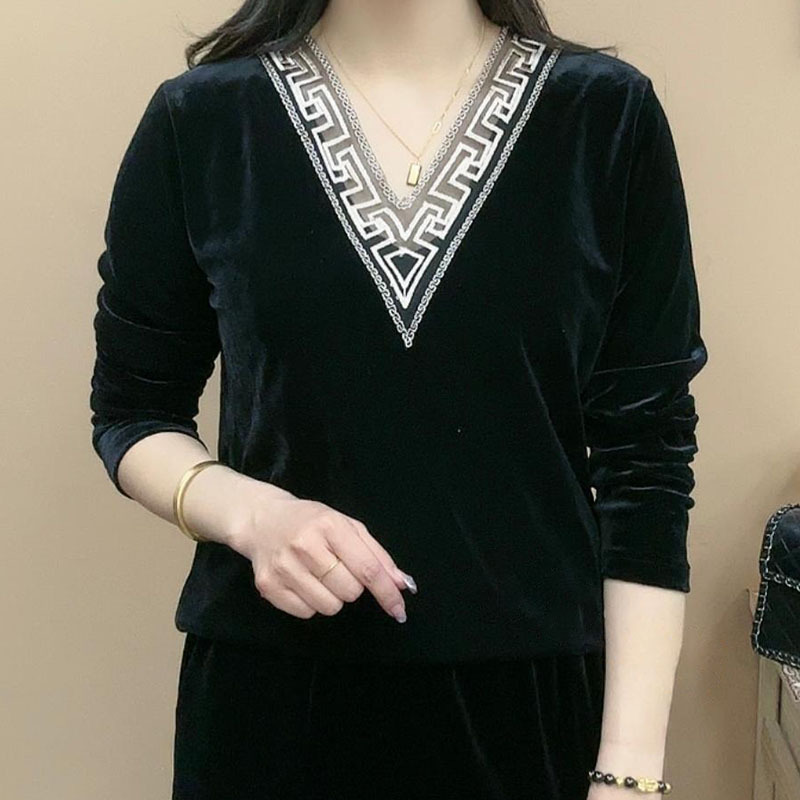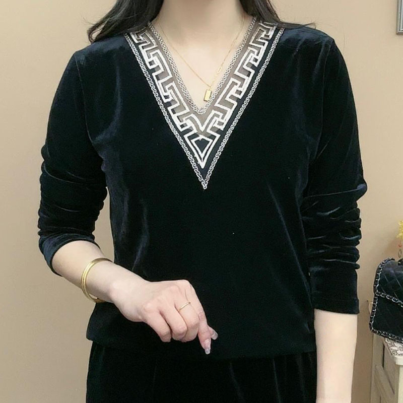 NP 时尚百搭气质丝绒休闲纯色V领小衫