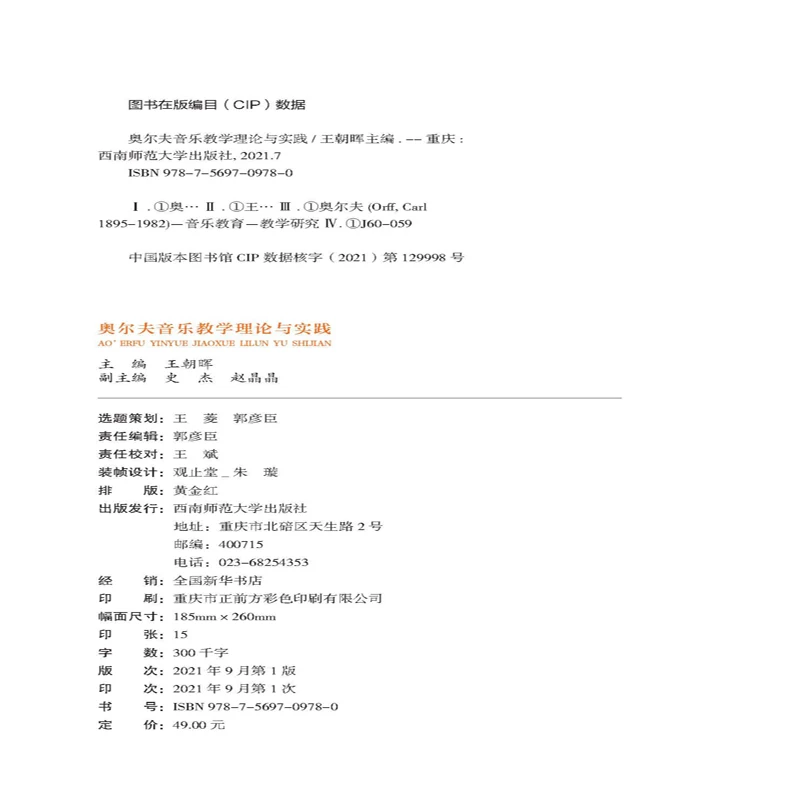*书名:奥尔夫音乐教学理论与实践 | *ISBN:978-7-5697-0978-0 |