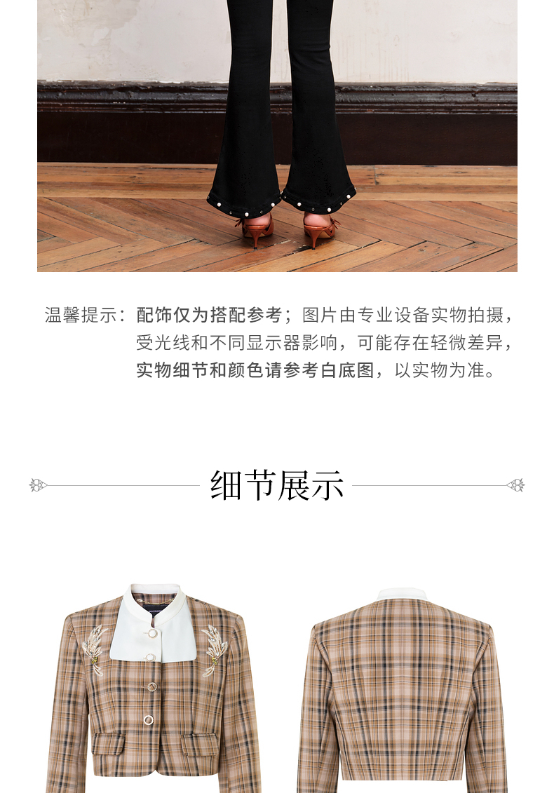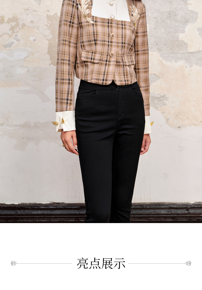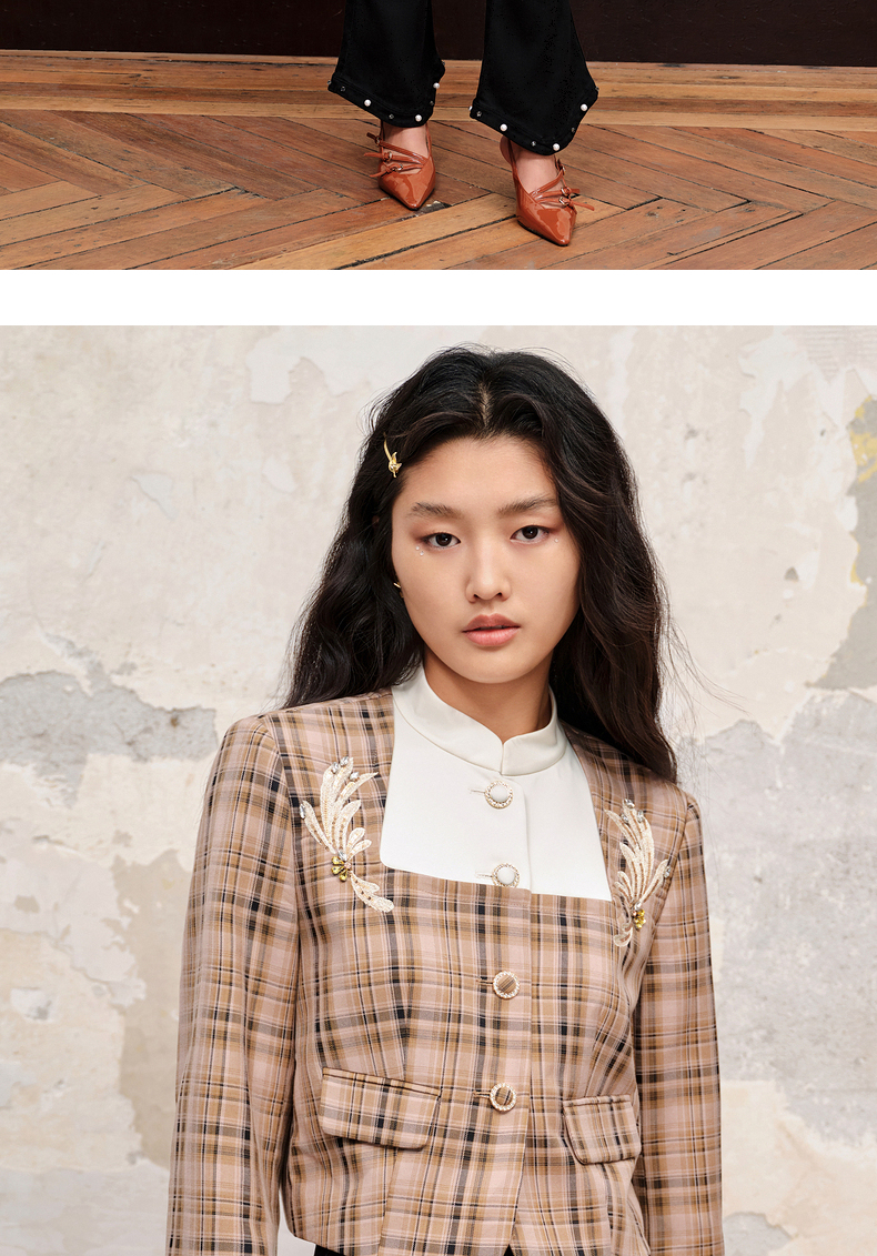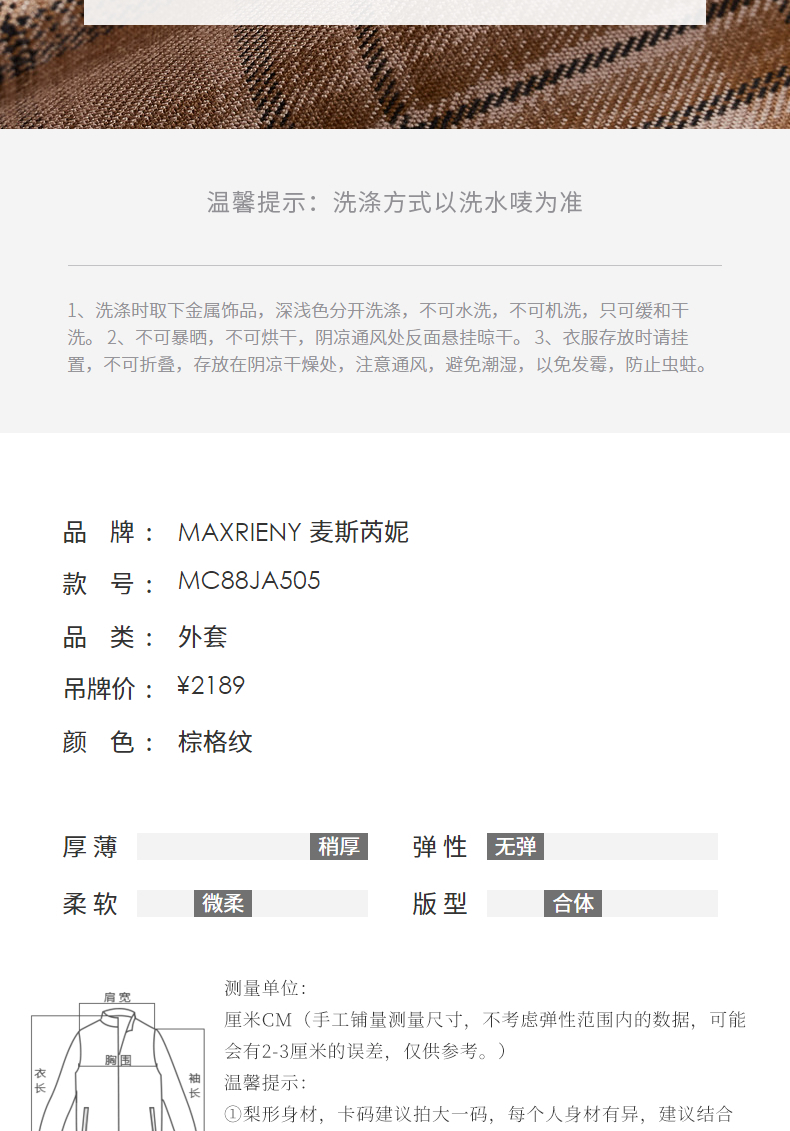 MAXRIENY复古格纹缎面解构外套美拉德穿搭(货号:MC88JA505)