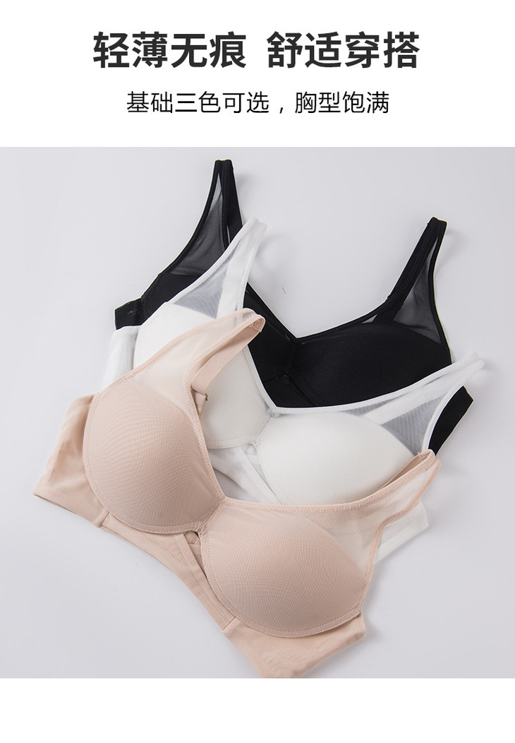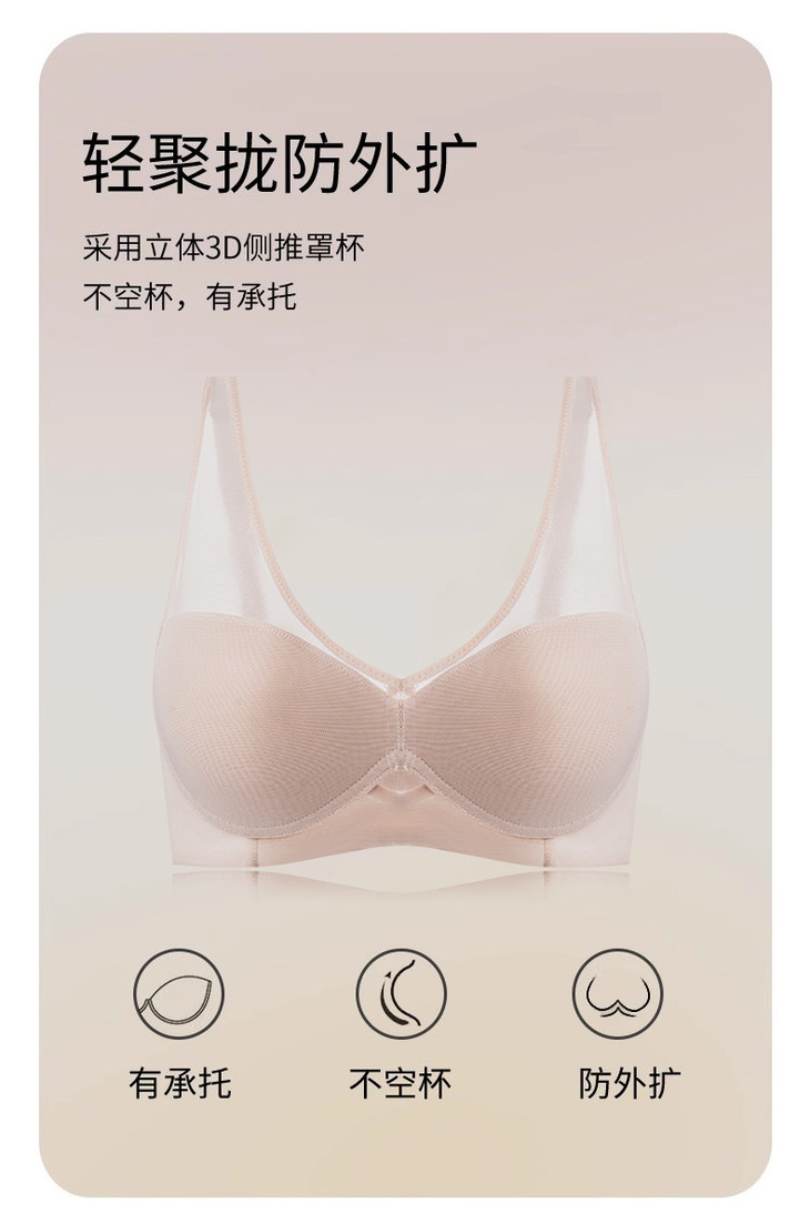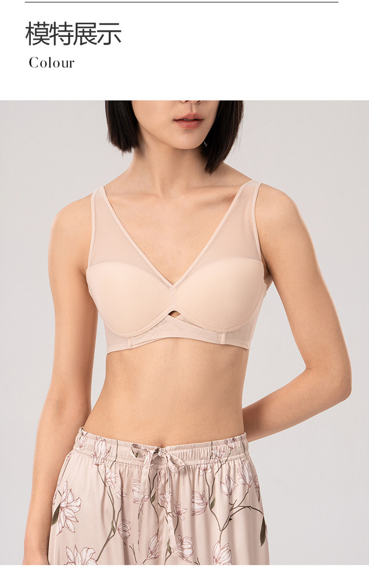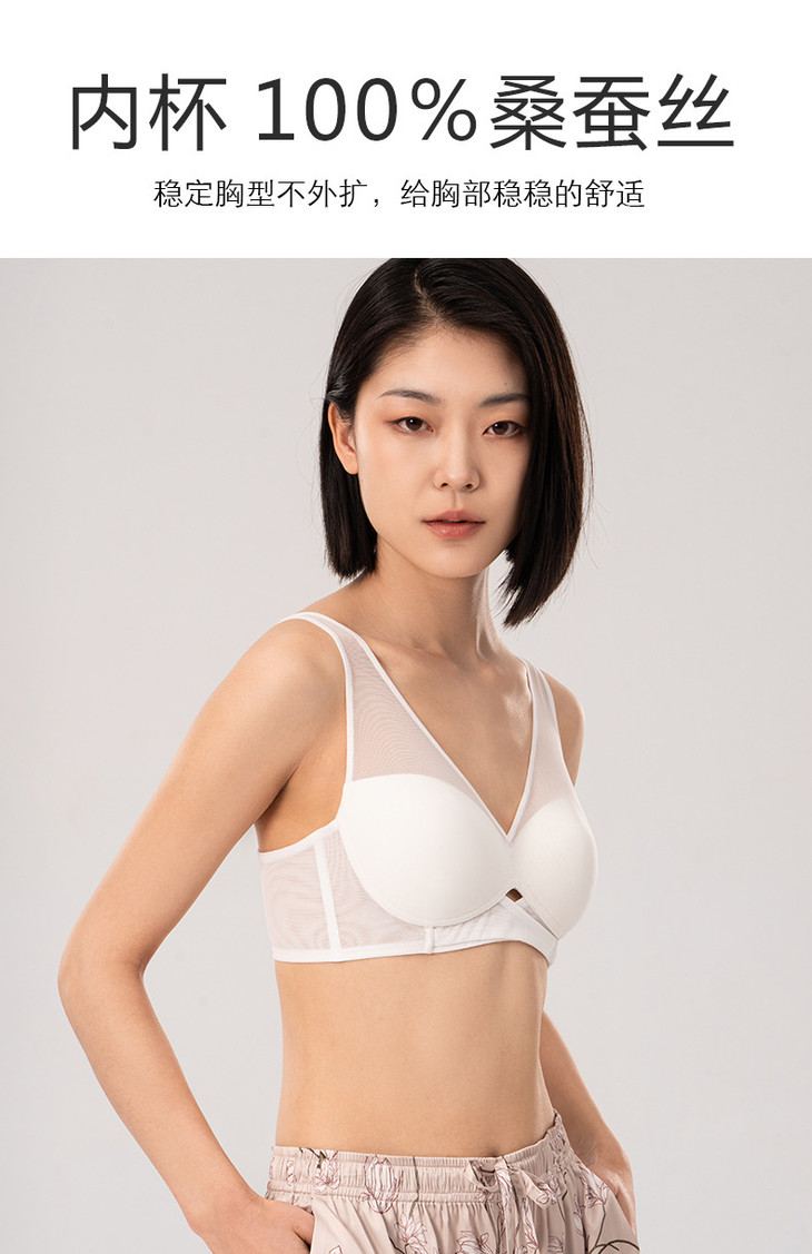 TG02S223春夏真丝光面聚拢文胸 性感网纱无钢圈桑蚕丝内衣美背小胸