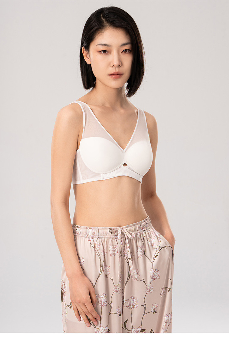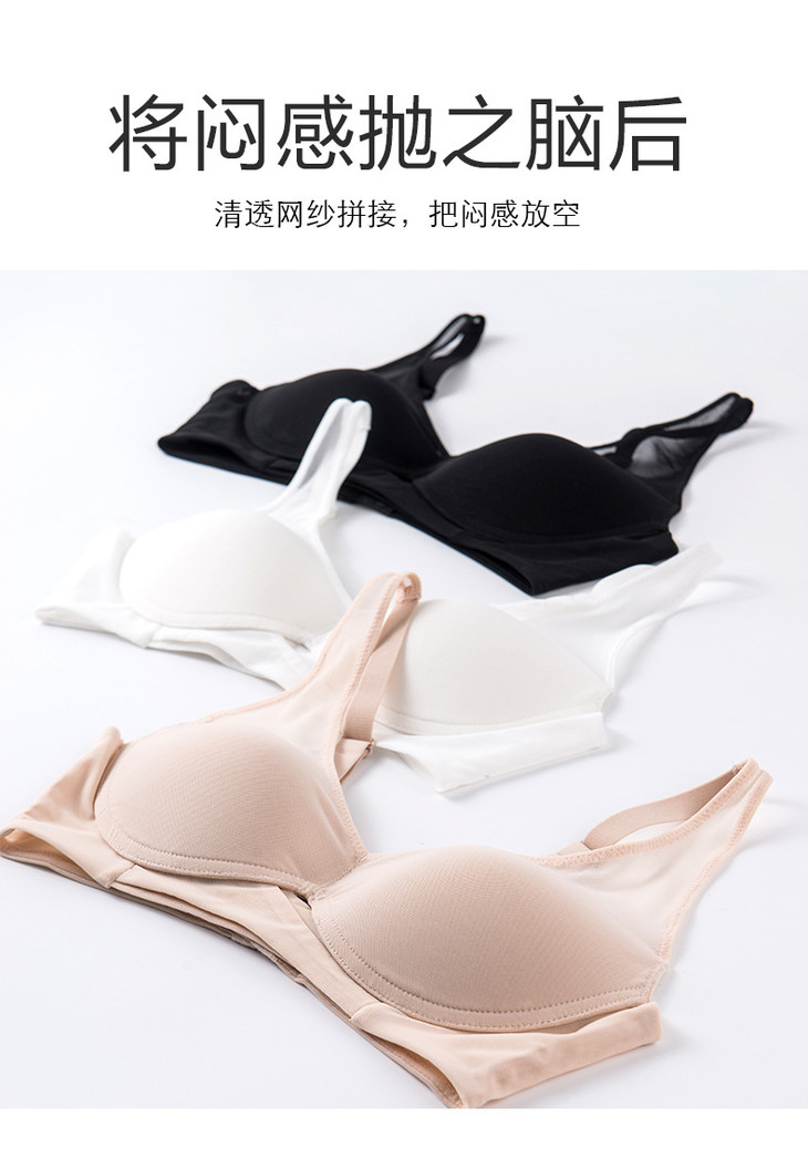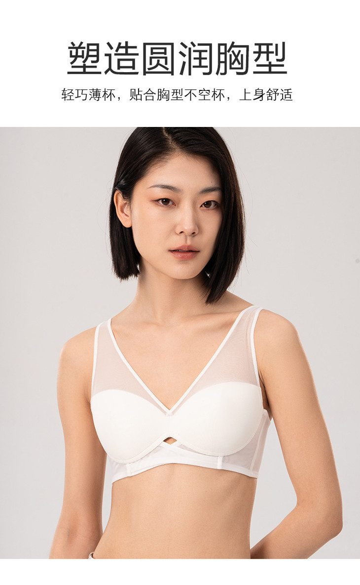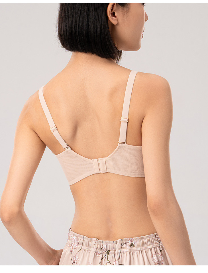 TG02S223春夏真丝光面聚拢文胸 性感网纱无钢圈桑蚕丝内衣美背小胸