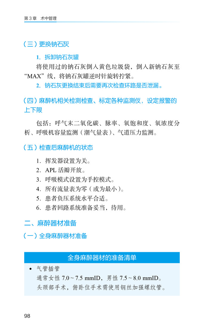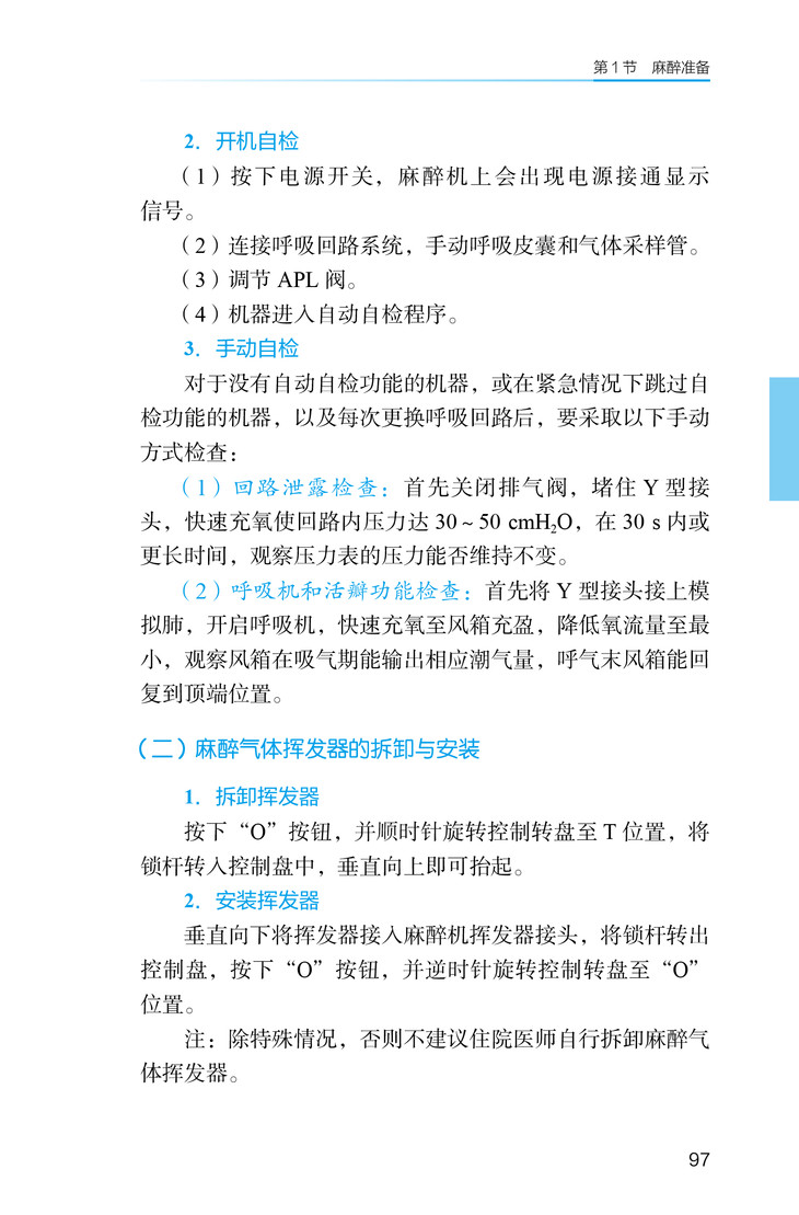 《麻醉科住院医师手册》再版的宗旨是守正、创新。一方面,我们根据既往读者给予的建议,对容易产生误解的基本概念进行修正,这是“守正”的根本。另一方面,第2版增加了几个亮点,使第1版的读者也会耳目一新,是为“创新”。首先,在第5章麻醉操作中,我们加入了科室原创拍摄的操作标准视频,这是以国家住培结业考核规范为标准拍摄的,方便麻醉初学者更好地领会麻醉操作的关键点,也有助于住培结业操作考核的培训与自查。由于各家医院操作习惯有所不同,各位读者还需要遵循自己所在医院的操作习惯进行,但操作的基本原则是不变的。其次,在每一章后,我们都加入了自测题,方便读者在学习完一章内容后,通过“考试”的方式进行检验。这也是检验学习效果最常用也是最有效的方法。再次,我们对第1版的内容做进一步丰富,增加了小儿麻醉和老年人麻醉管理要点以及麻醉应急处理相关内容,对常用麻醉药物进行了更新。