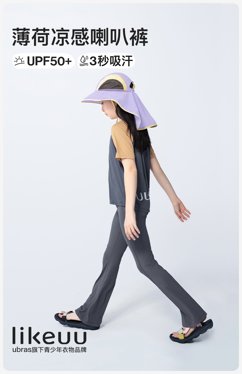 ubras旗下likeuu儿童喇叭裤防晒女童瑜伽鲨鱼裤凉感休闲防紫外线 ZY