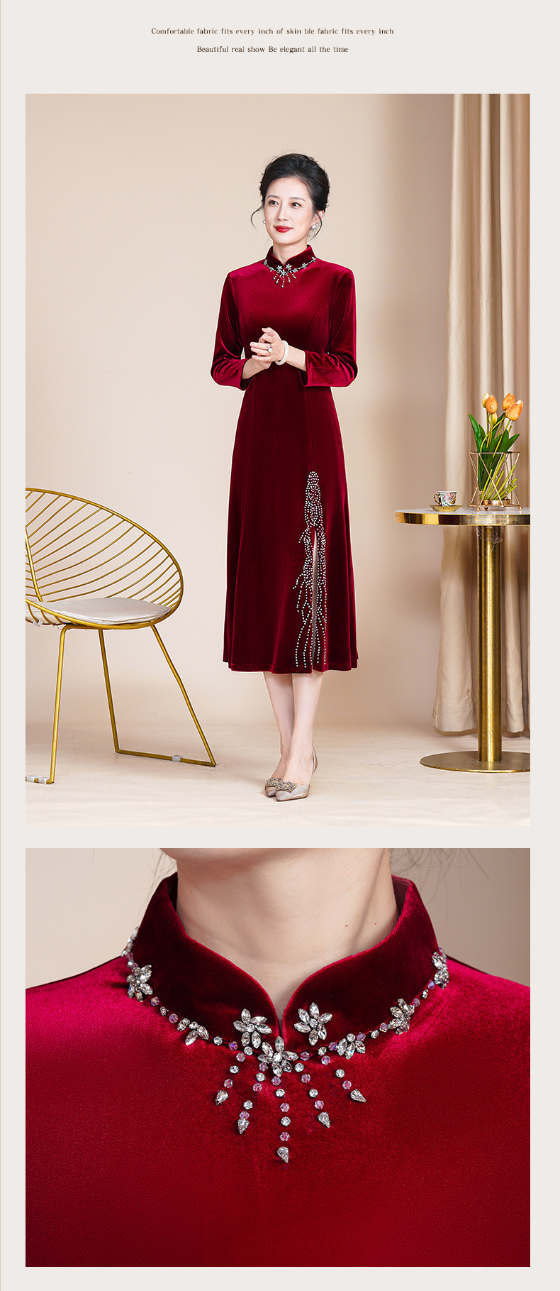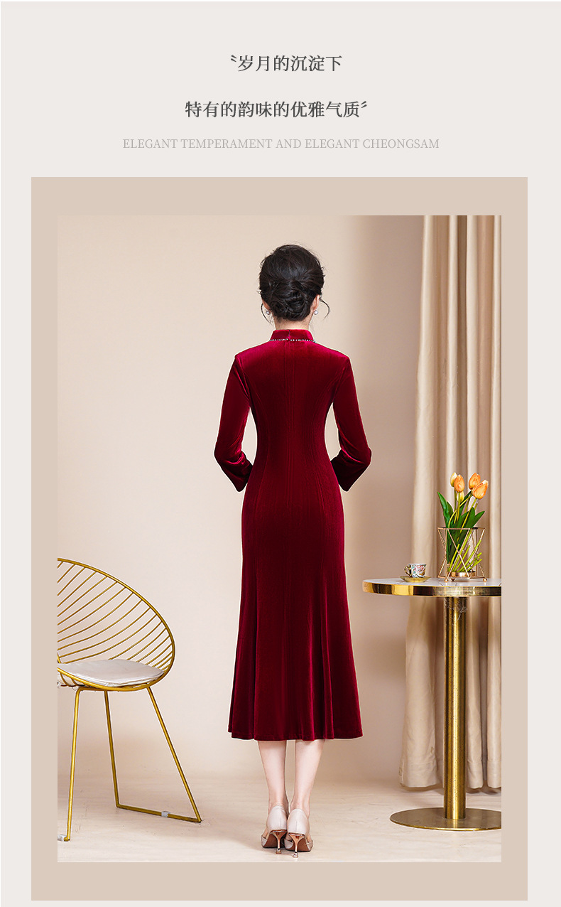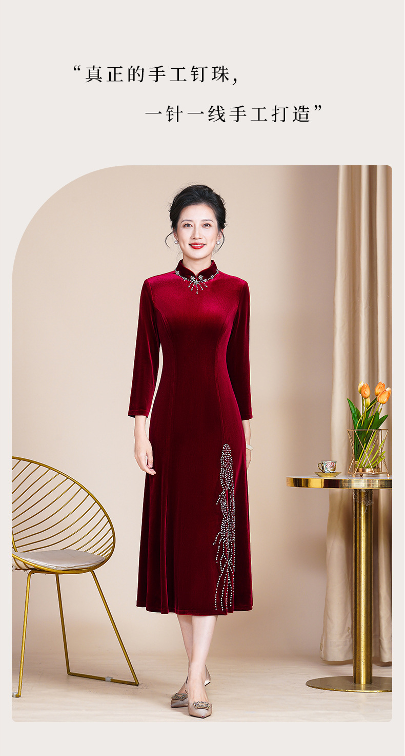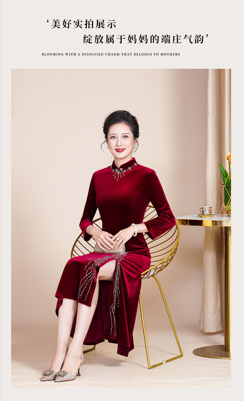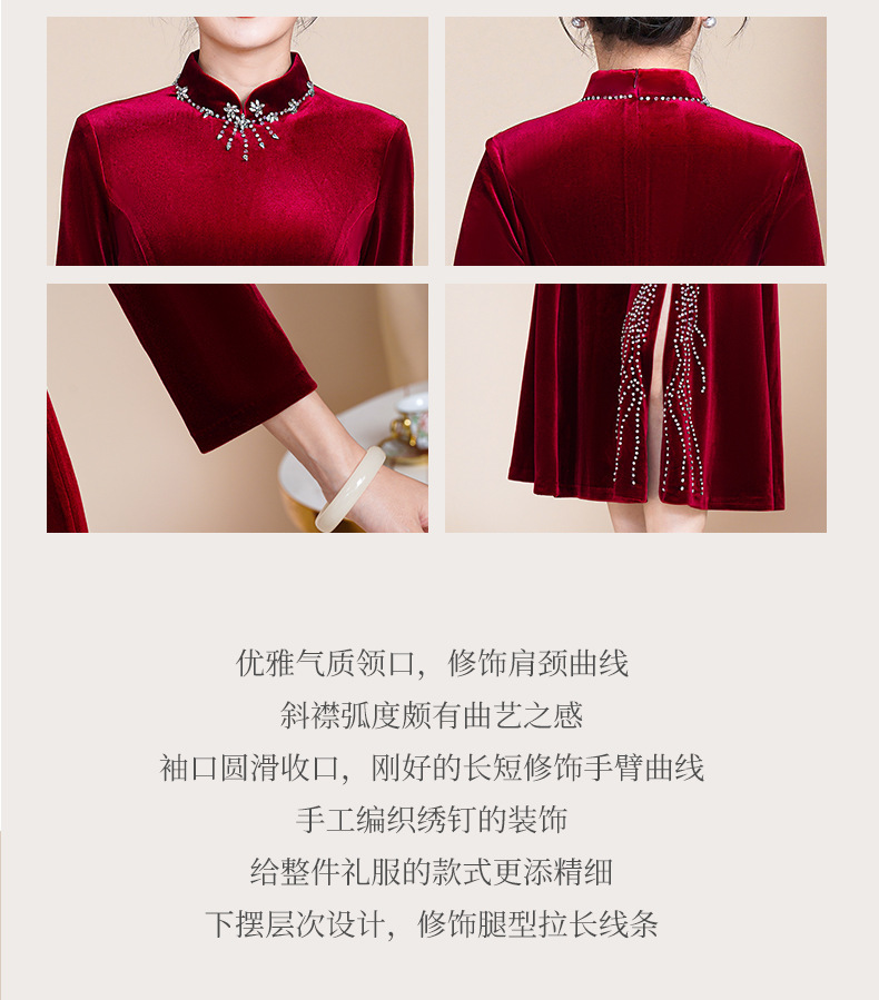 DNO-4G3501-1电商平台爆款丝绒旗袍修身年轻宴会大码连衣裙
