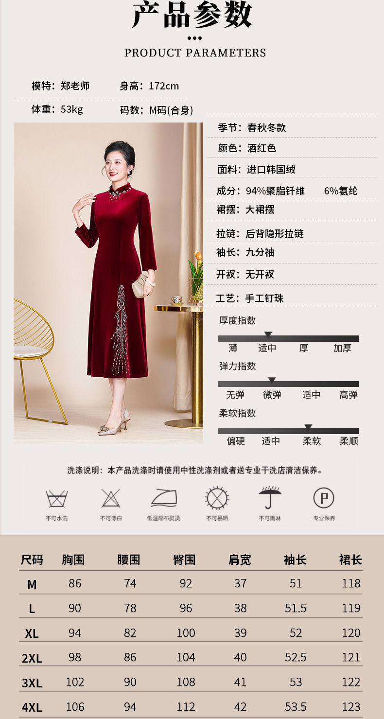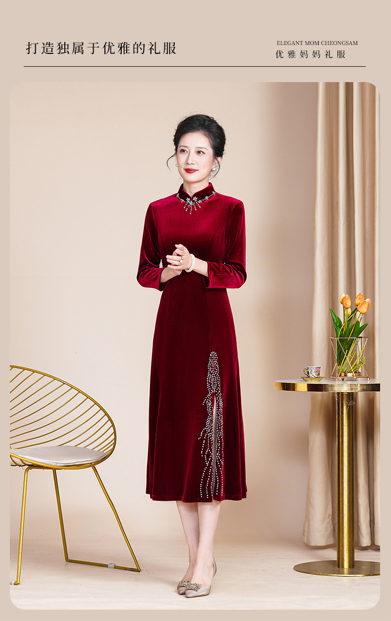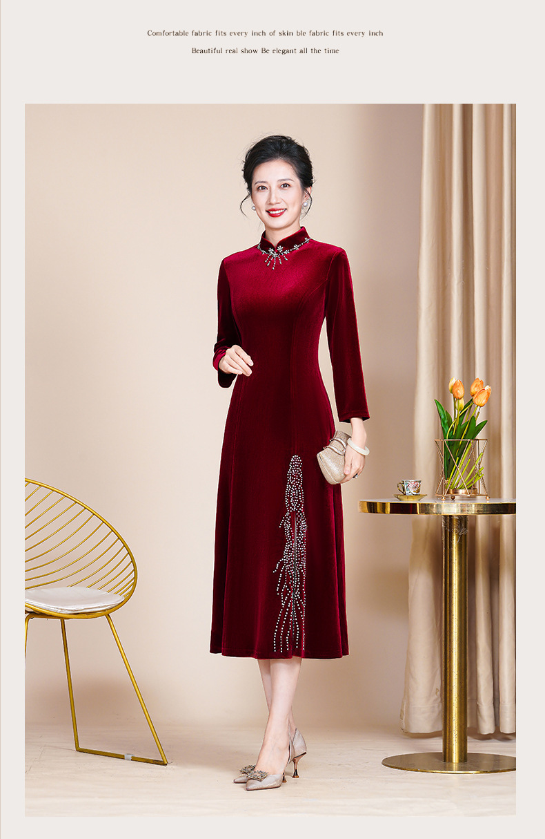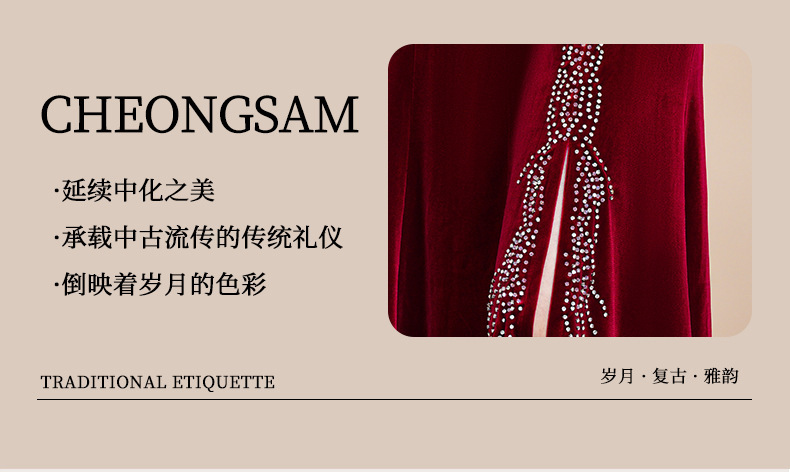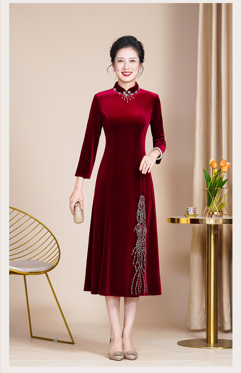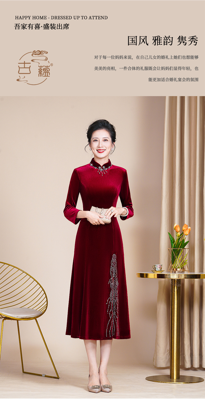 DNO-4G3501-1电商平台爆款丝绒旗袍修身年轻宴会大码连衣裙