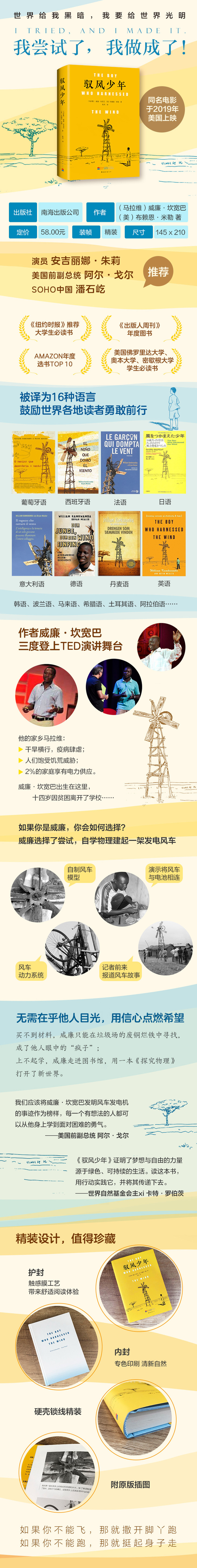 ★这是一个贫穷的年轻人不畏艰险、敢于创新的故事。通过艰苦不懈的努力,威廉终于把自己的想法变成了现实。每个有梦想的年轻人都应该读读《驭风少年》。——TED奖得主、建筑师 卡梅隆·辛克莱尔