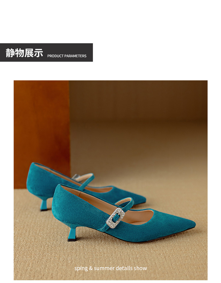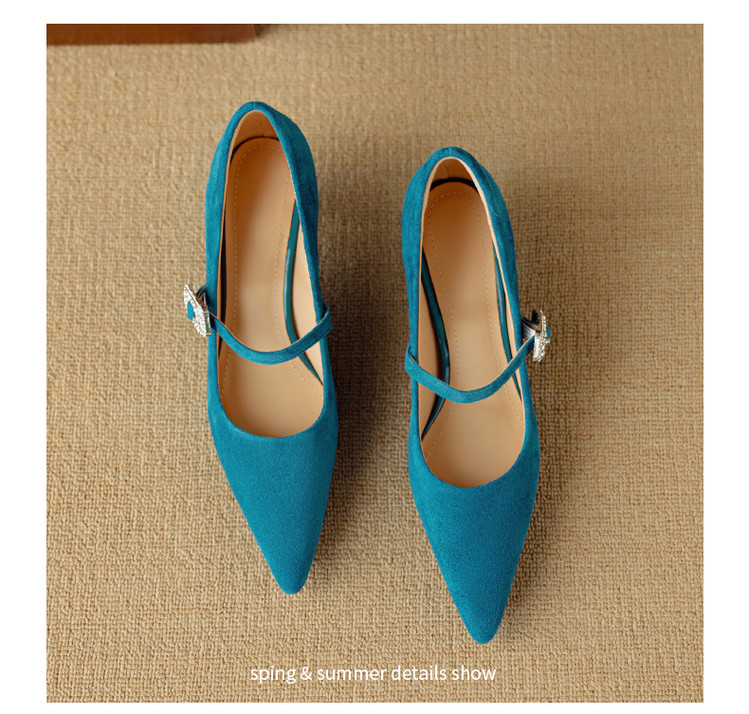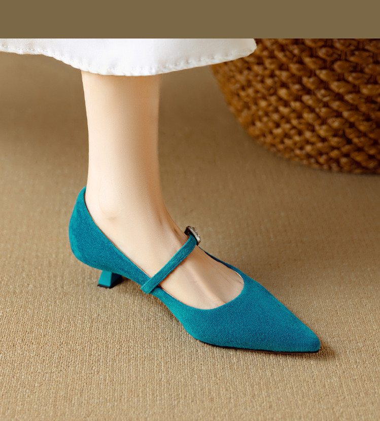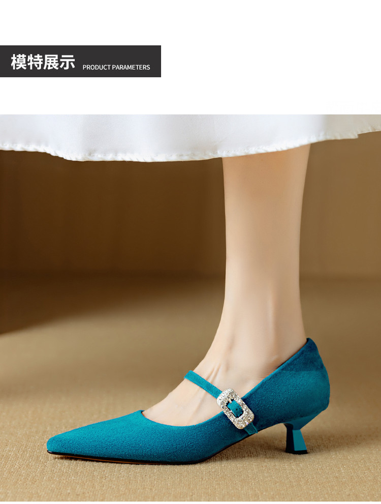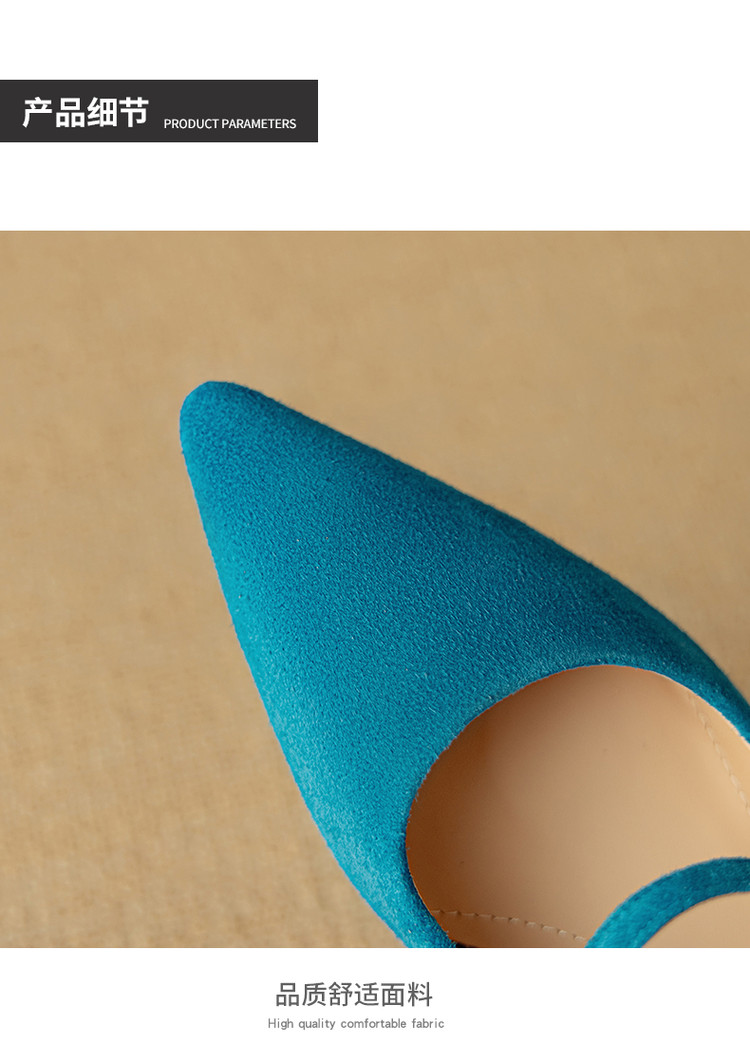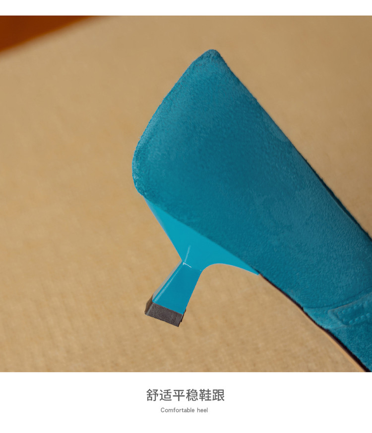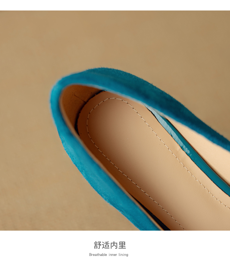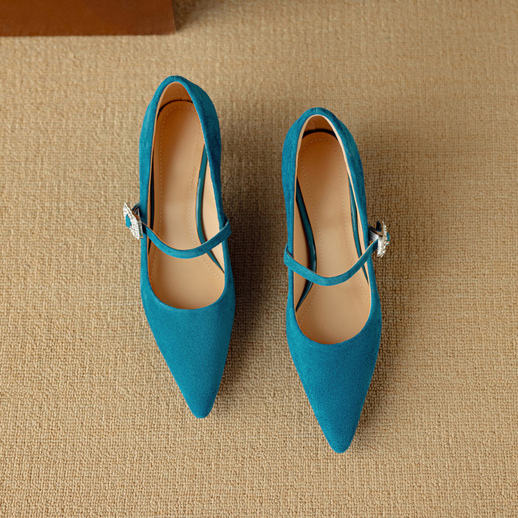 【预售5天】羊反绒!蓝色显白小高跟鞋新款尖头浅口法式一字带中跟单鞋女DB&M6539